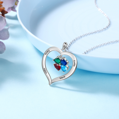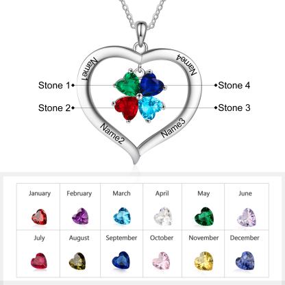 Collana Cuore 4 nomi personalizzato con ciondolo di cuore pietra di nascita per donna