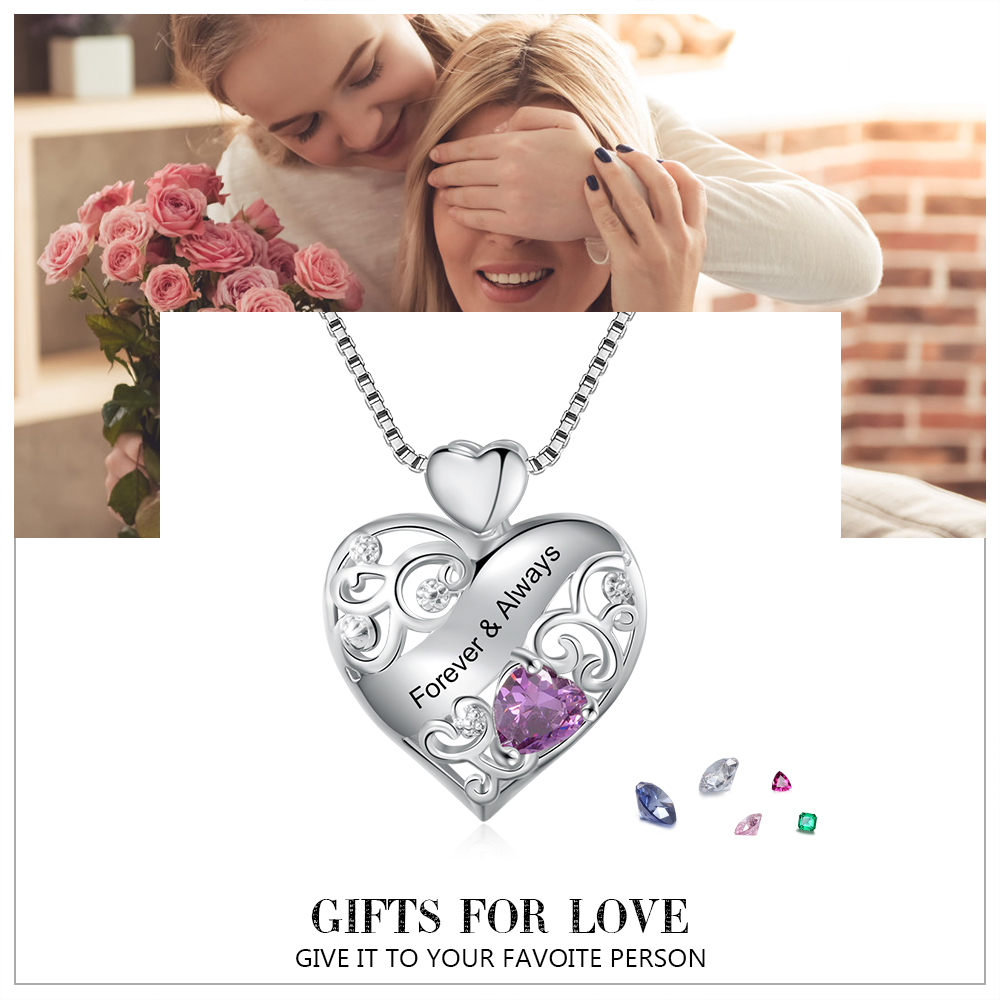 Collana cuore con 1 testo e 1 cuore pietra di nascita regalo per donna