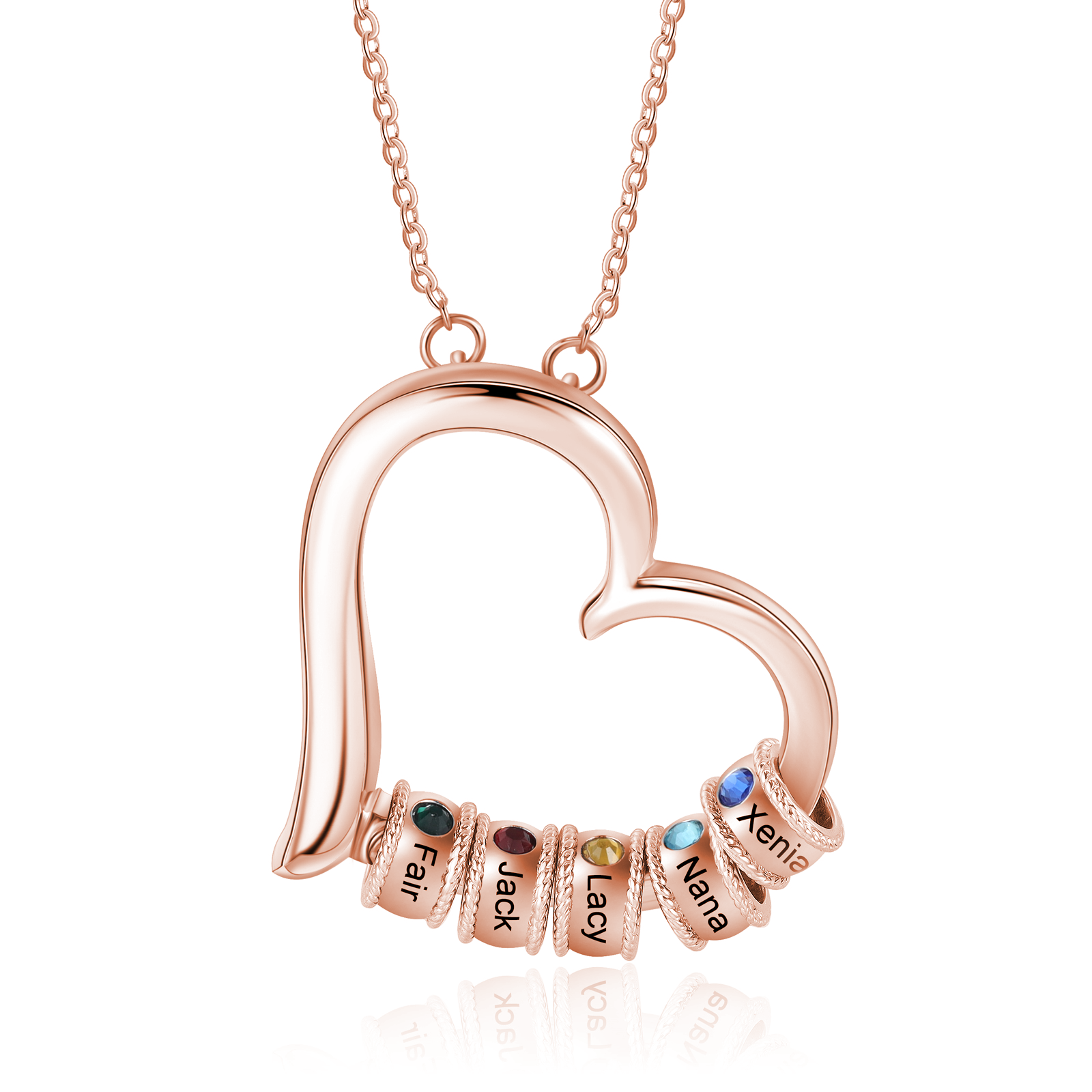 Collana cuore con ciondolo di 5 nomi e 5 pietre di nascita regalo per donna