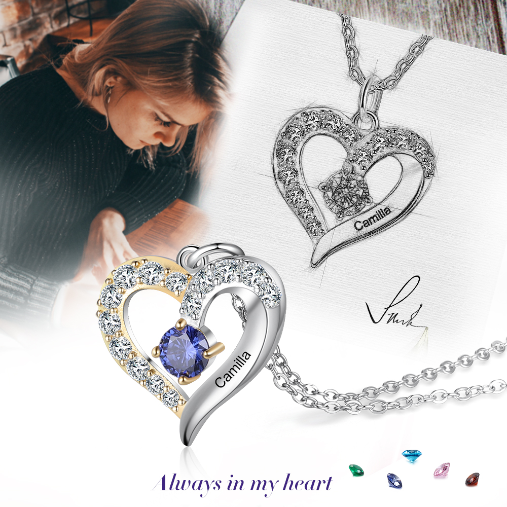 Collana Cuore d'argento 1 nome e 1 pietra di nascita personalizzati regalo per donna