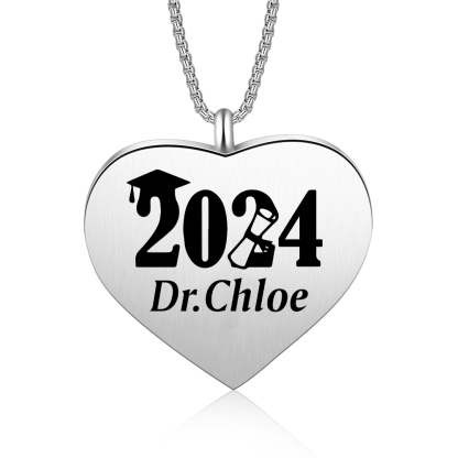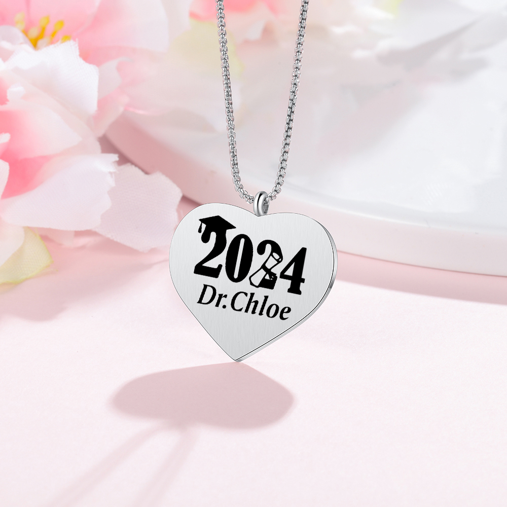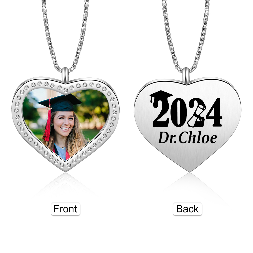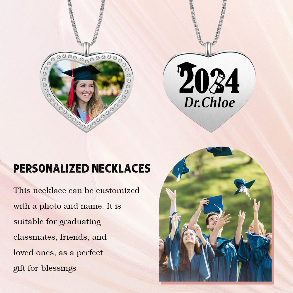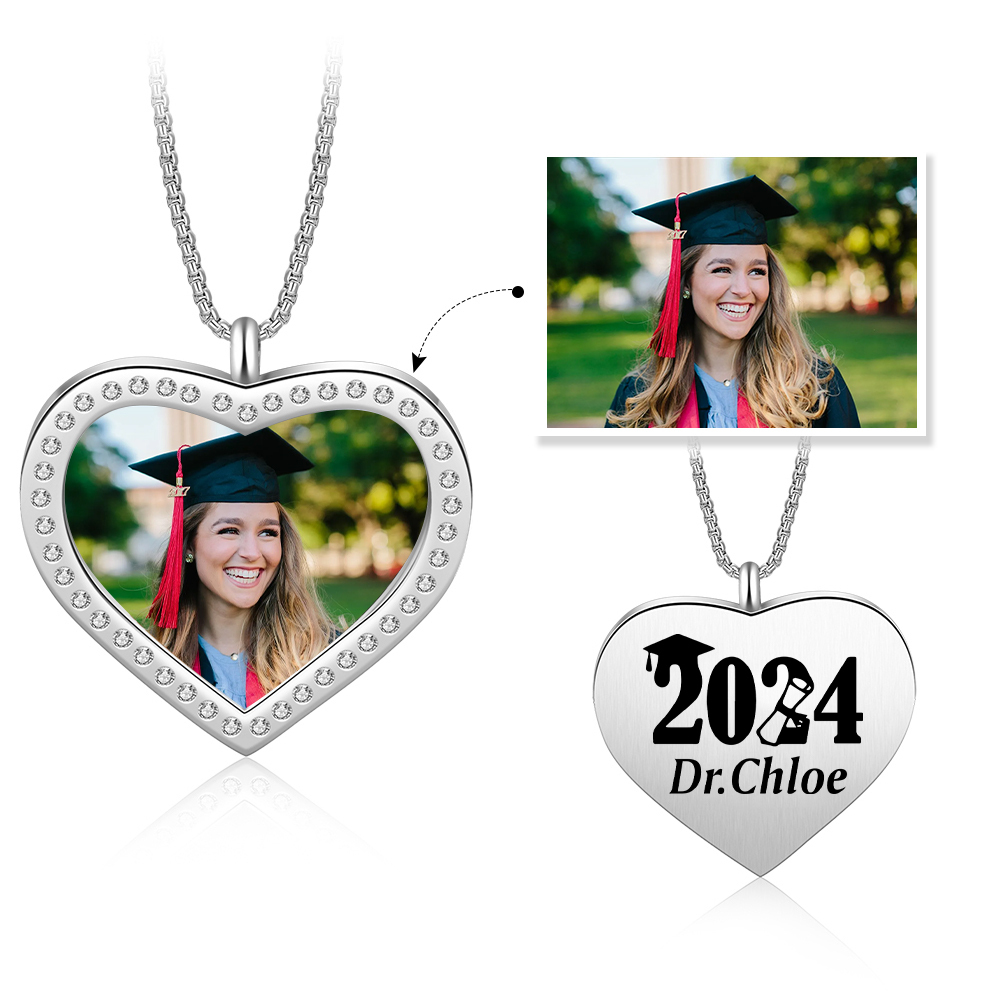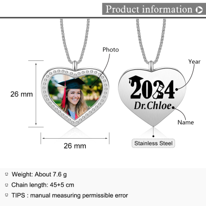 Collana cuore di laurea con 1 foto e 1 nome e 1 anno personalizzati per laurea