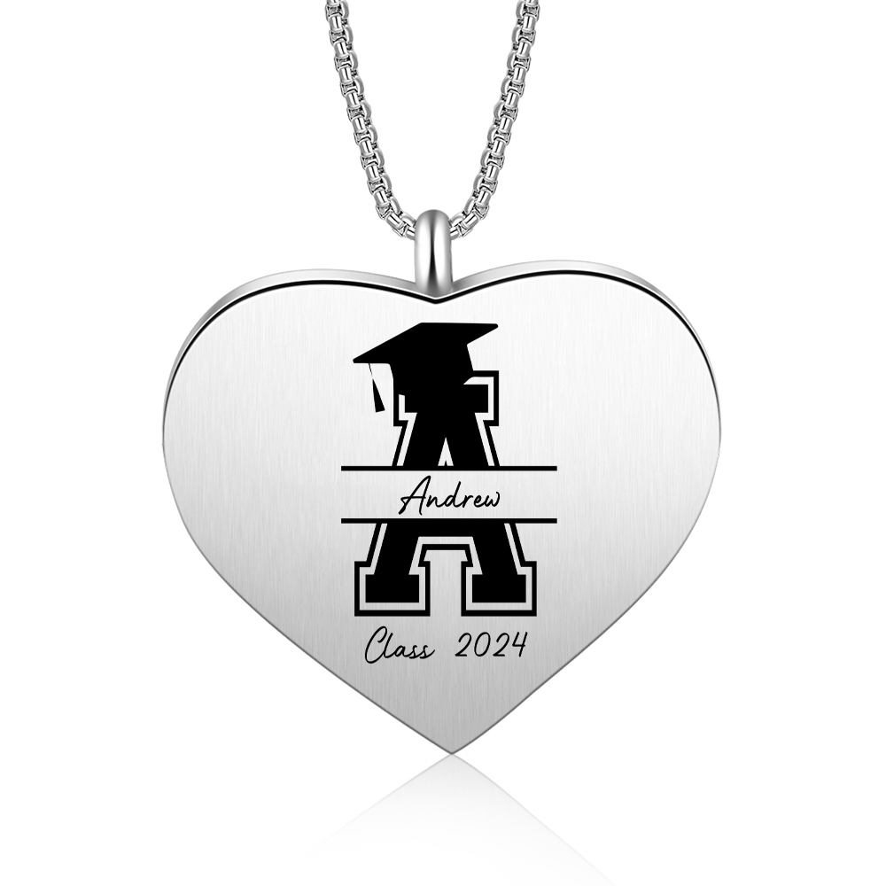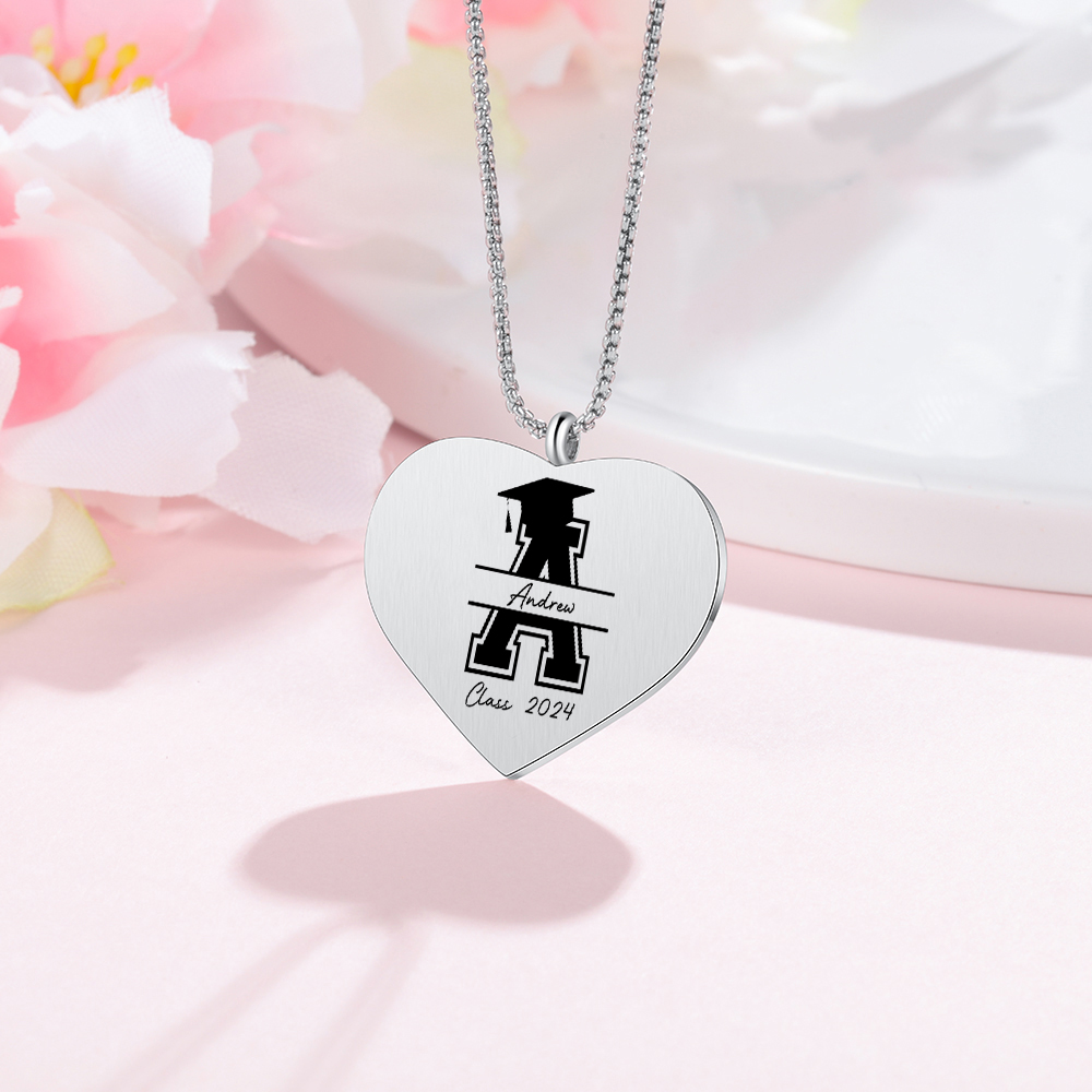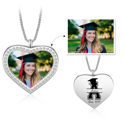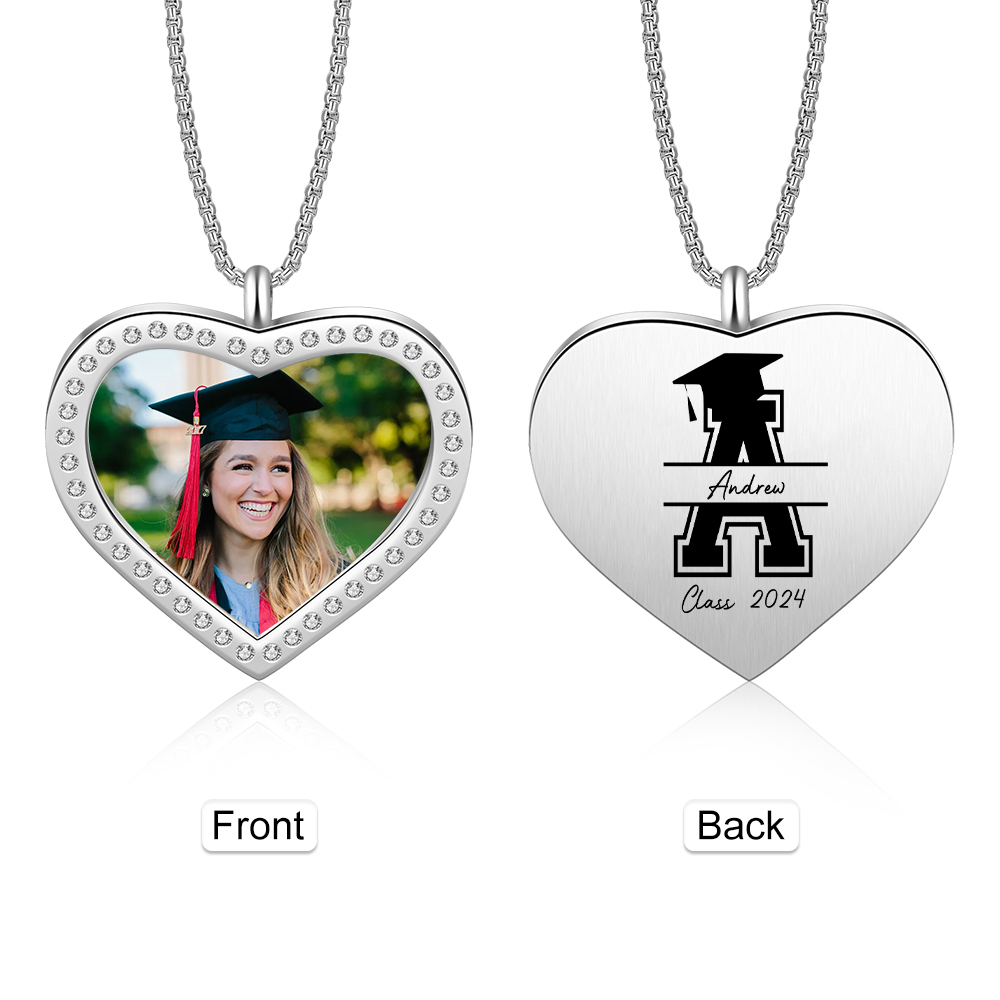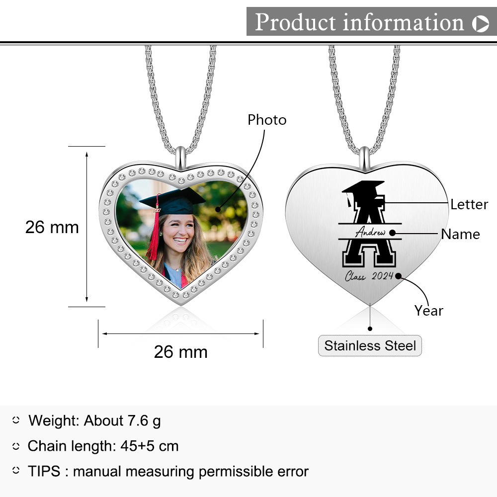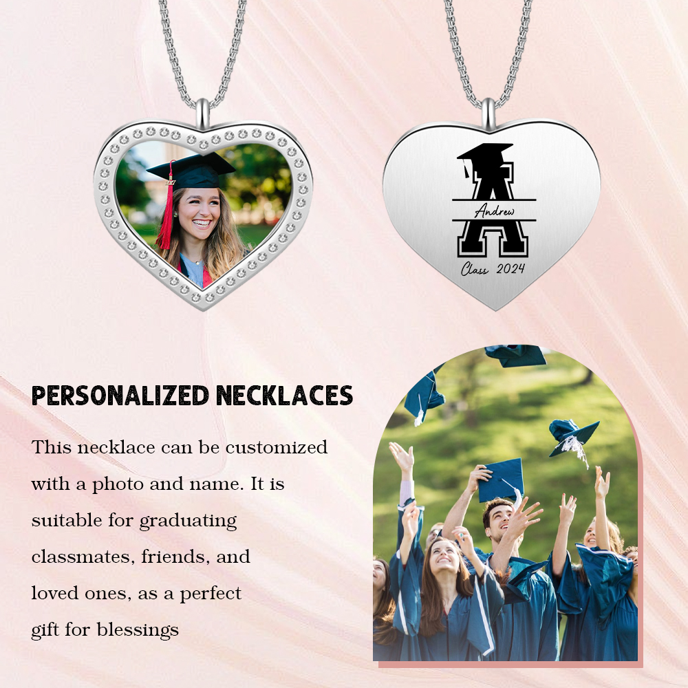 Collana cuore di laurea con 1 foto e 1 nome e 1 lettera e 1 anno personalizzati per laurea