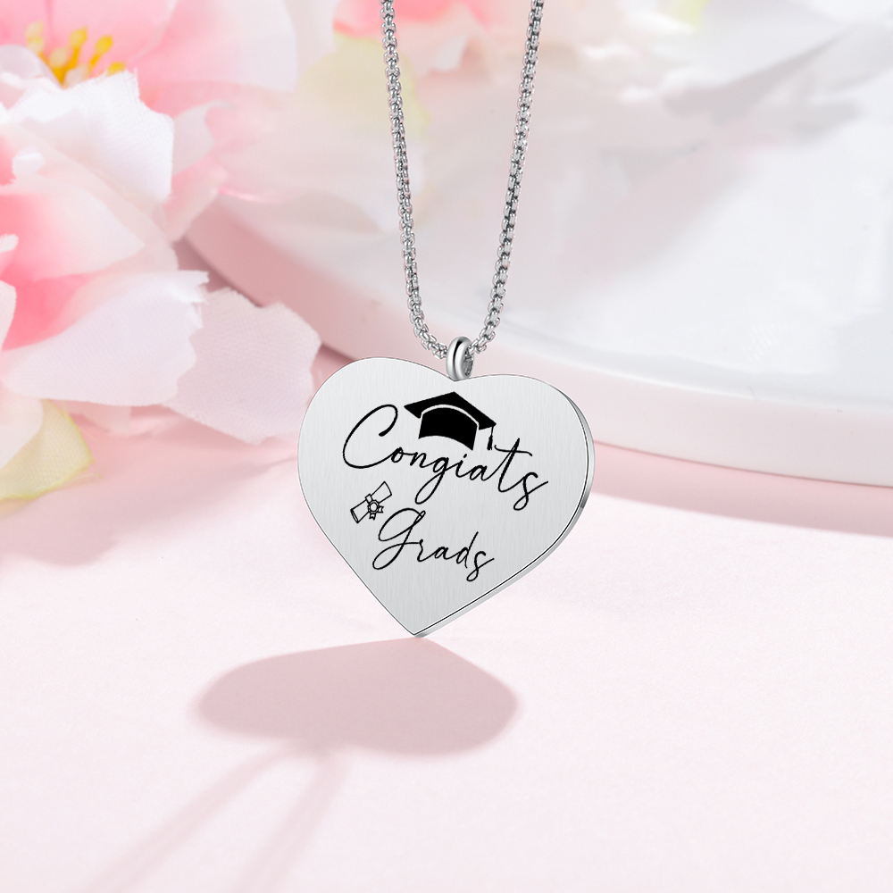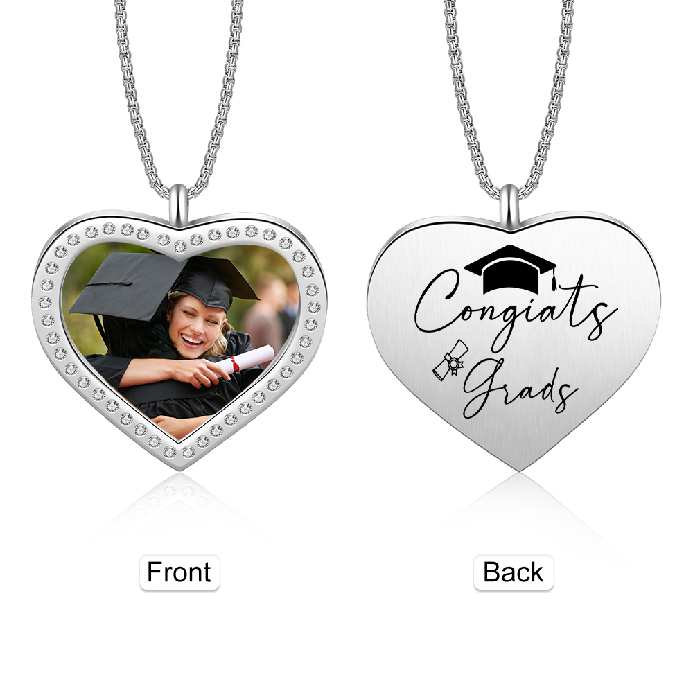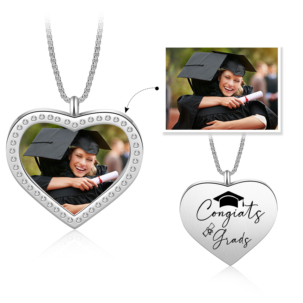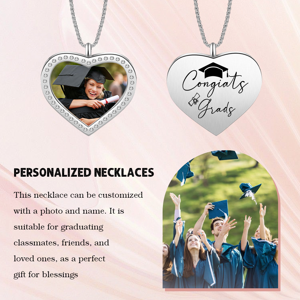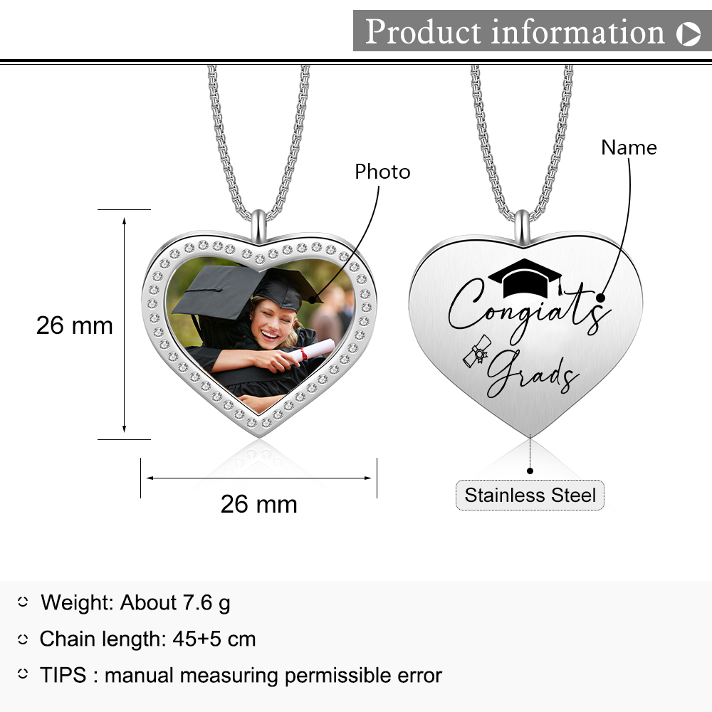 Collana cuore di laurea con 1 foto e 1 nome personalizzati per laurea
