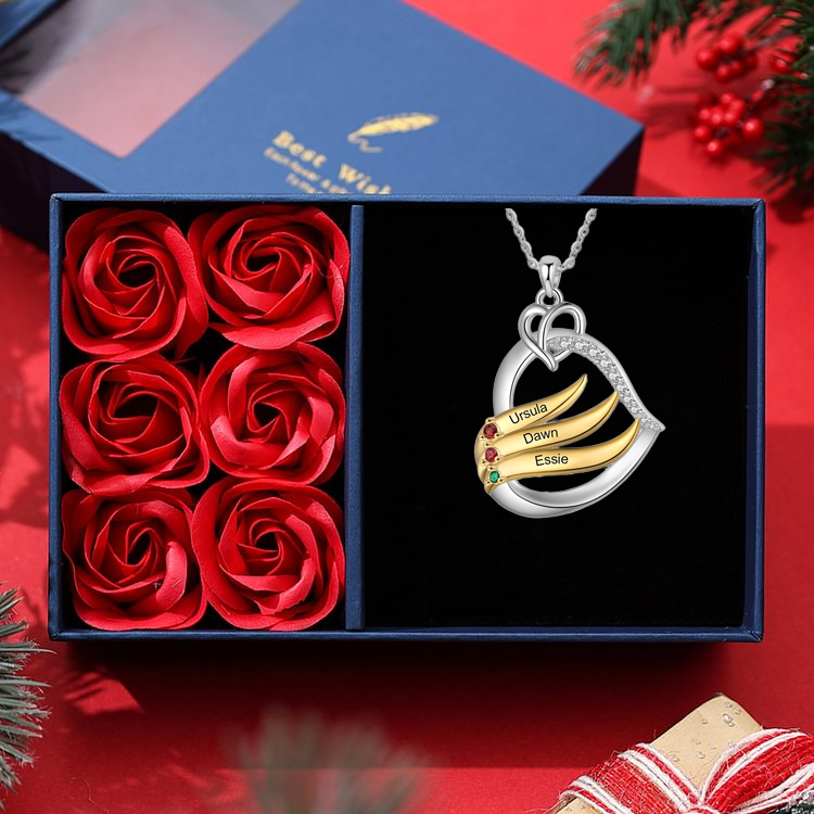 Collana cuore nel cuore 3 pietre di nascita e 3 nomi personalizzati regalo per donna
