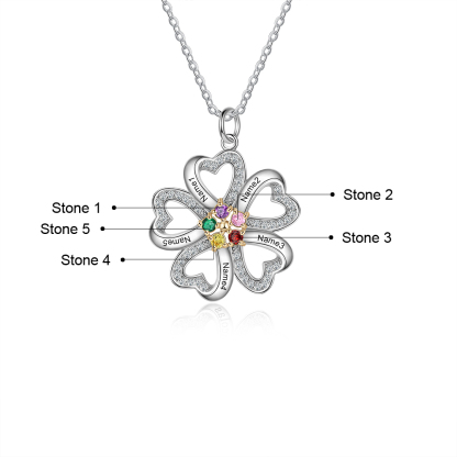 Collana d'argento Fiore di cuore 5 nomi e 5 pietre di nascita personalizzati regalo per donna