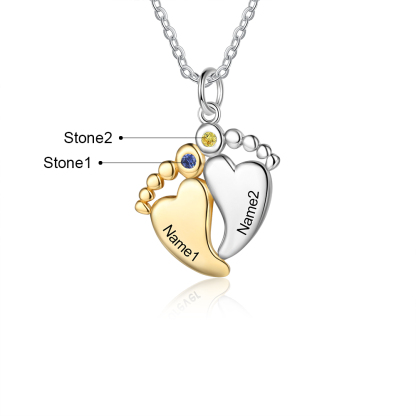 Collana d'argento Piede di bambino 2 nomi e 2 pietre di nascita personalizzati regalo per mamma