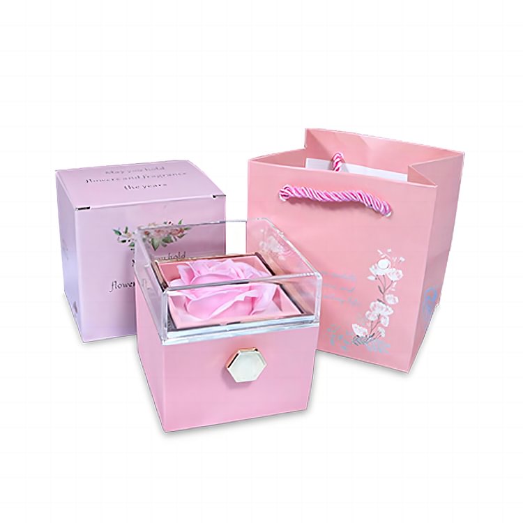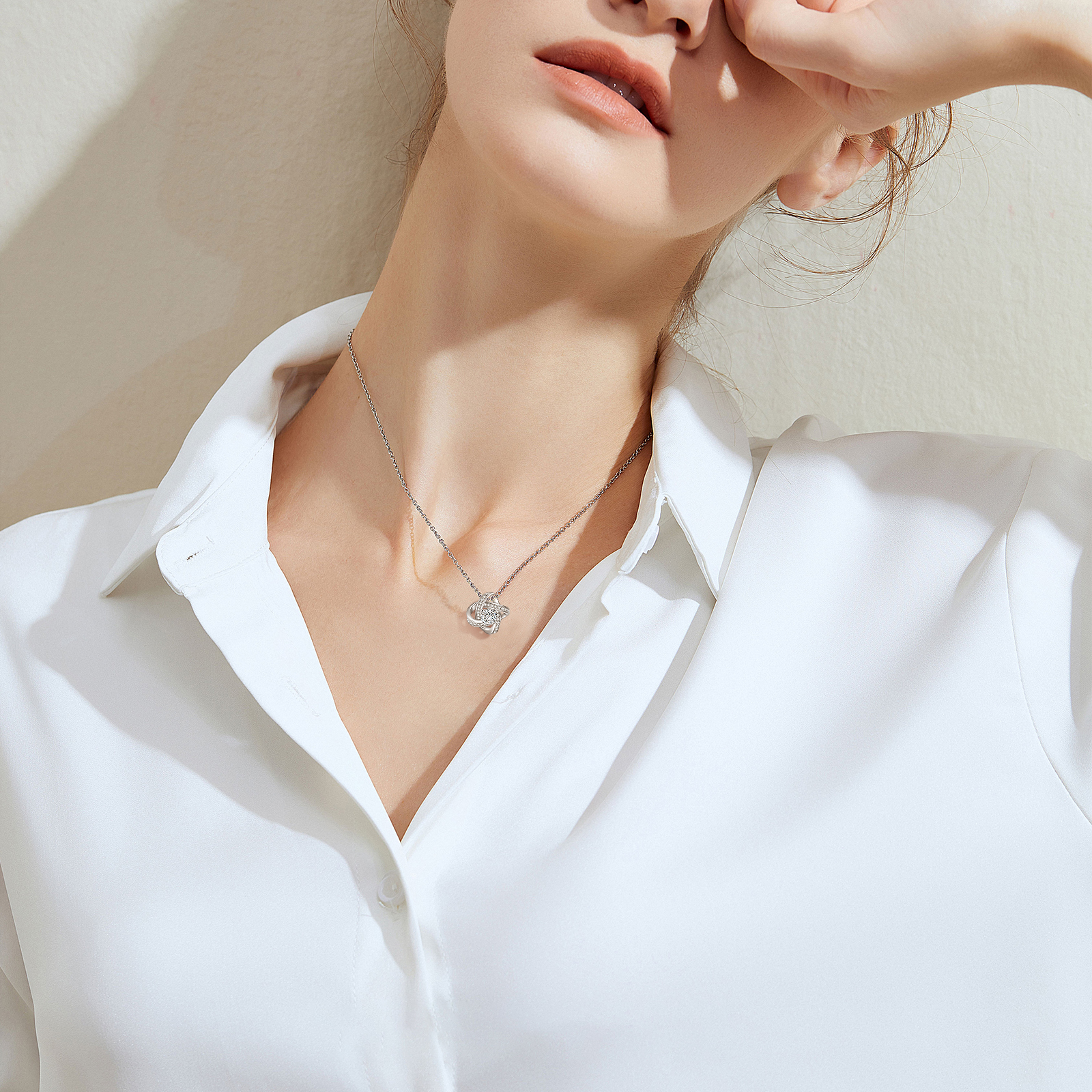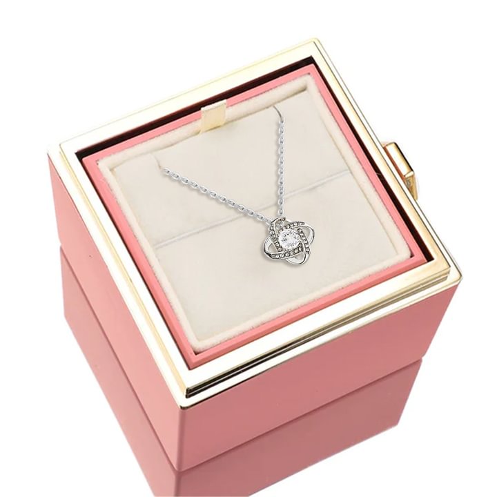 Collana d'argento S925 con nodo d'amore e scatola di rose girevole