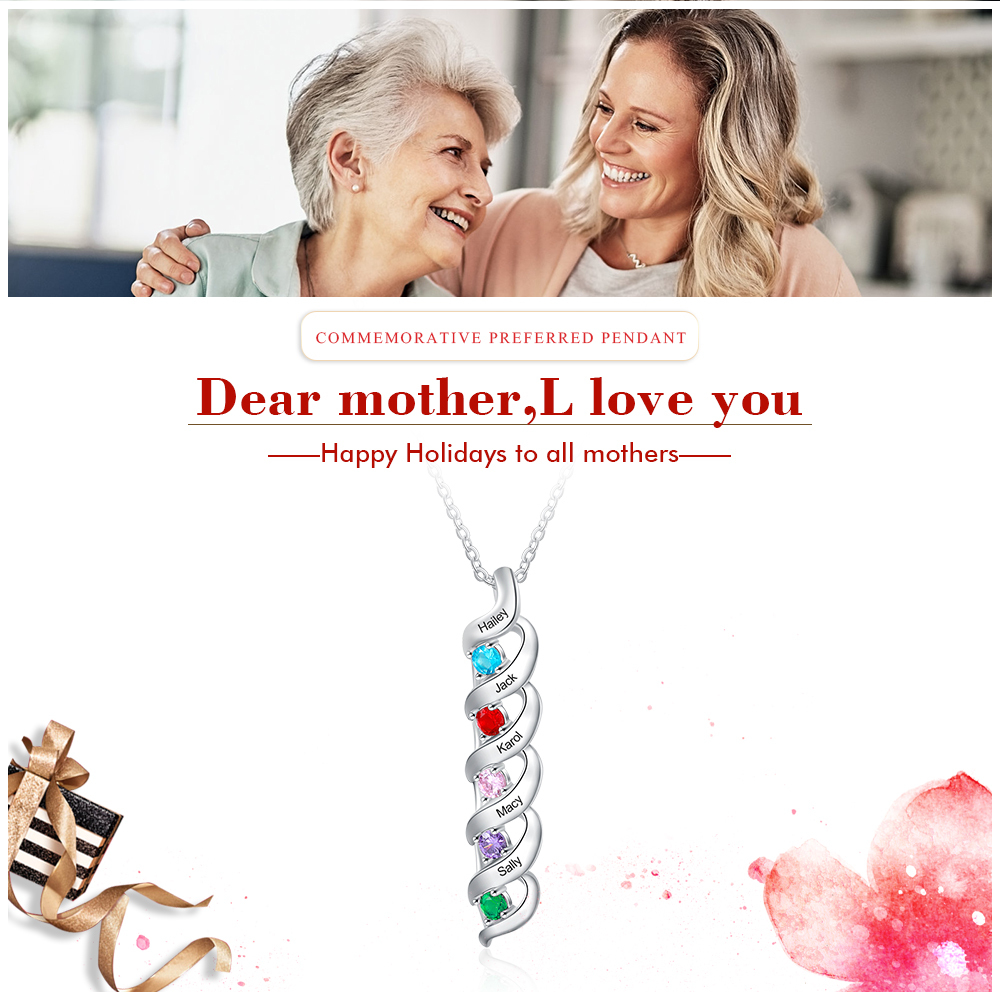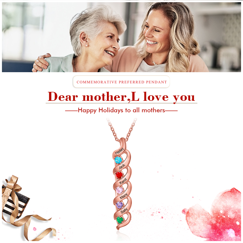 Collana DNA personalizzata 5 nomi e 5 pietre di nascita