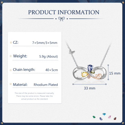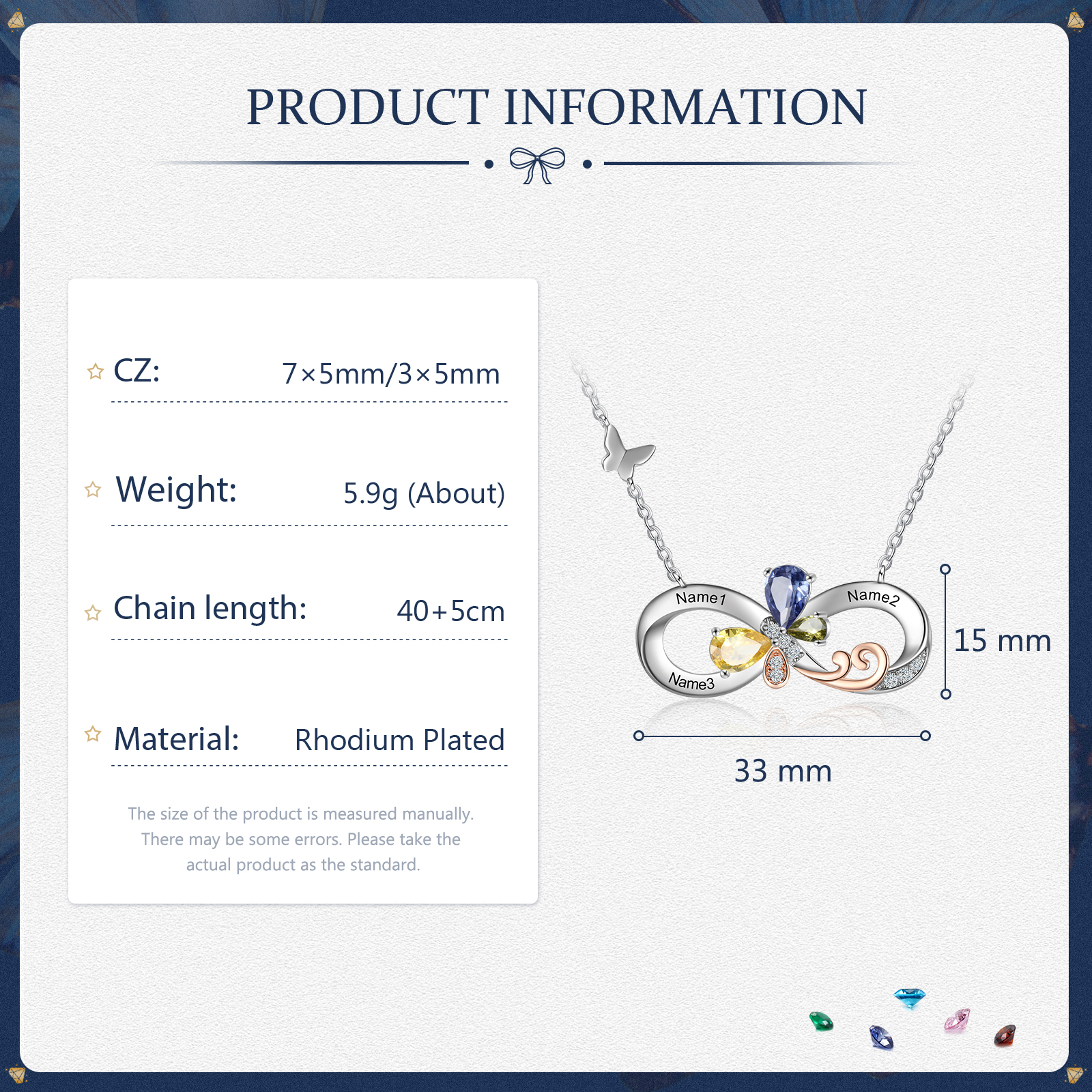 Collana farfalla e infinito anello infinita con 3 nomi e 3 pietre di nascita regalo per donna