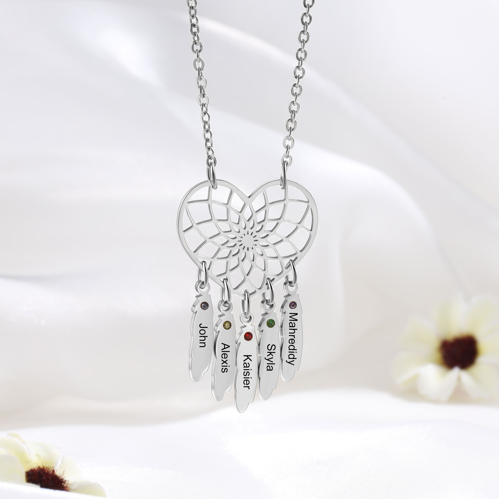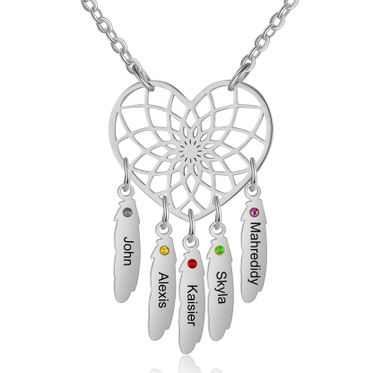 Collana Genealogica Dreamcatcher 5 Nomi personalizzato con 5 Pietre di nascita