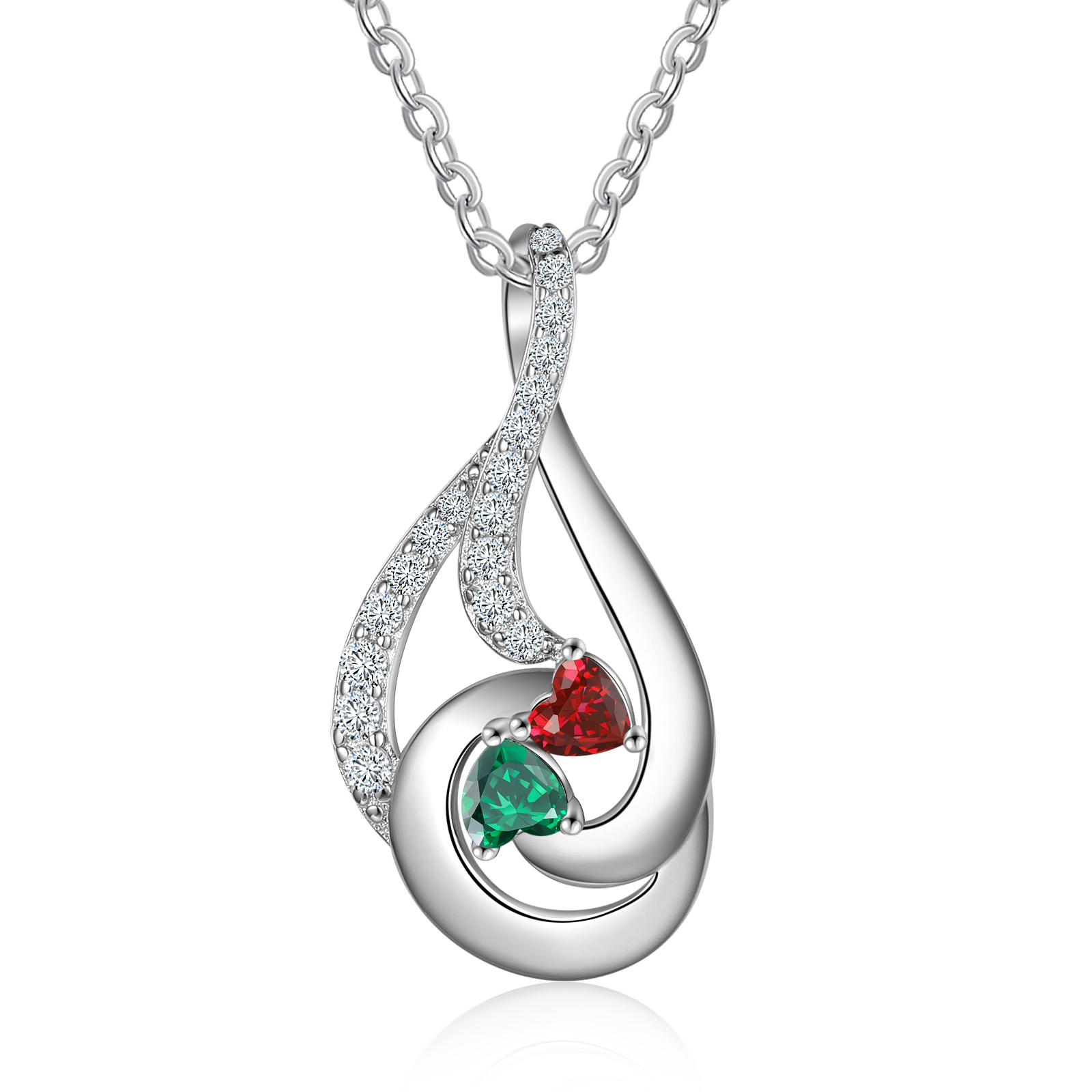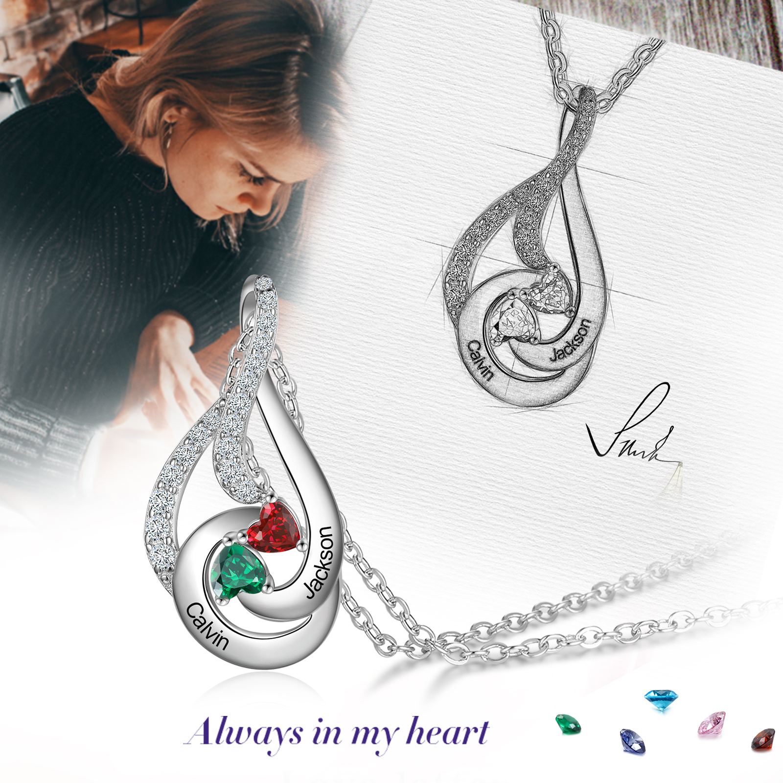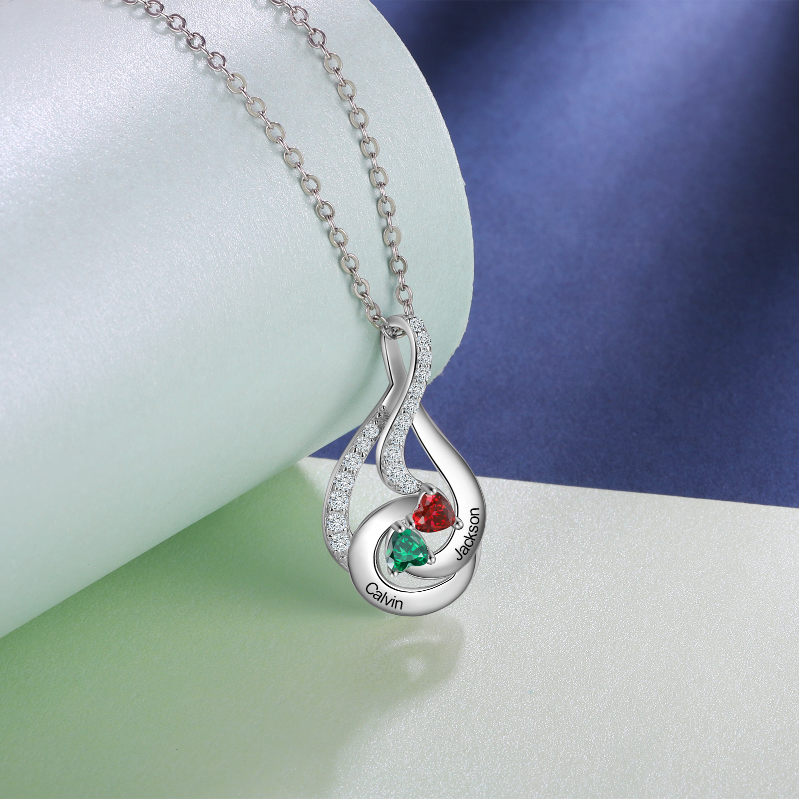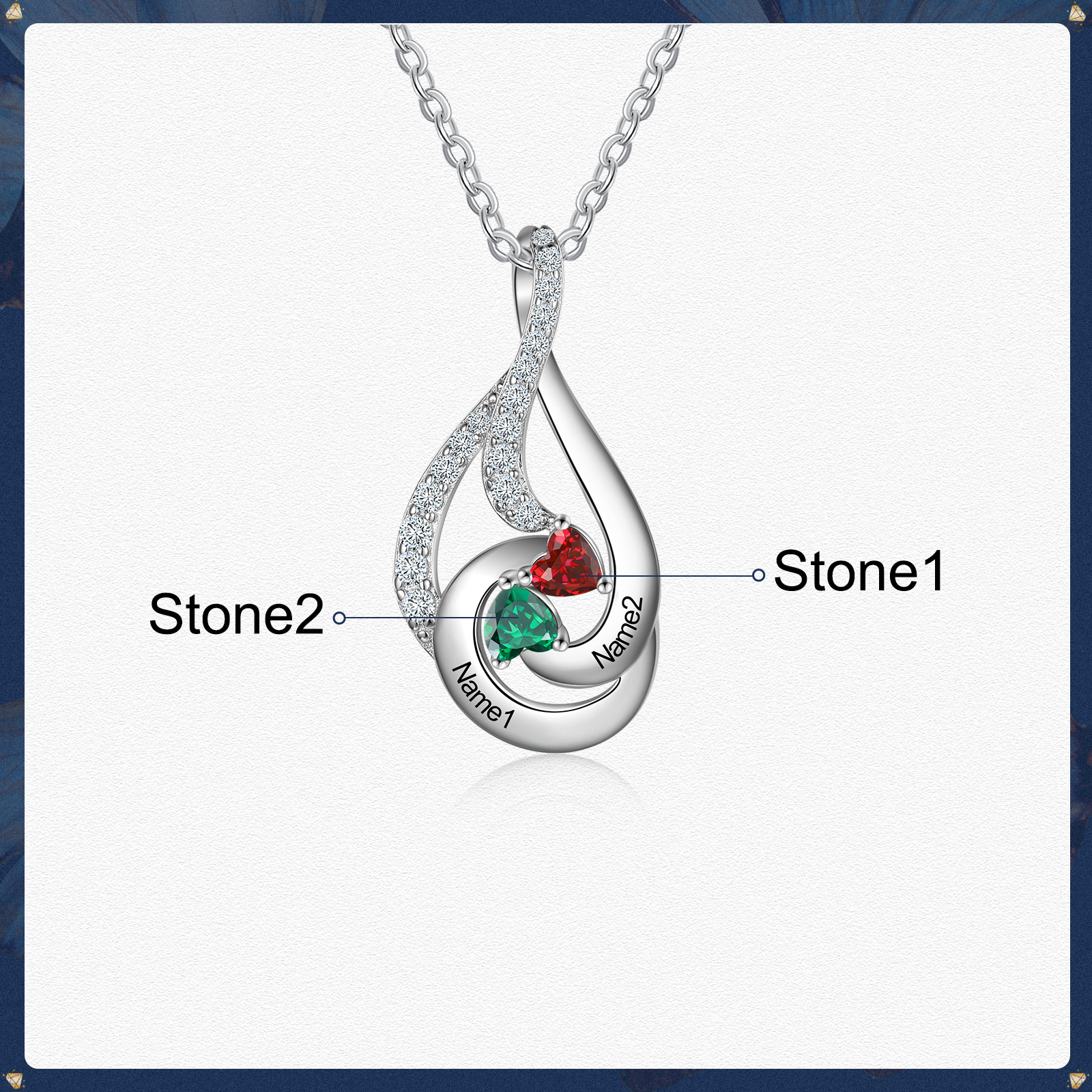Collana goccia d'acqua con 2 pietre di nascita e 2 nomi regalo per donna