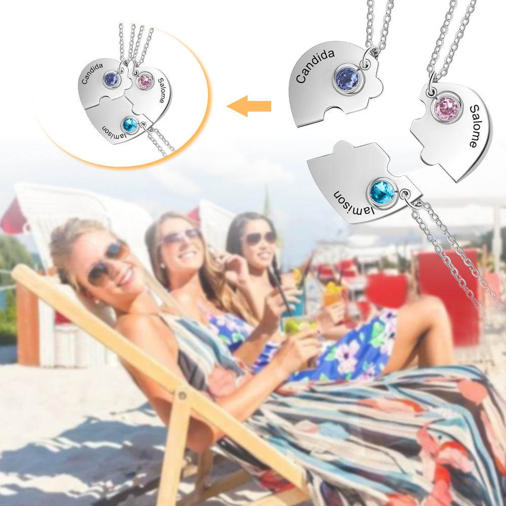 Collana familiare a cuore personalizzata con puzzle 3 pietre di nascita e 3 nomi