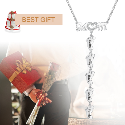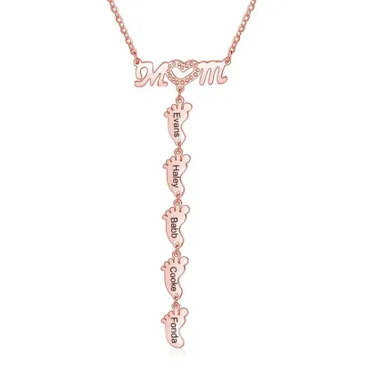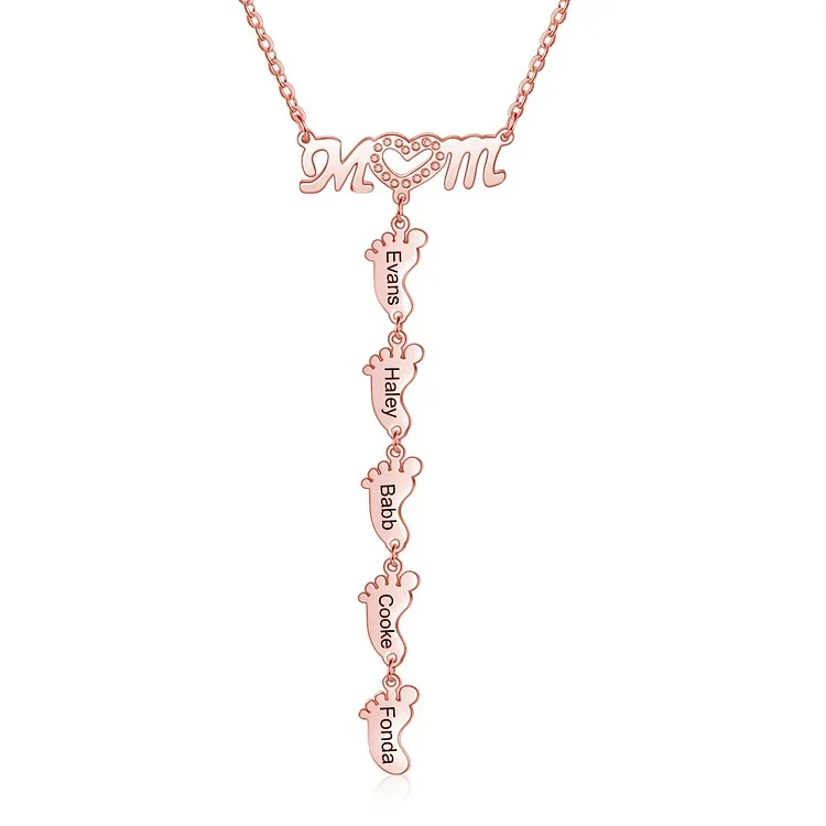Collana mamma con cinque ciondoli di piedi 5 nomi personalizzabili
