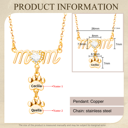 Collana mamma con un ciondolo di zampa 2 nomi personalizzabili regalo per mamma