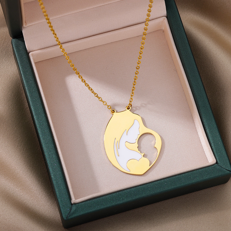 Collana dorata donna con bambino bambina regalo per diventare una mamma nascita