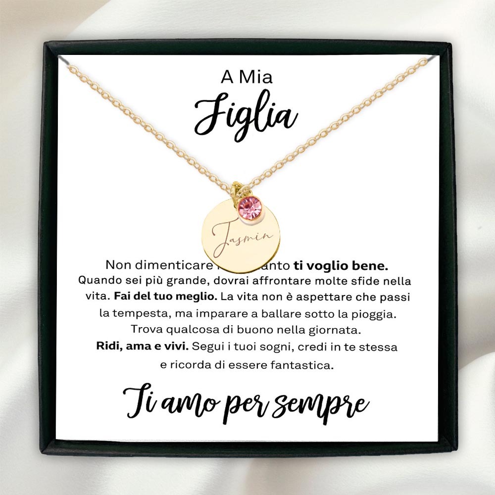 A Mia Figlia-Collana moneta amuleto richezza personalizzabile 1 nome e gemma