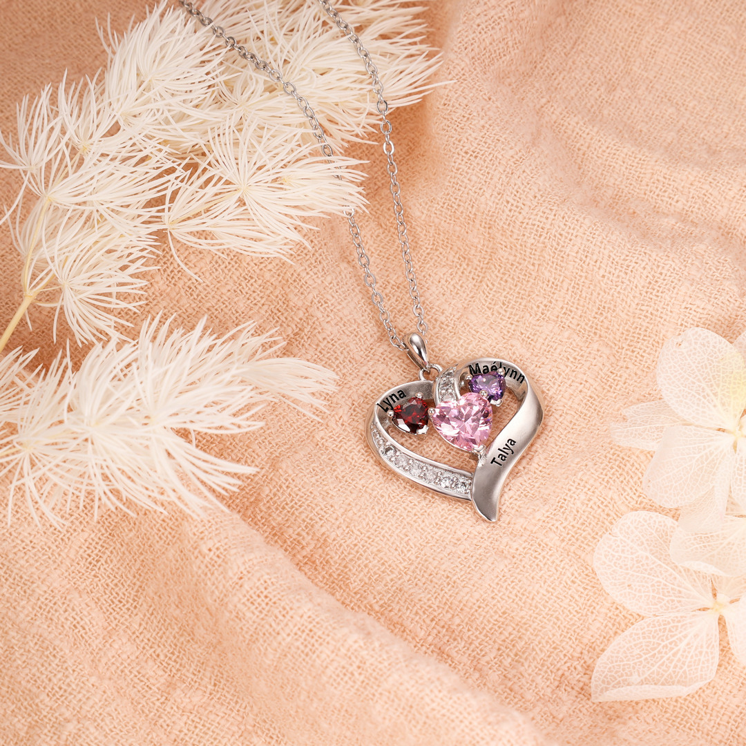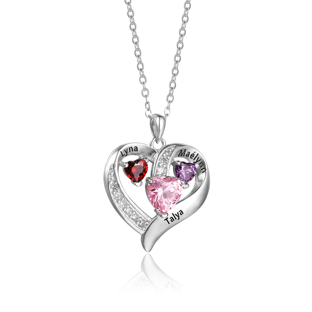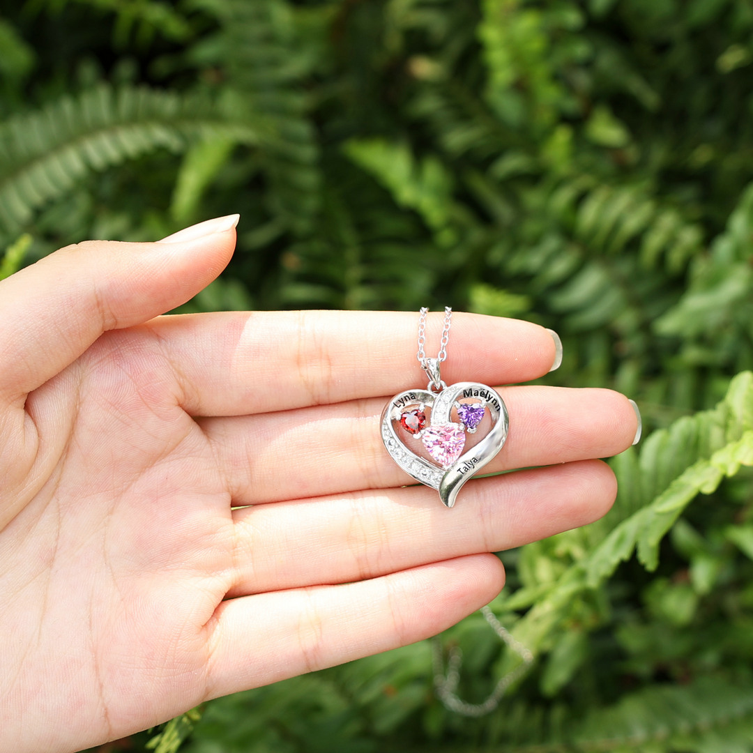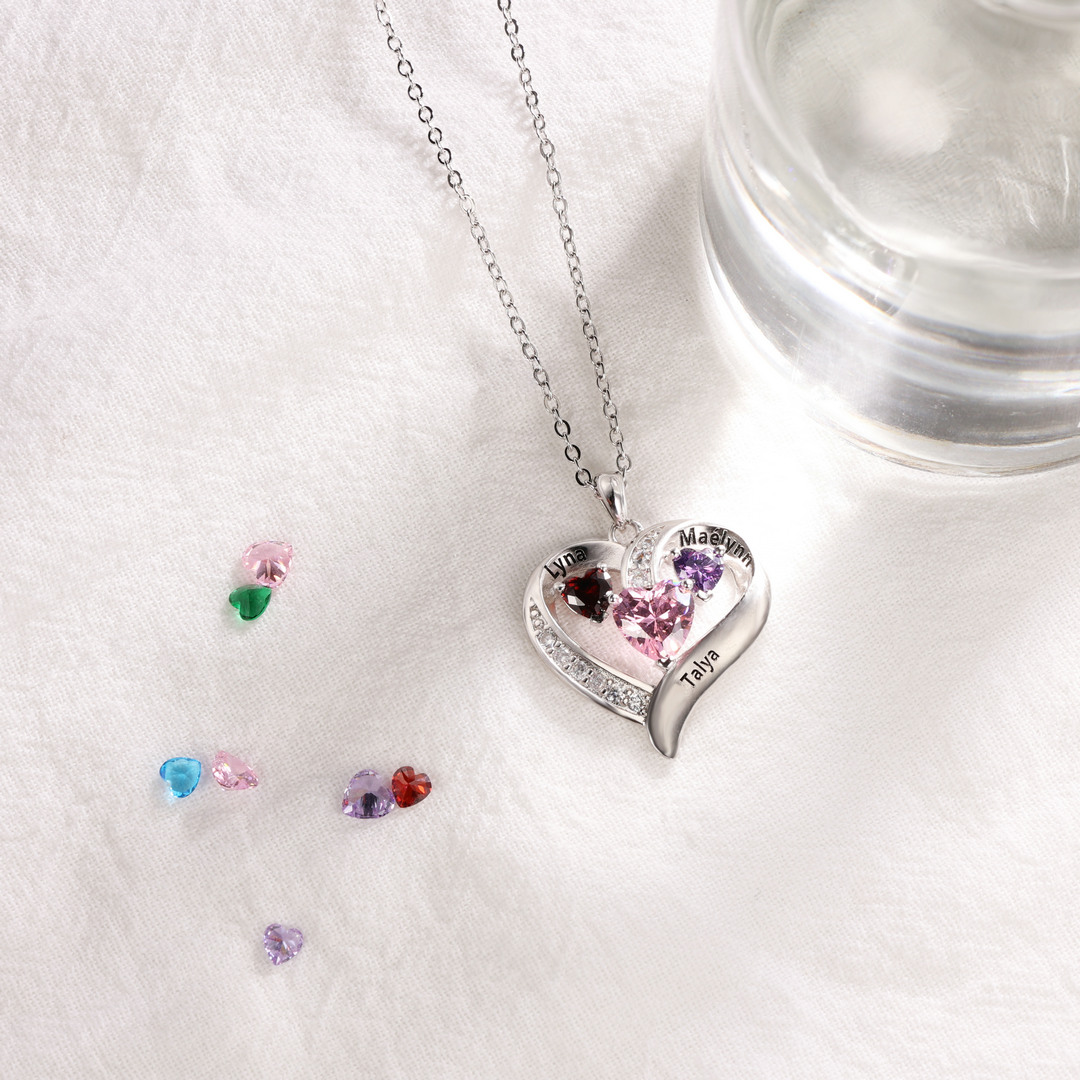 Collana personalizzata con 3 nomi a cuore e pietra di nascita