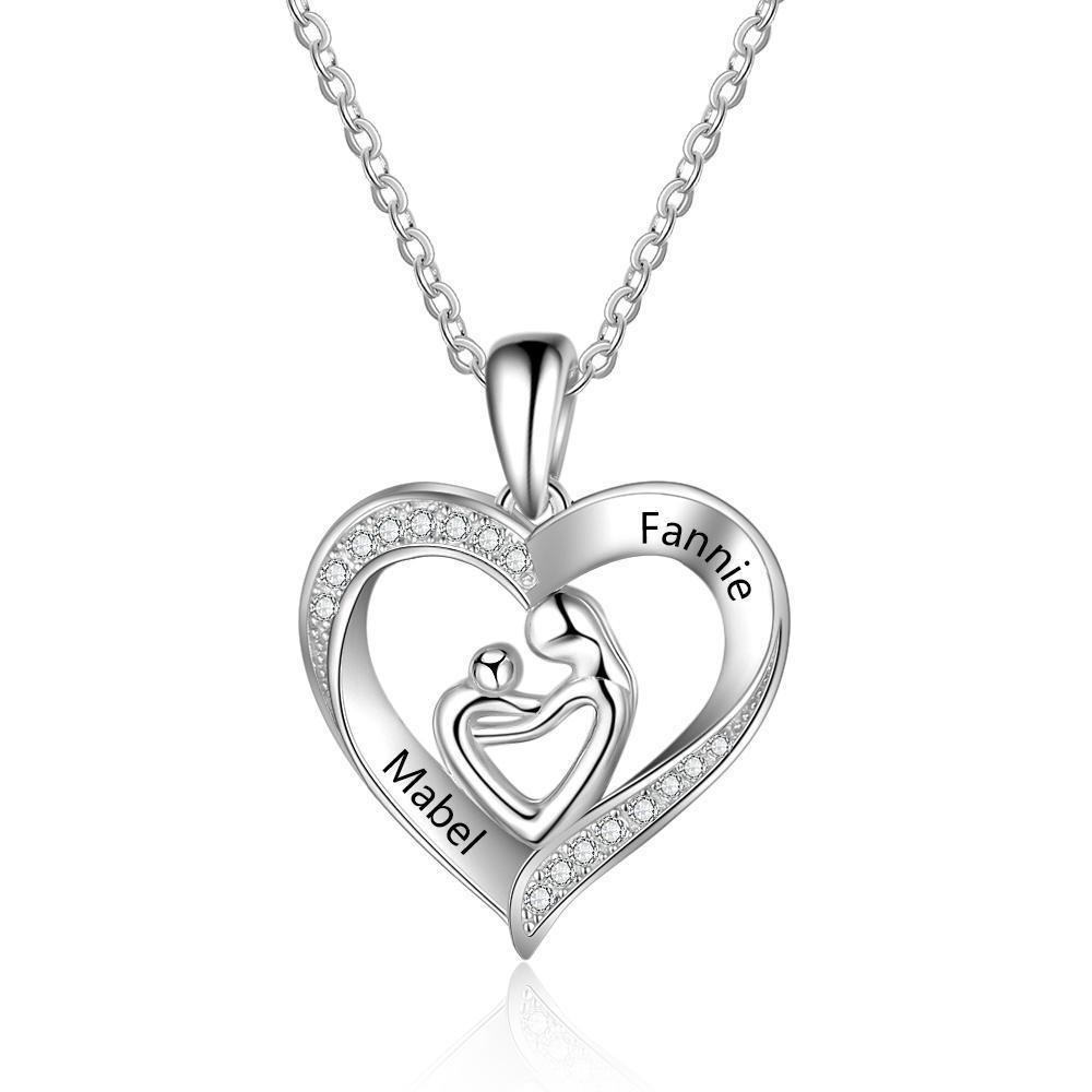 Collana d'argento 925 con incisione d'amore e 2 nomi per la mamma