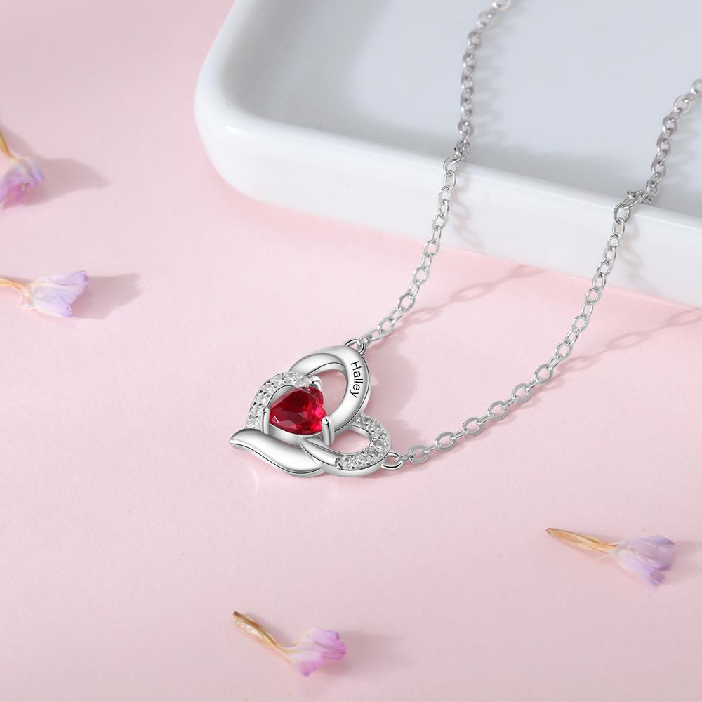 Collana con nome personalizzato Ciondolo a cuore con pietra di nascita