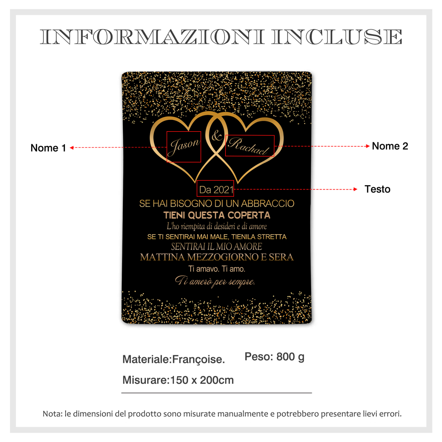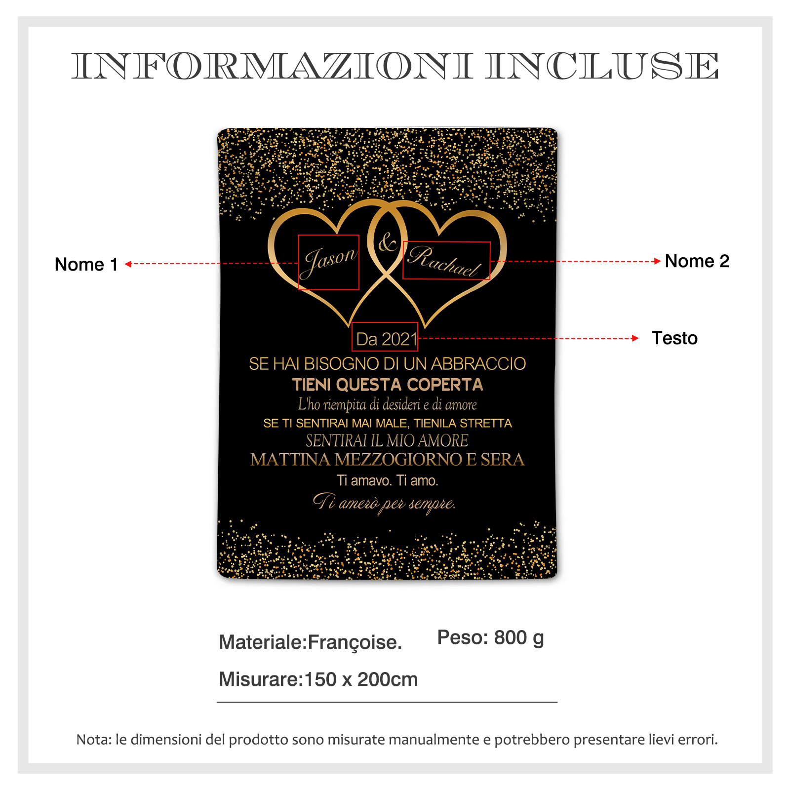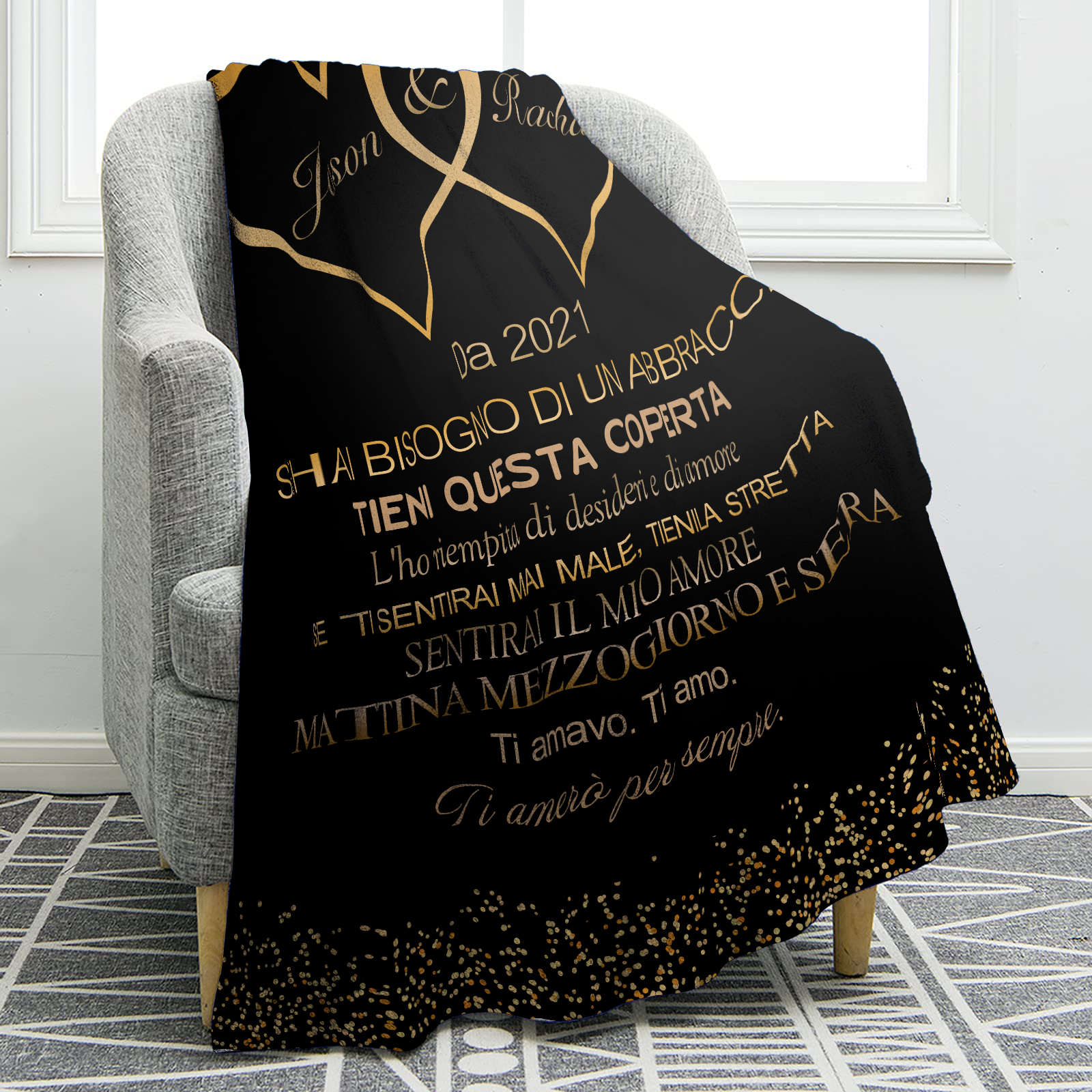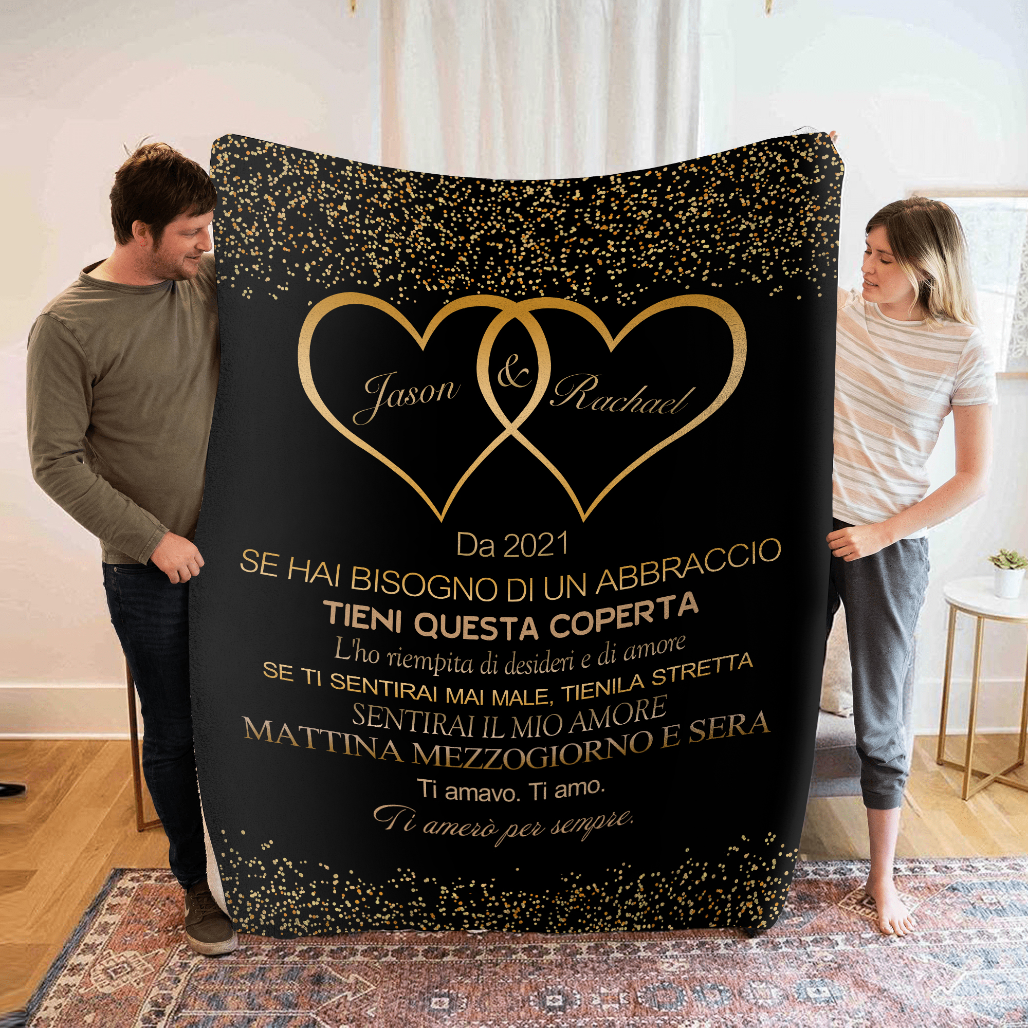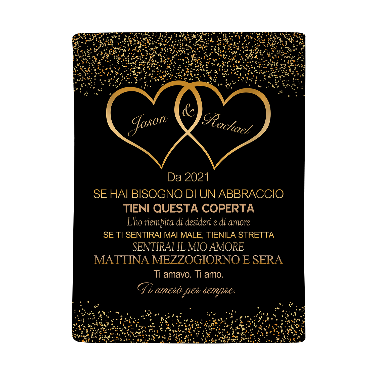 Coperta con cuore insieme per coppia 2 nomi e testo personalizzabile