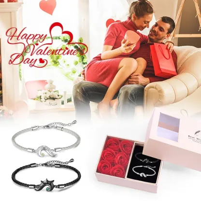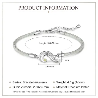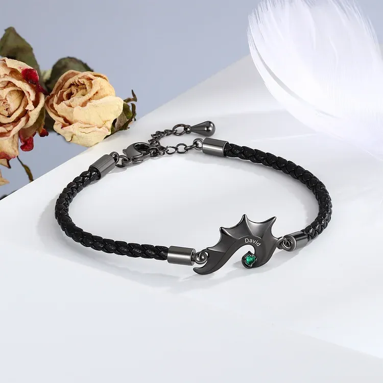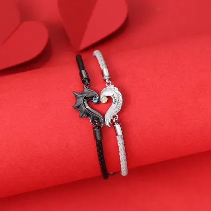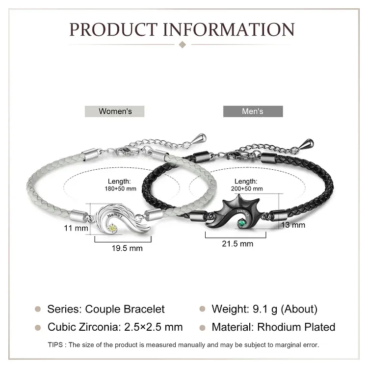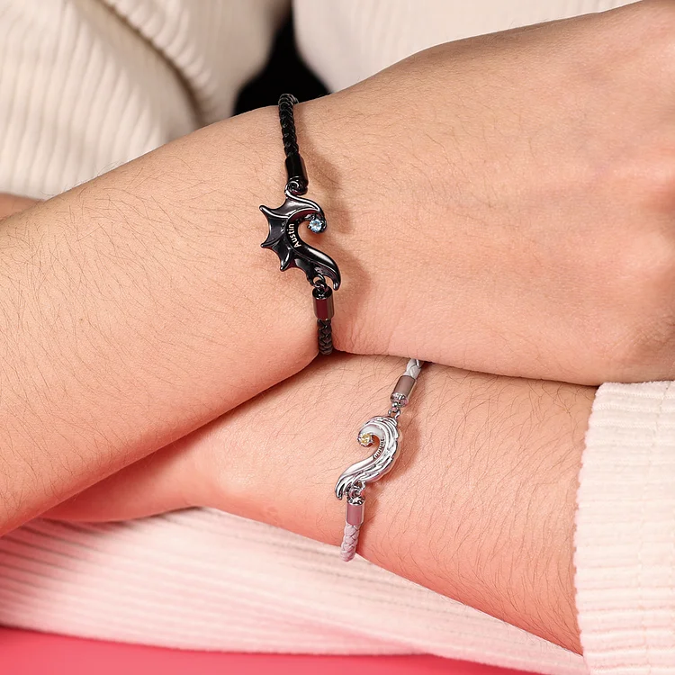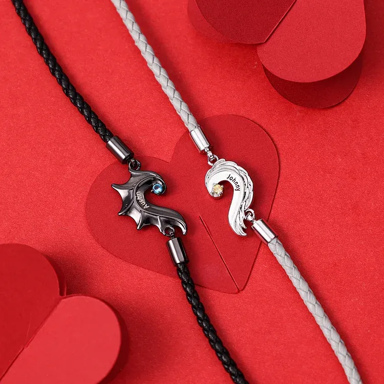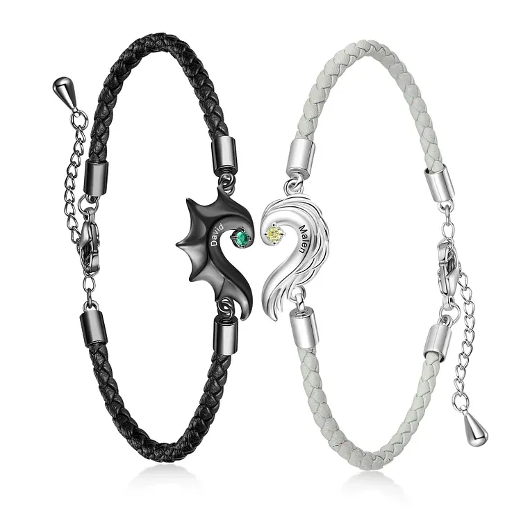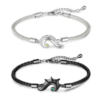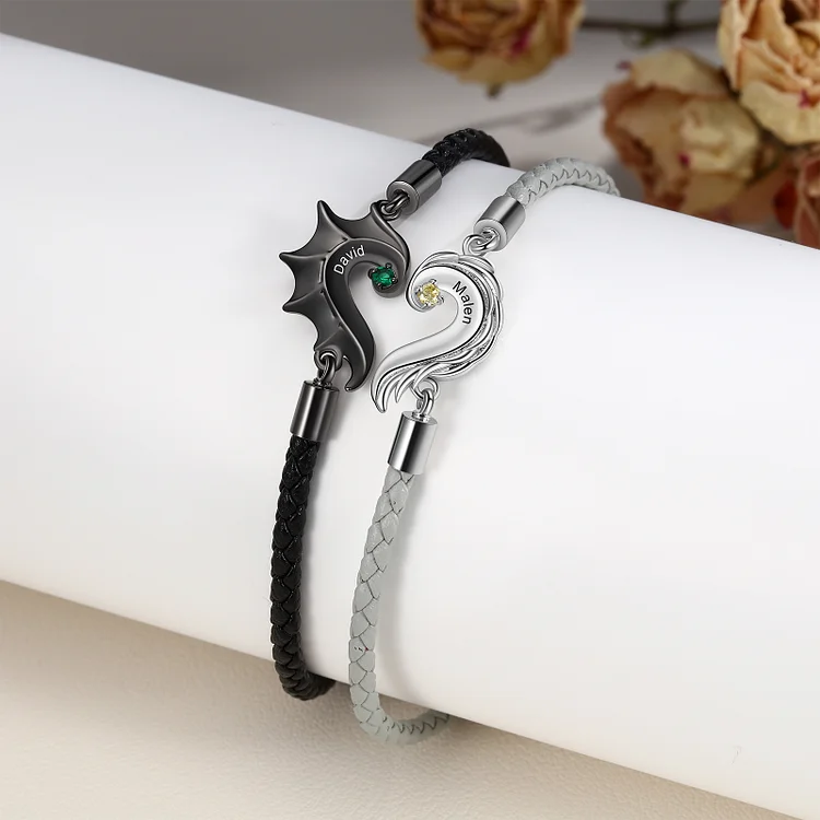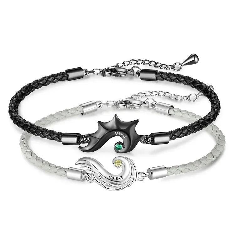 Coppia di Braccialetti 2 nomi e 2 pietre di nascita personalizzati per coppia