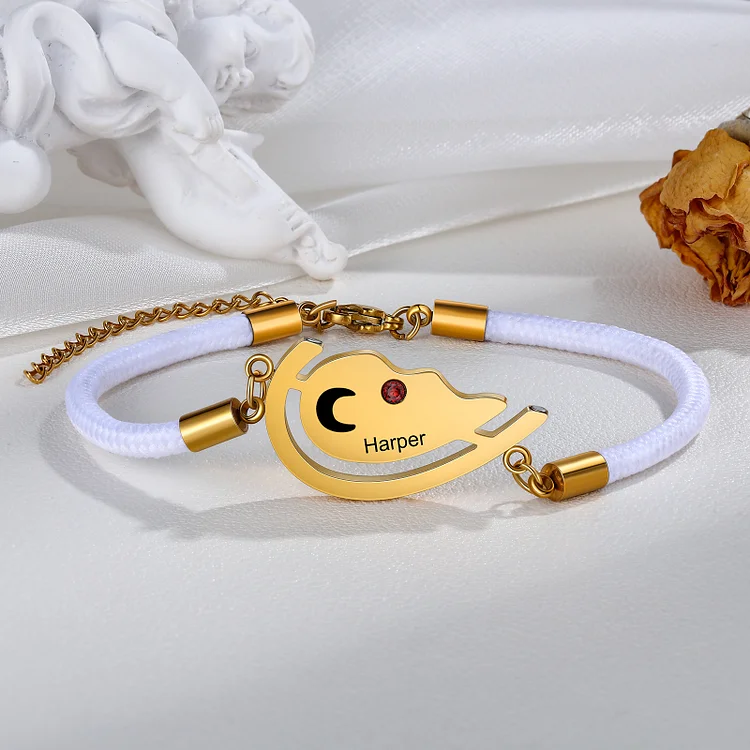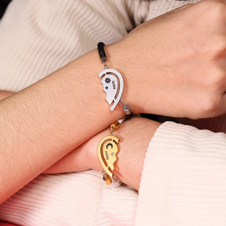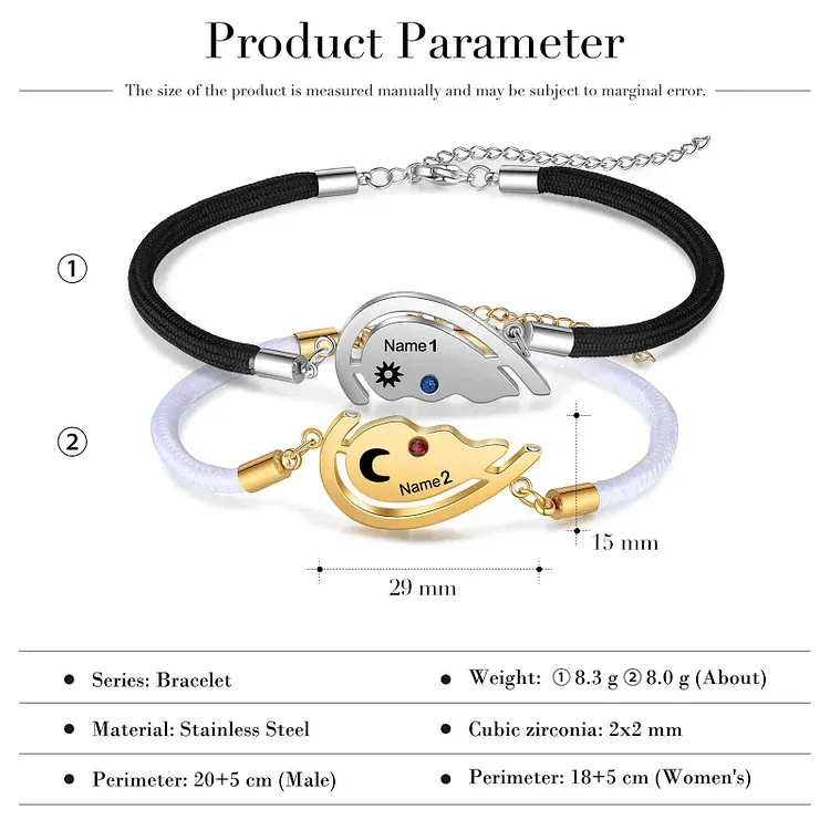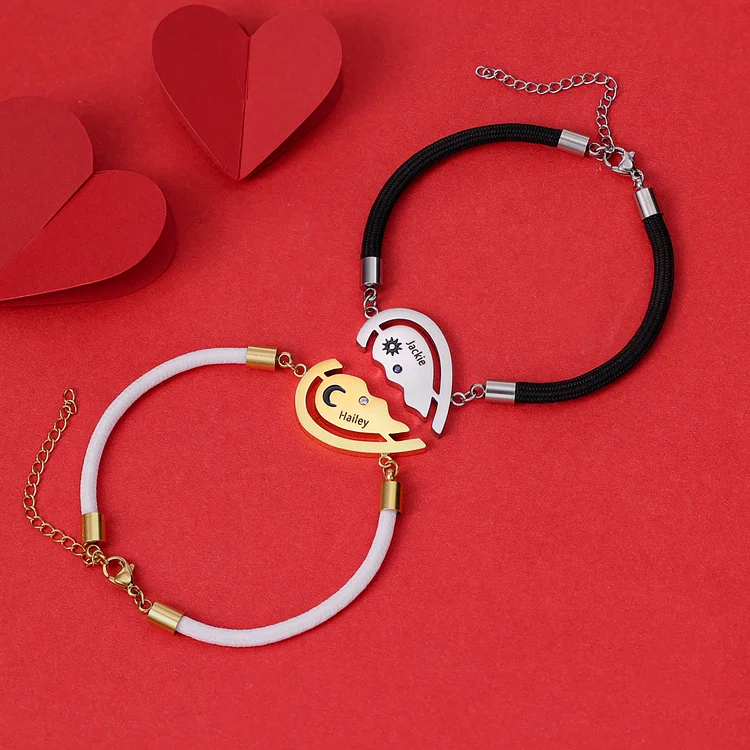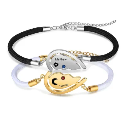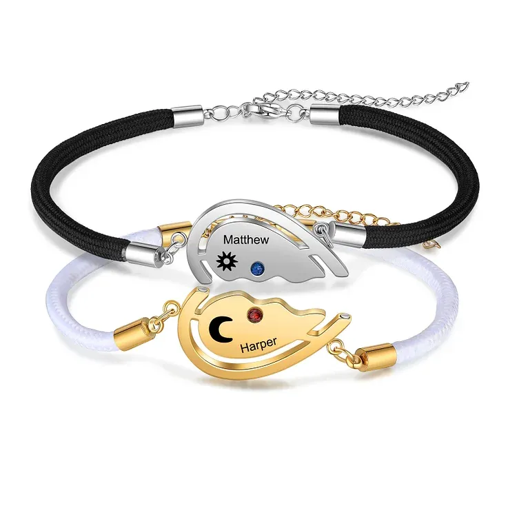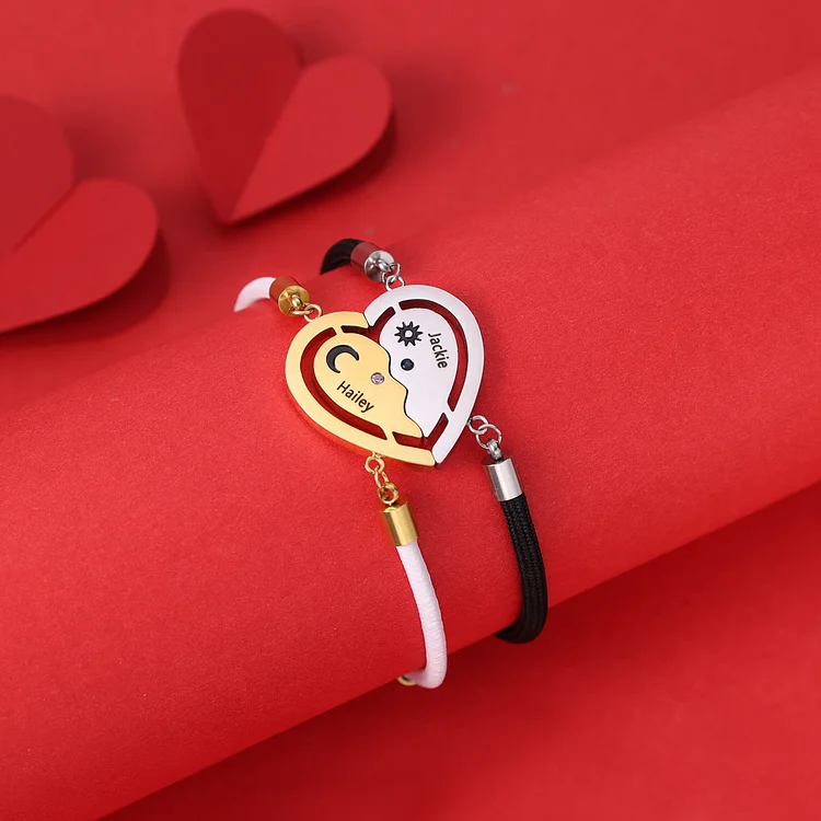 Coppia di Braccialetti cuore 2 nomi e 2 pietre di nascita per coppia