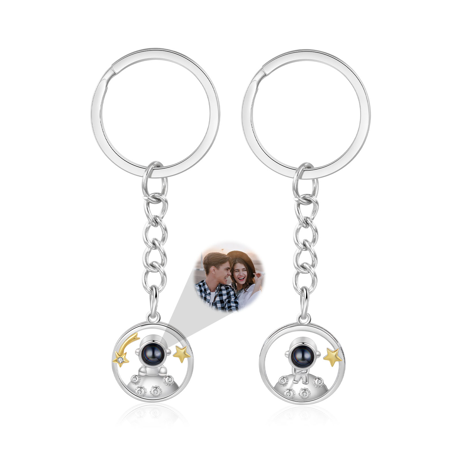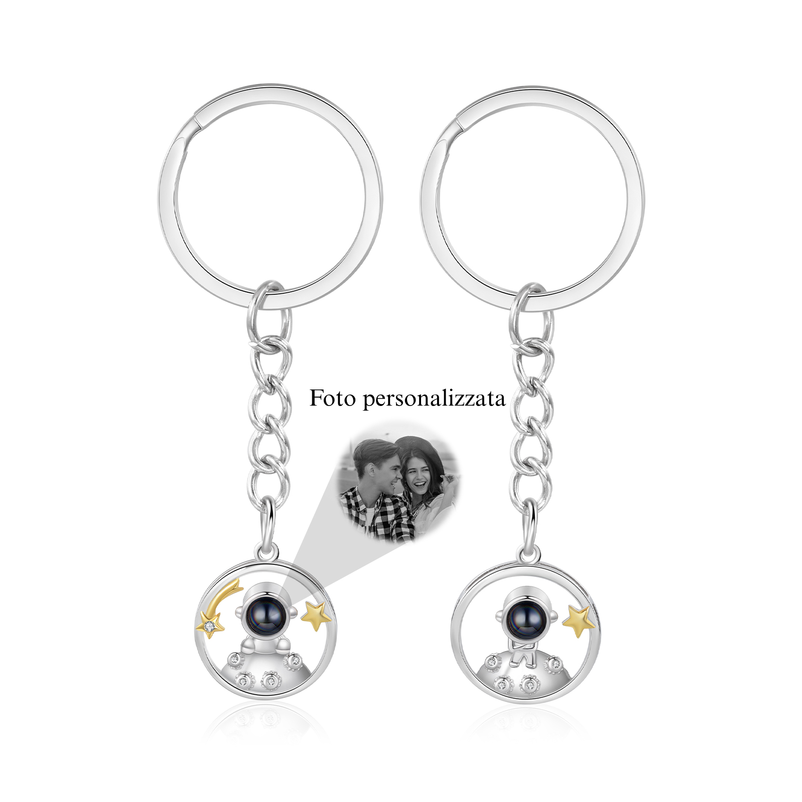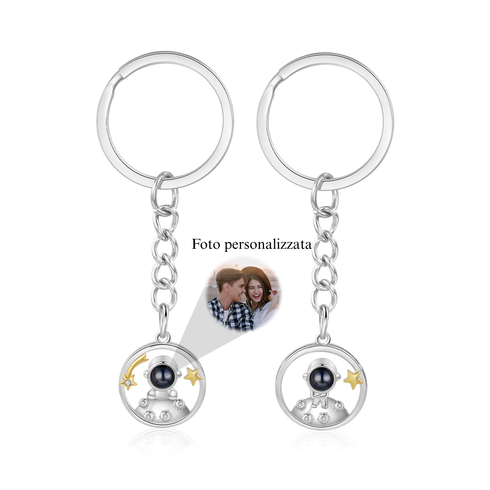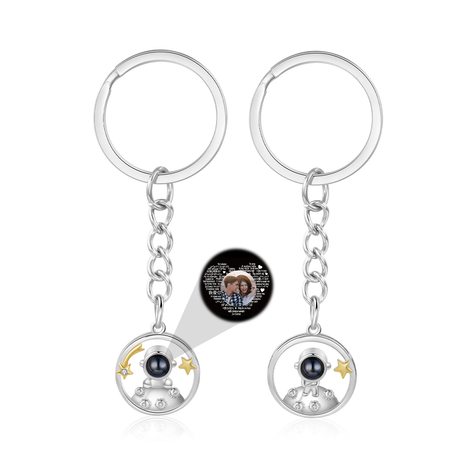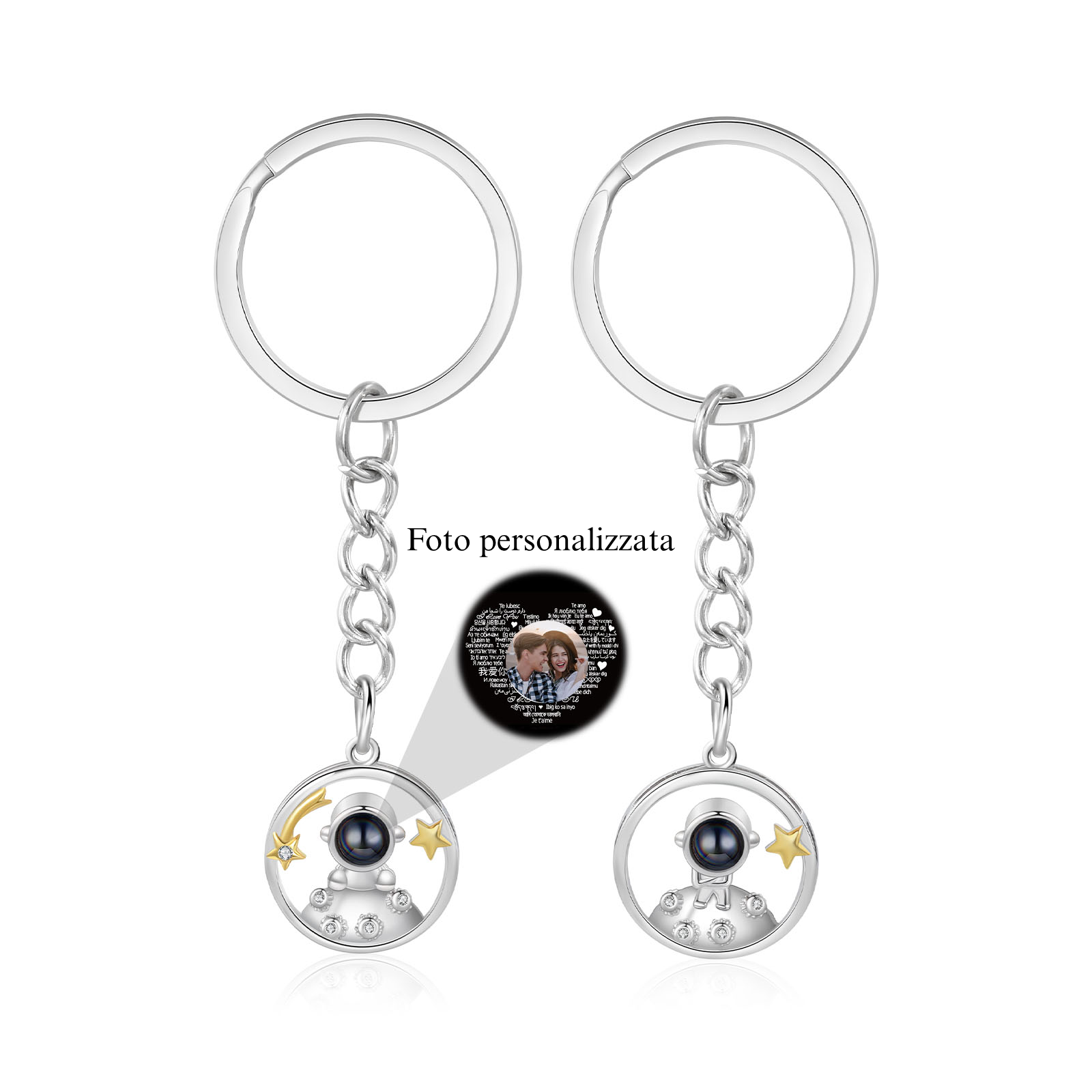 Ti amo Coppia di portachiavi 1 foto personalizzata a forma di astronauta e stelle con proiezione per coppia
