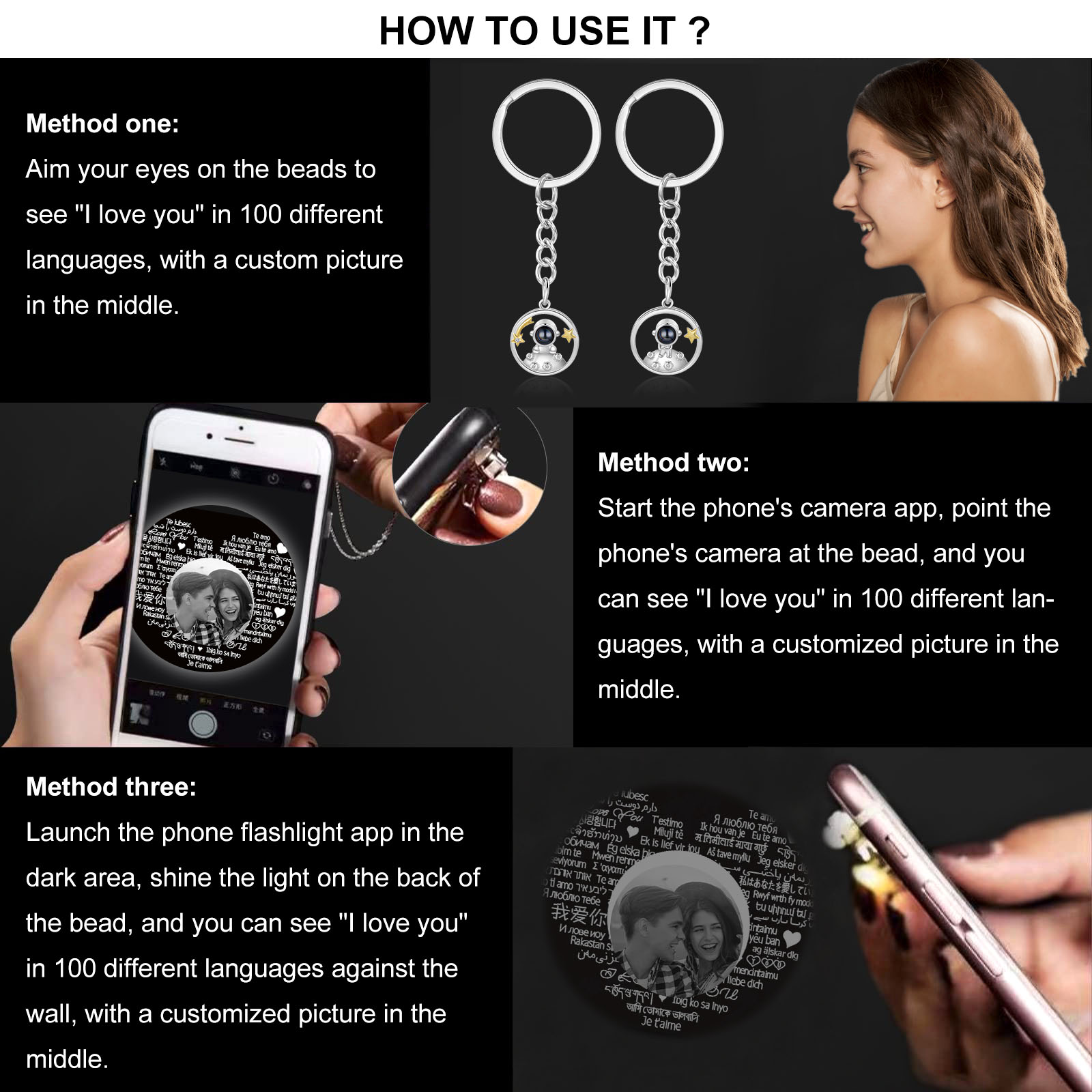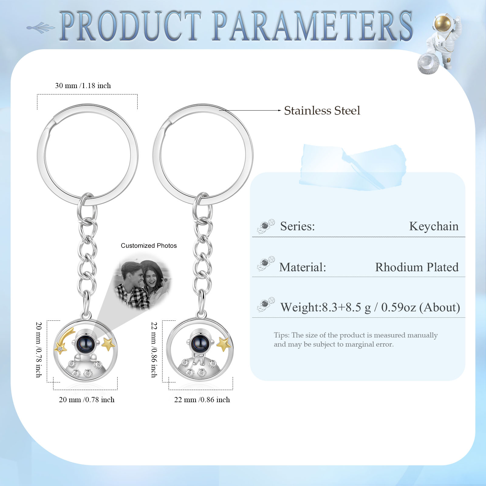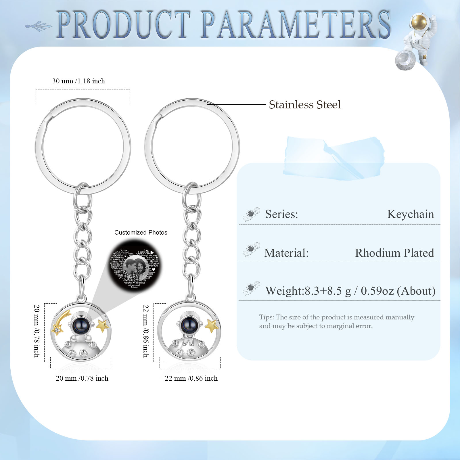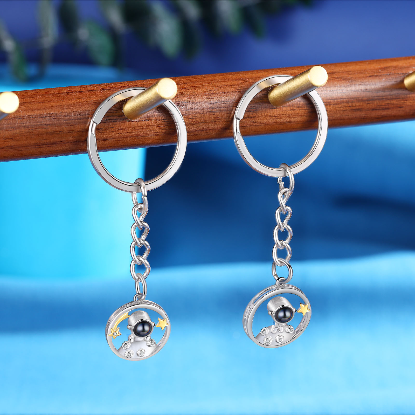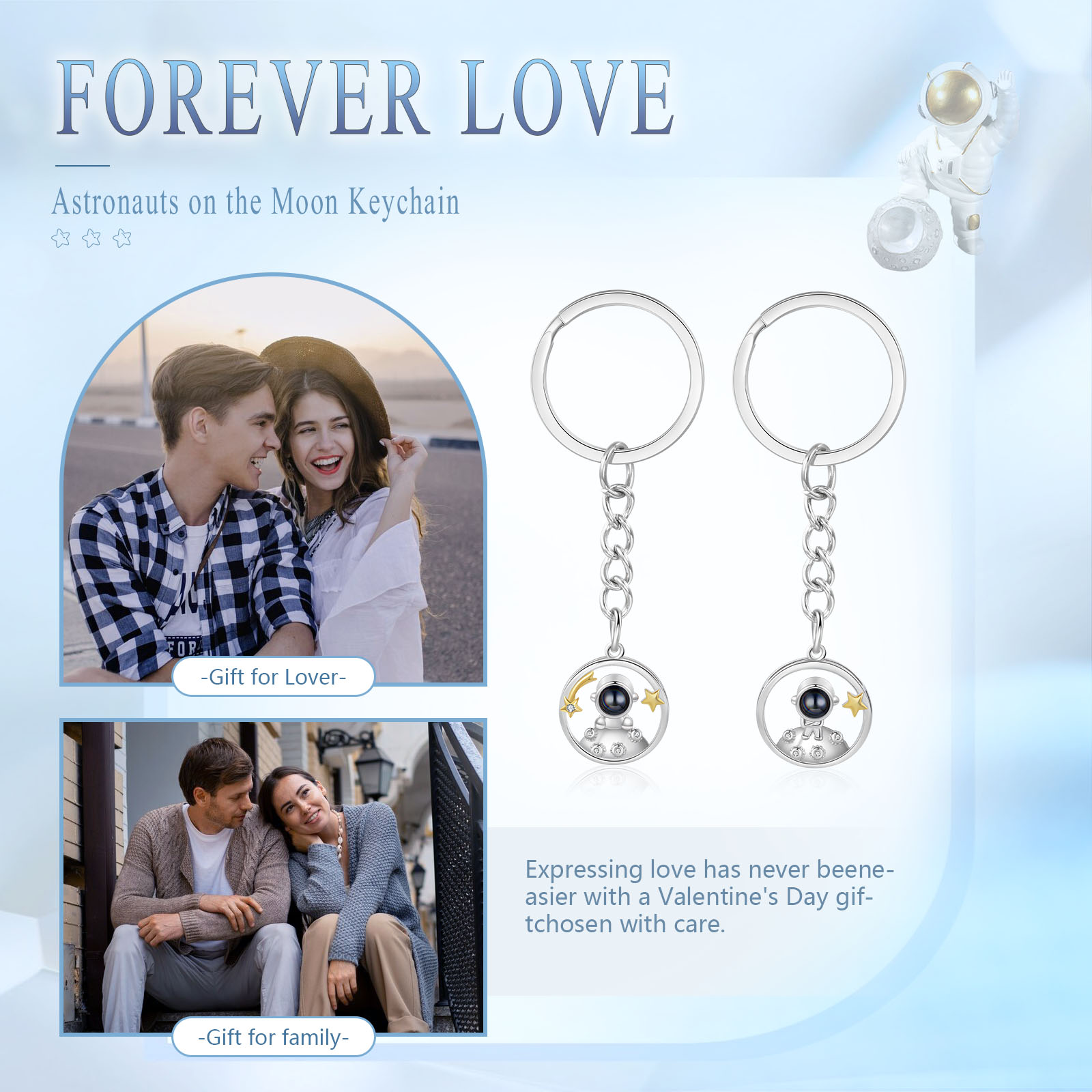 Ti amo Coppia di portachiavi 1 foto personalizzata a forma di astronauta e stelle con proiezione per coppia