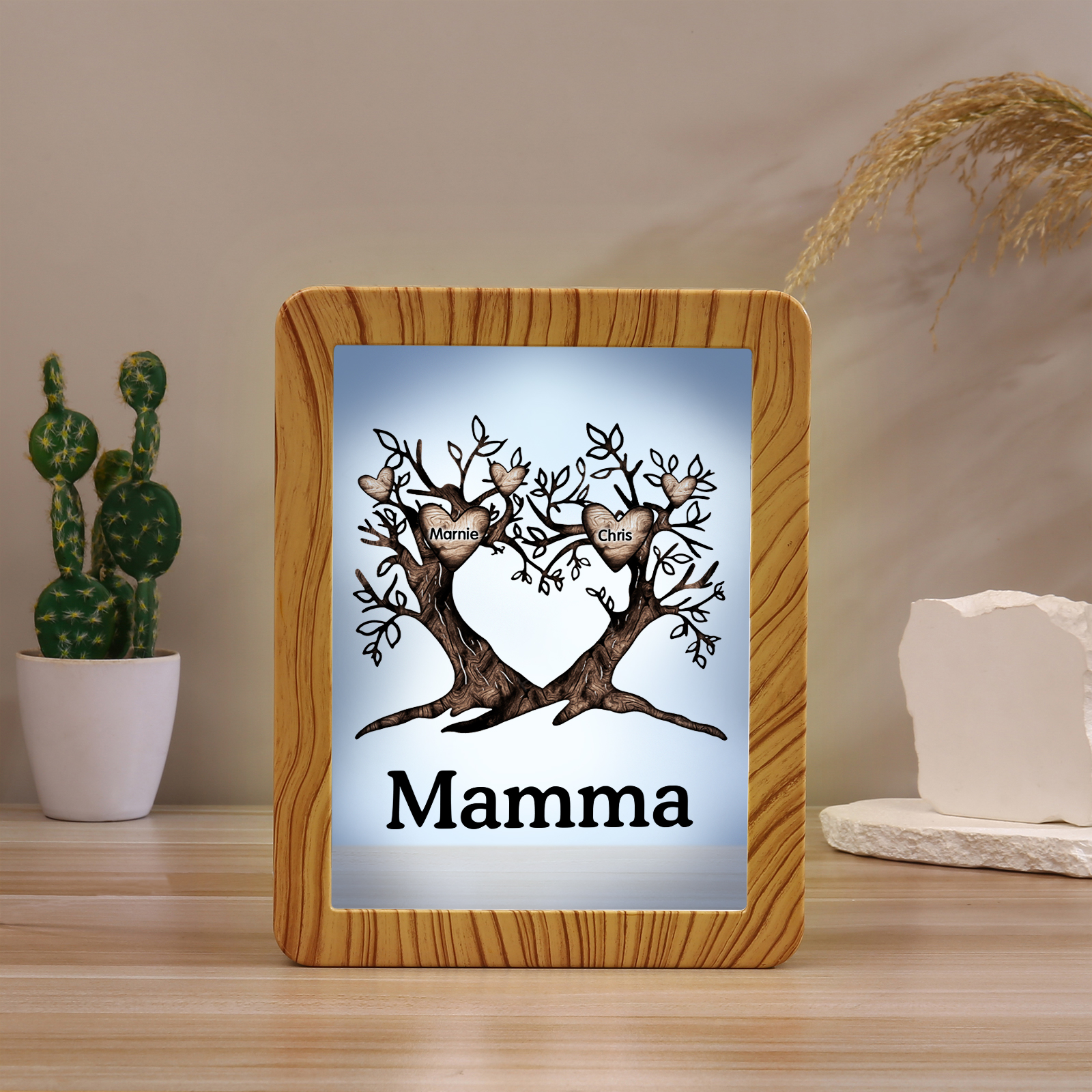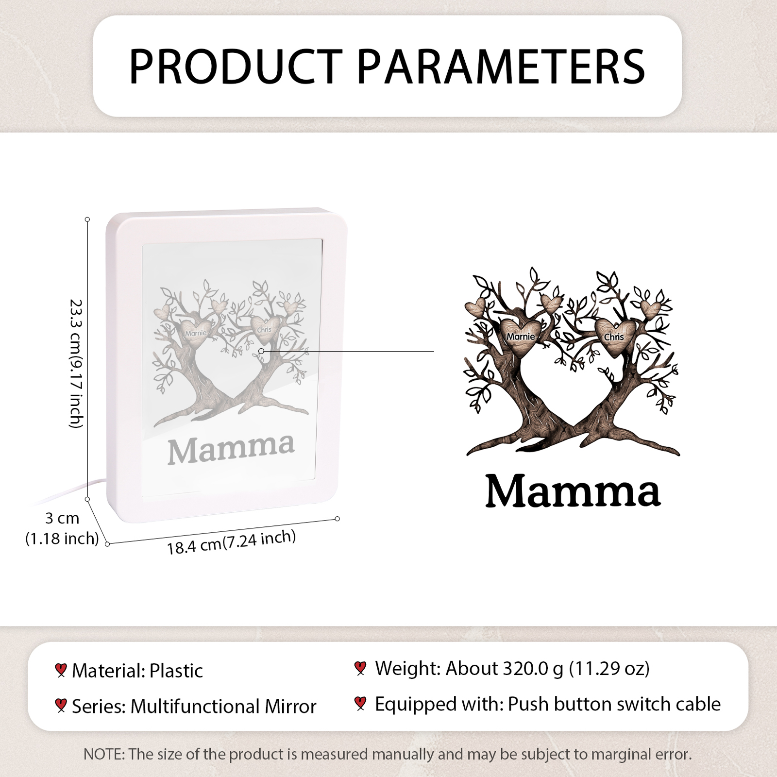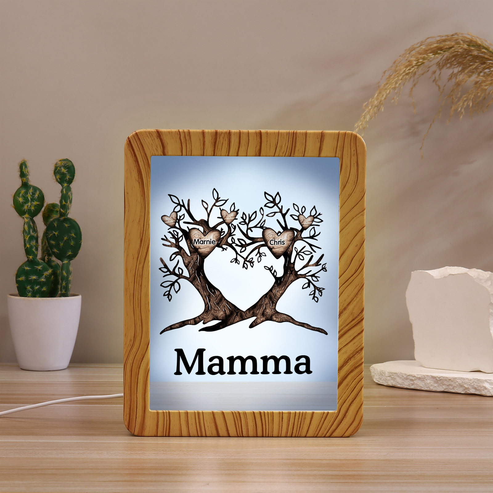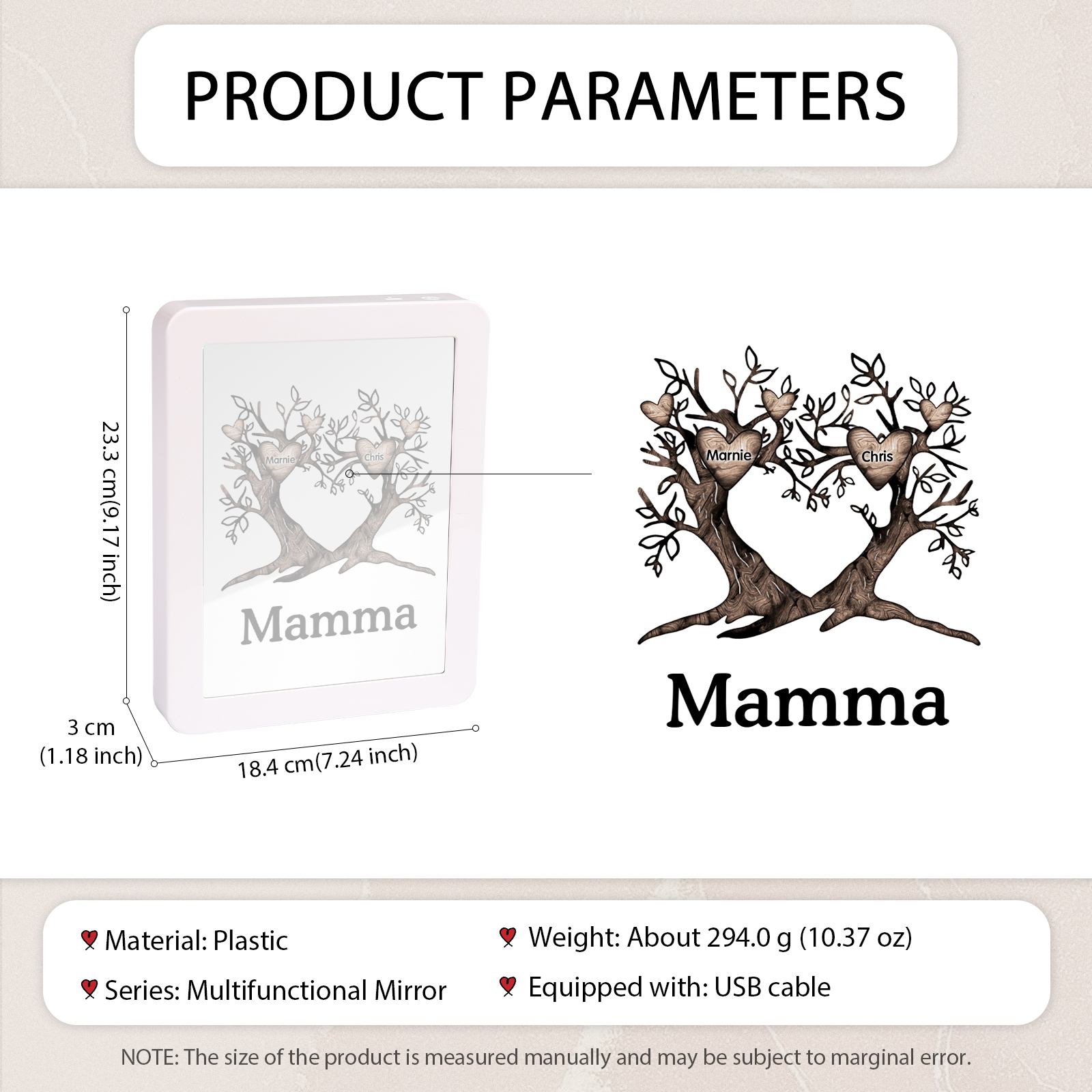 Cornice albero a cuore con LED luce a tre colori 2 nomi e 1 testo personalizzati anche usati come specchio regalo per mamma/nonna