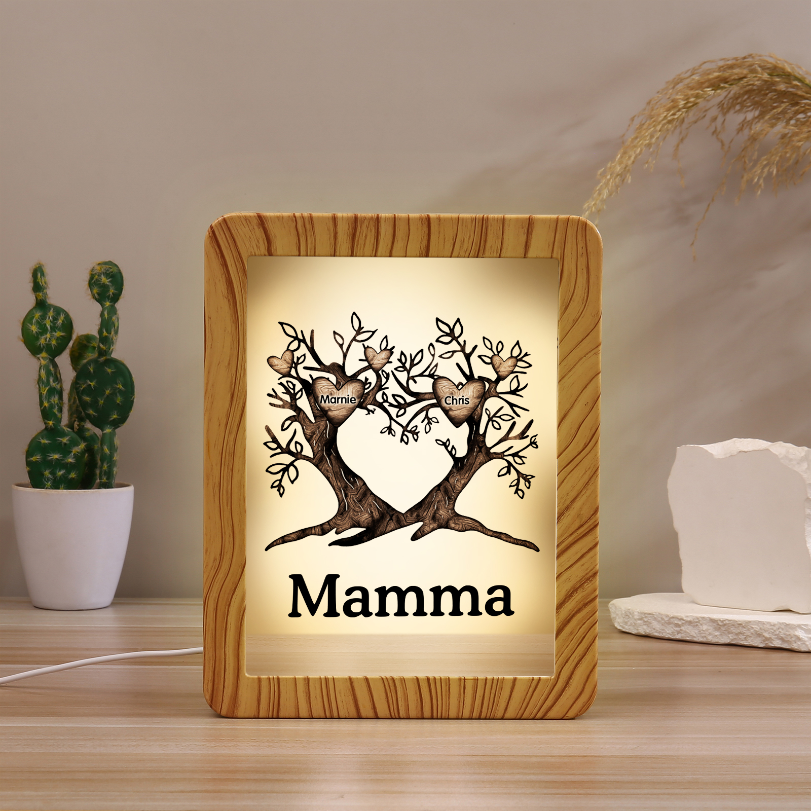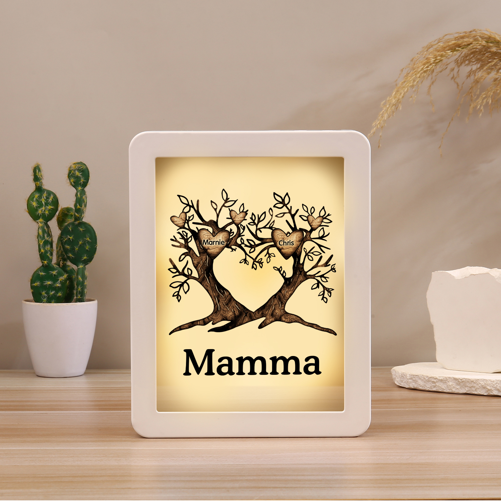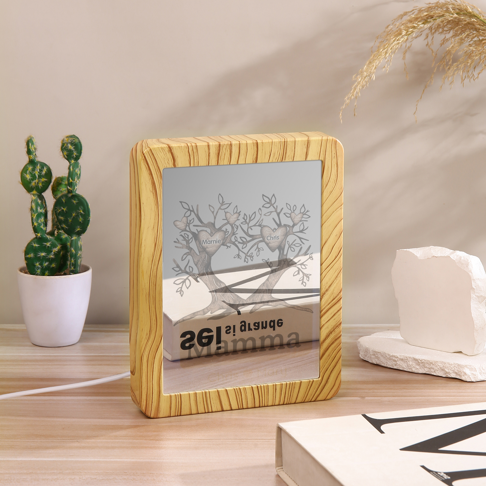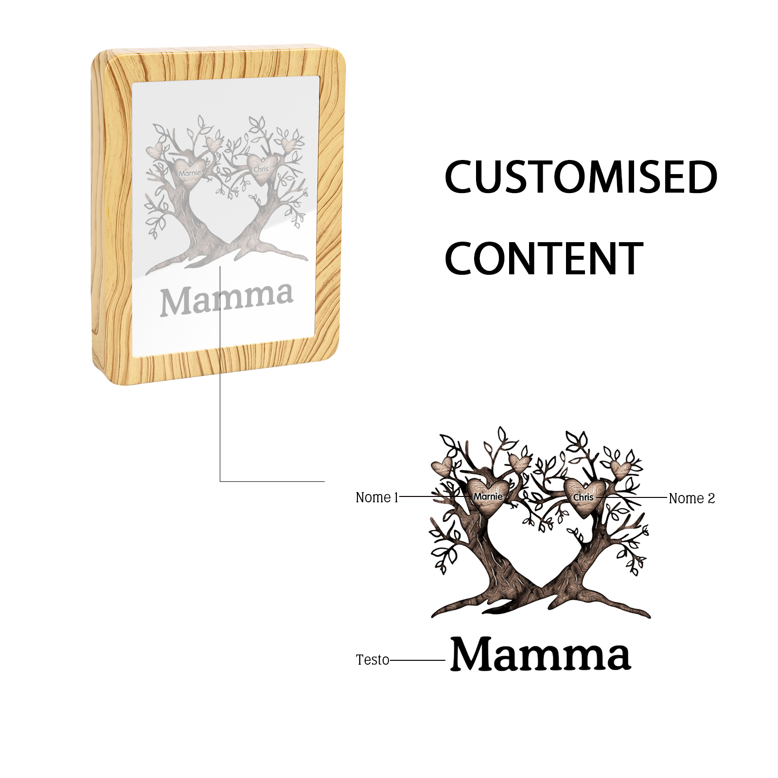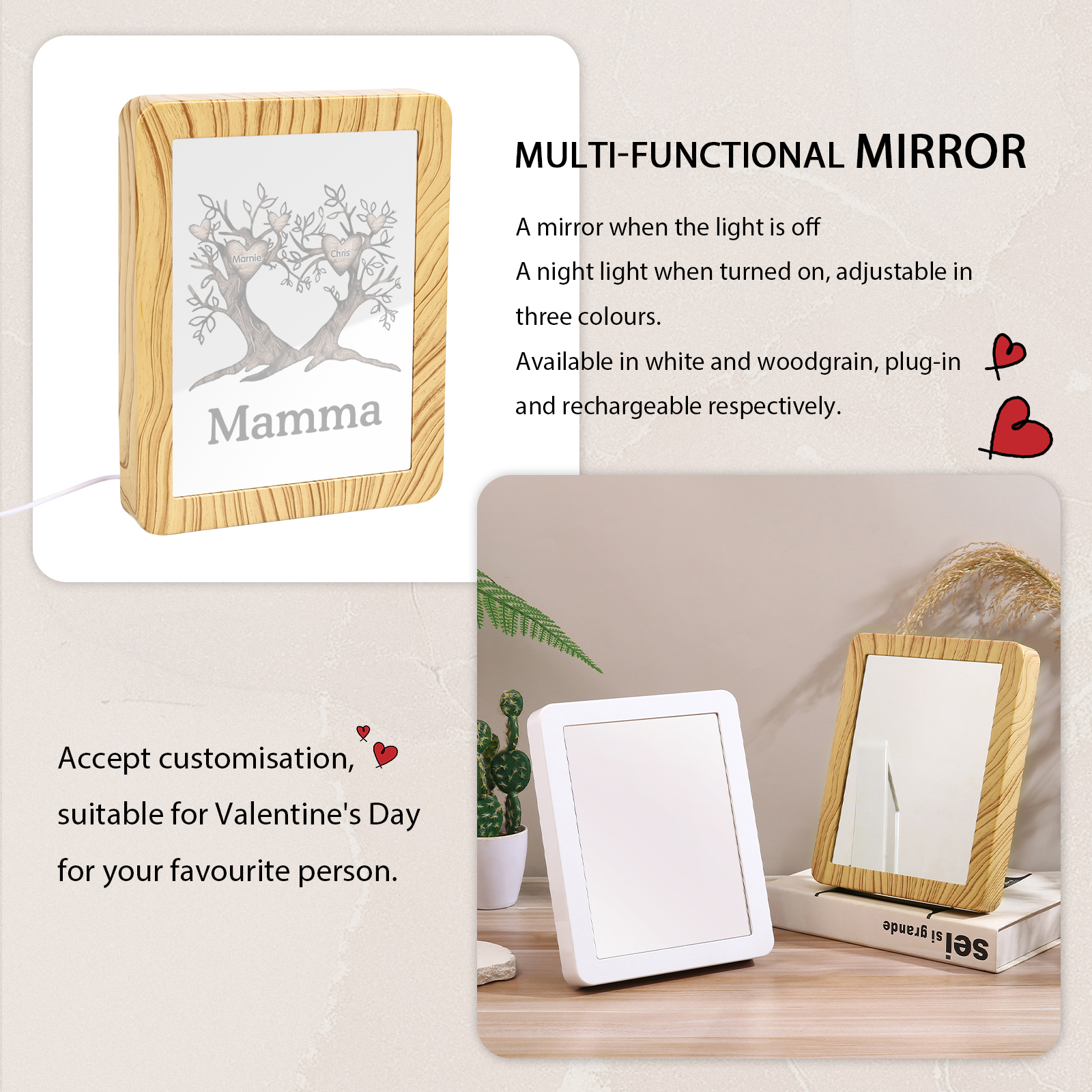 Cornice albero a cuore con LED luce a tre colori 2 nomi e 1 testo personalizzati anche usati come specchio regalo per mamma/nonna