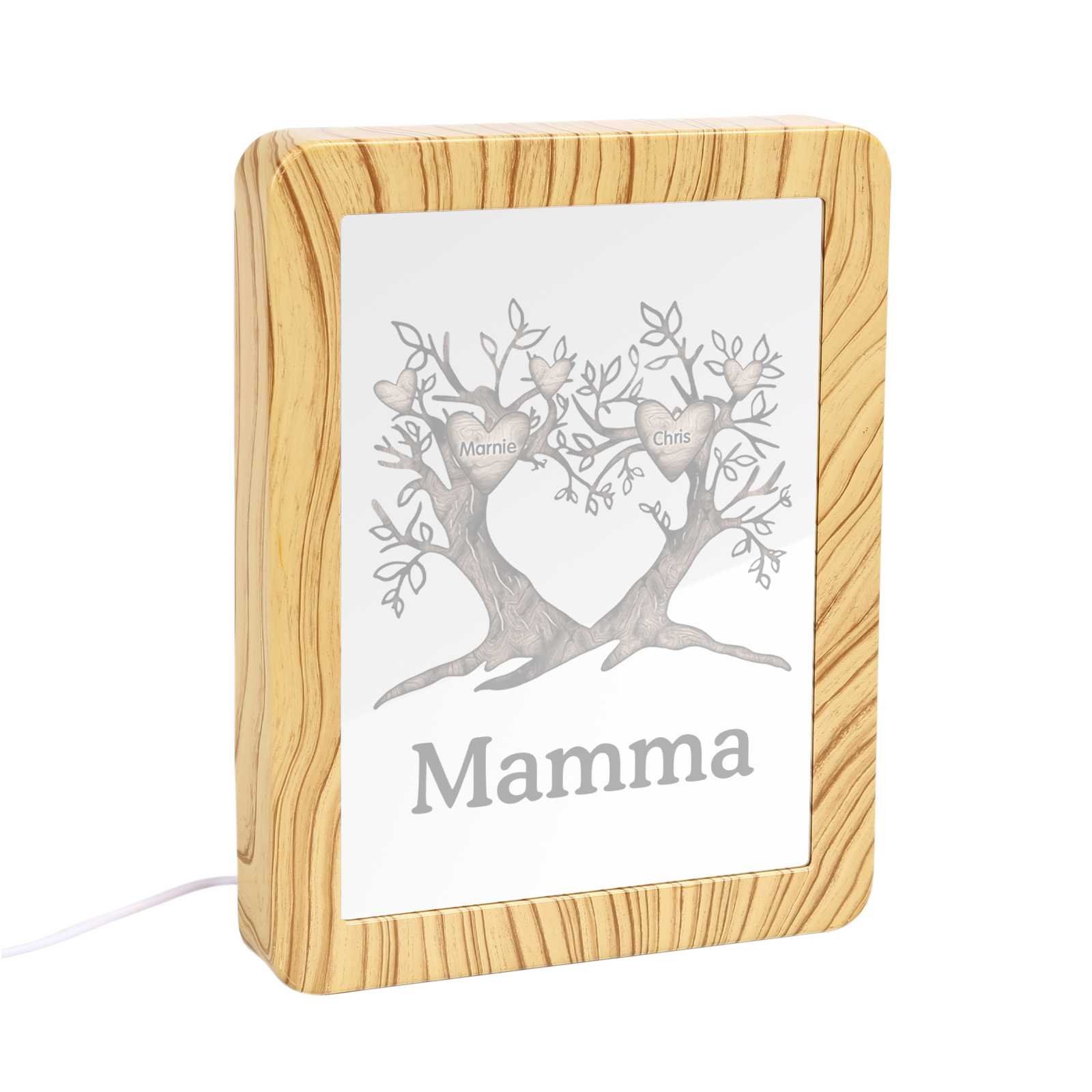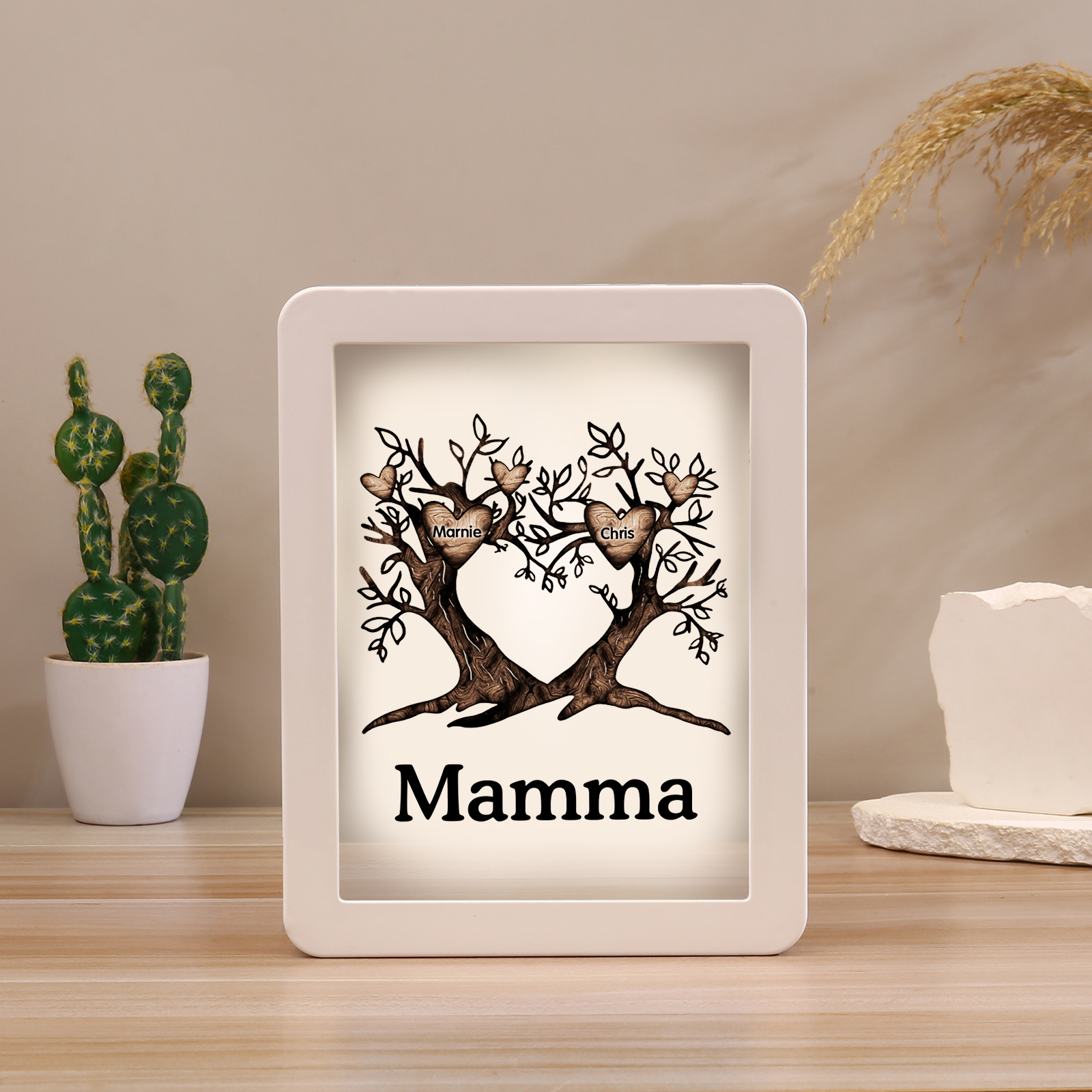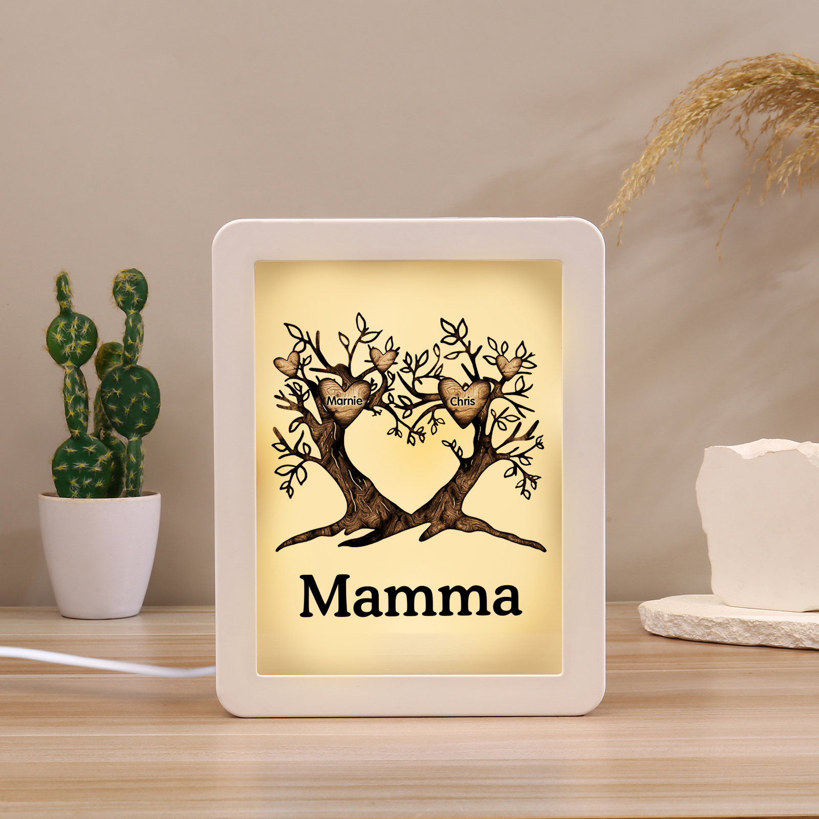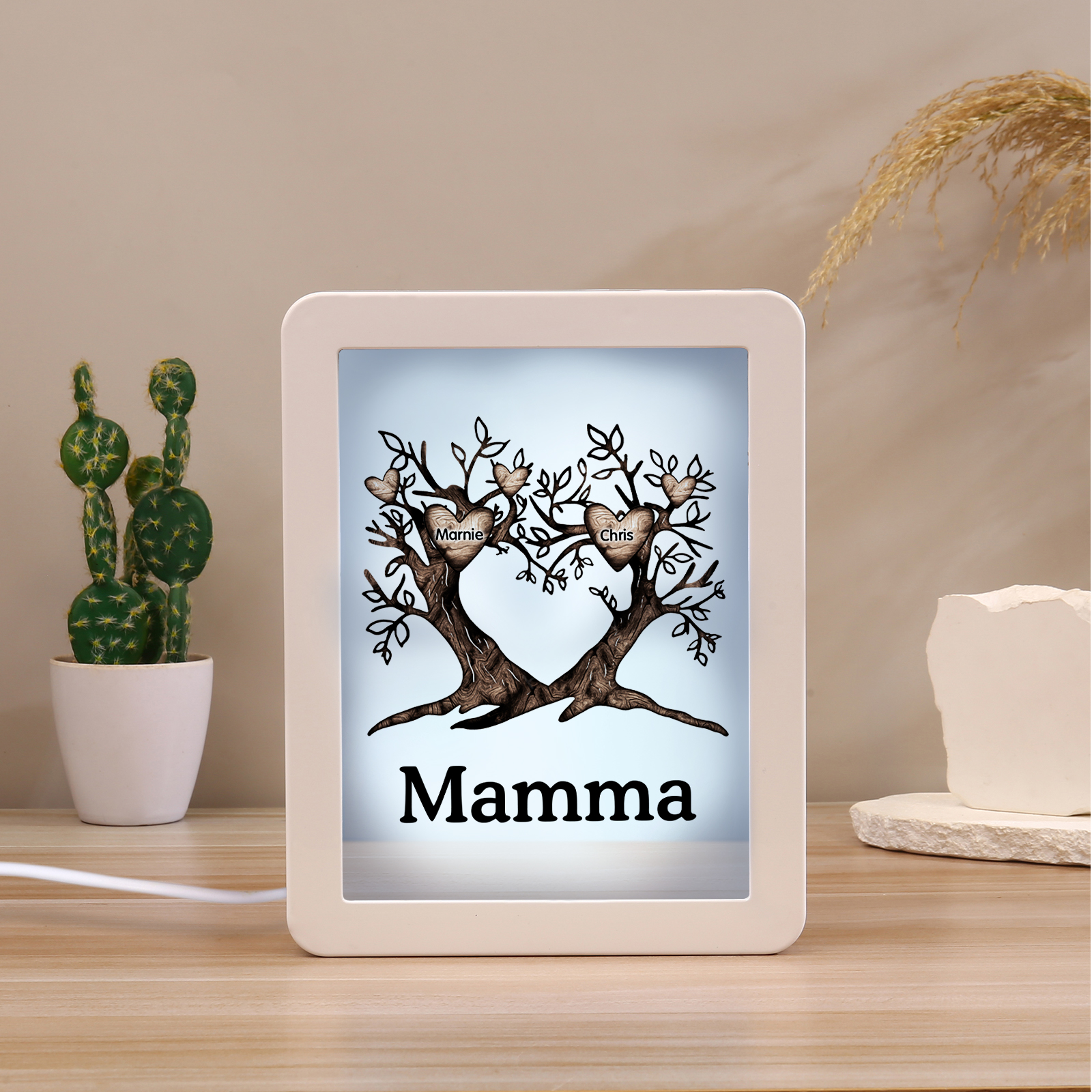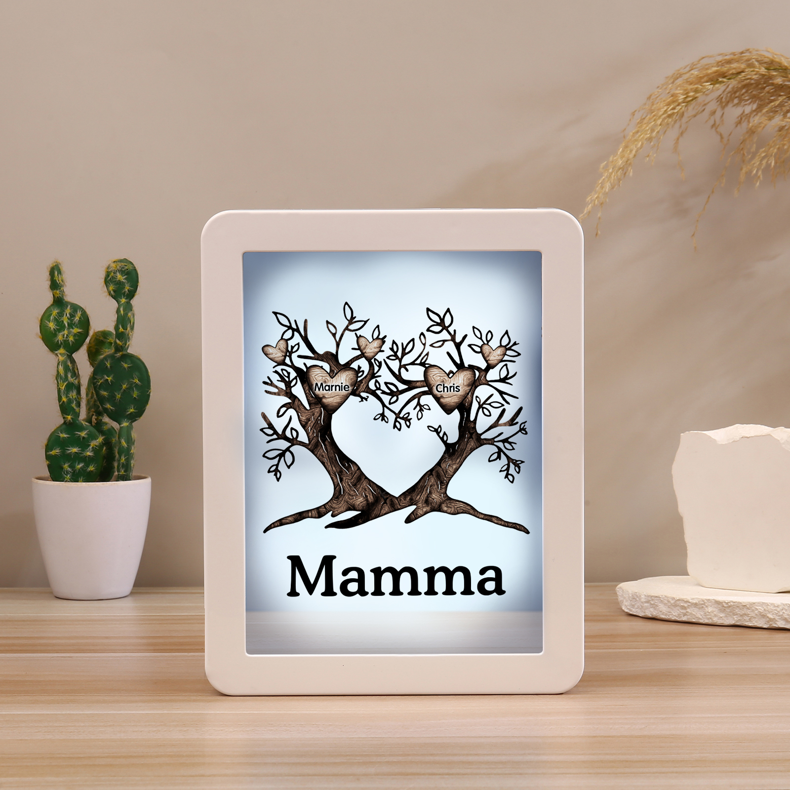 Cornice albero a cuore con LED luce a tre colori 2 nomi e 1 testo personalizzati anche usati come specchio regalo per mamma/nonna