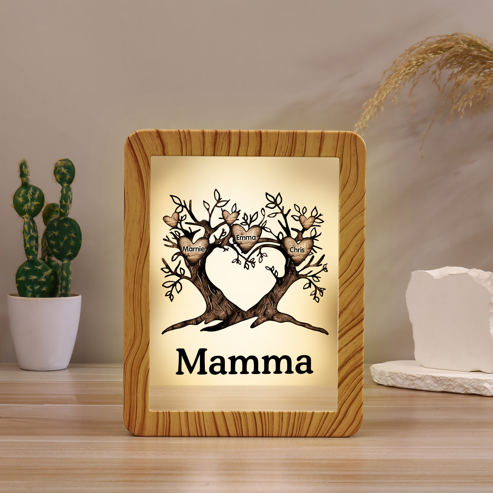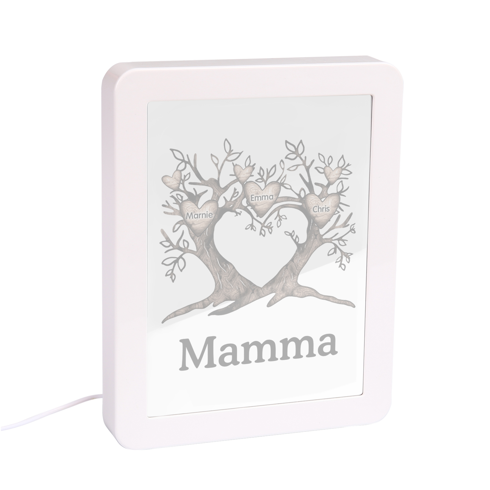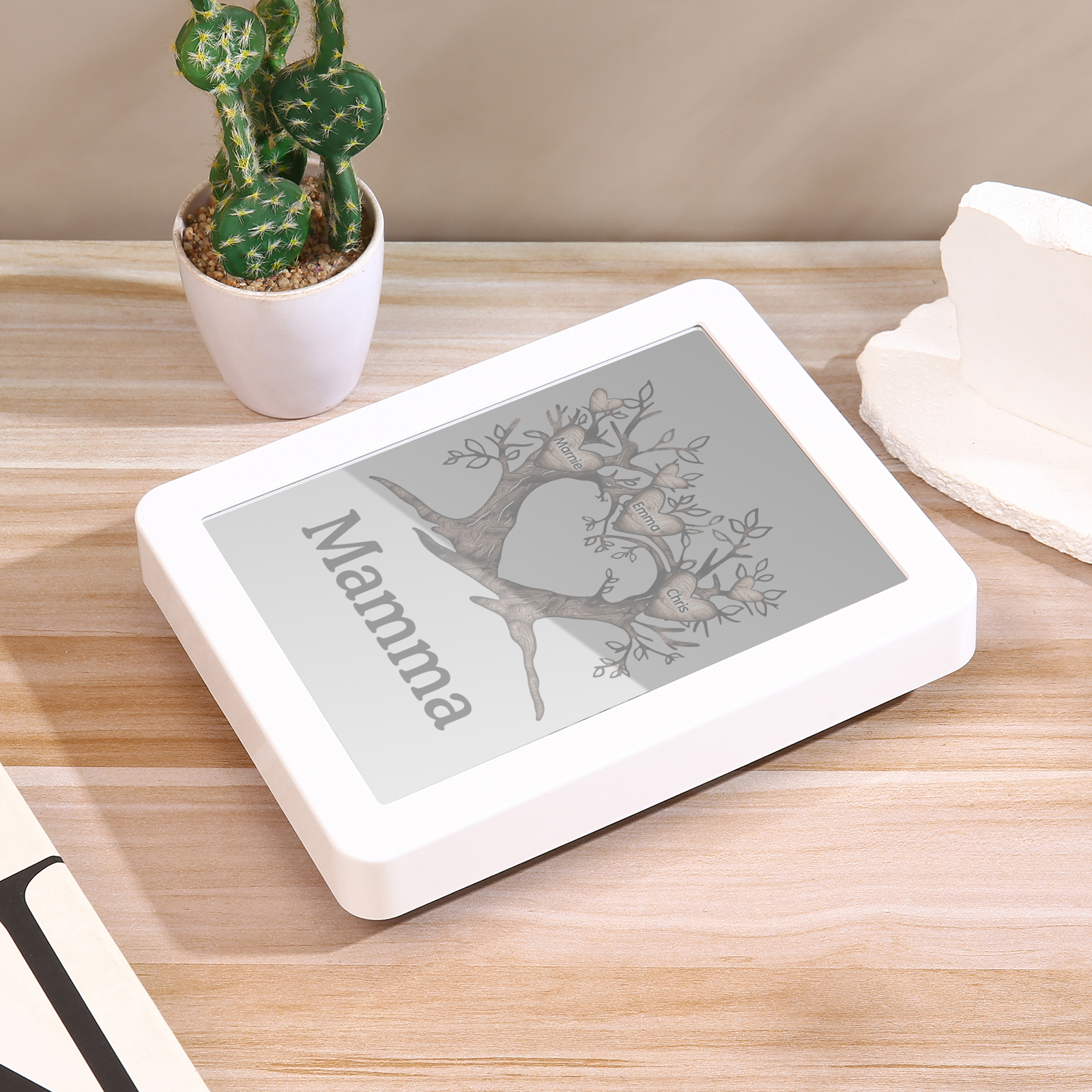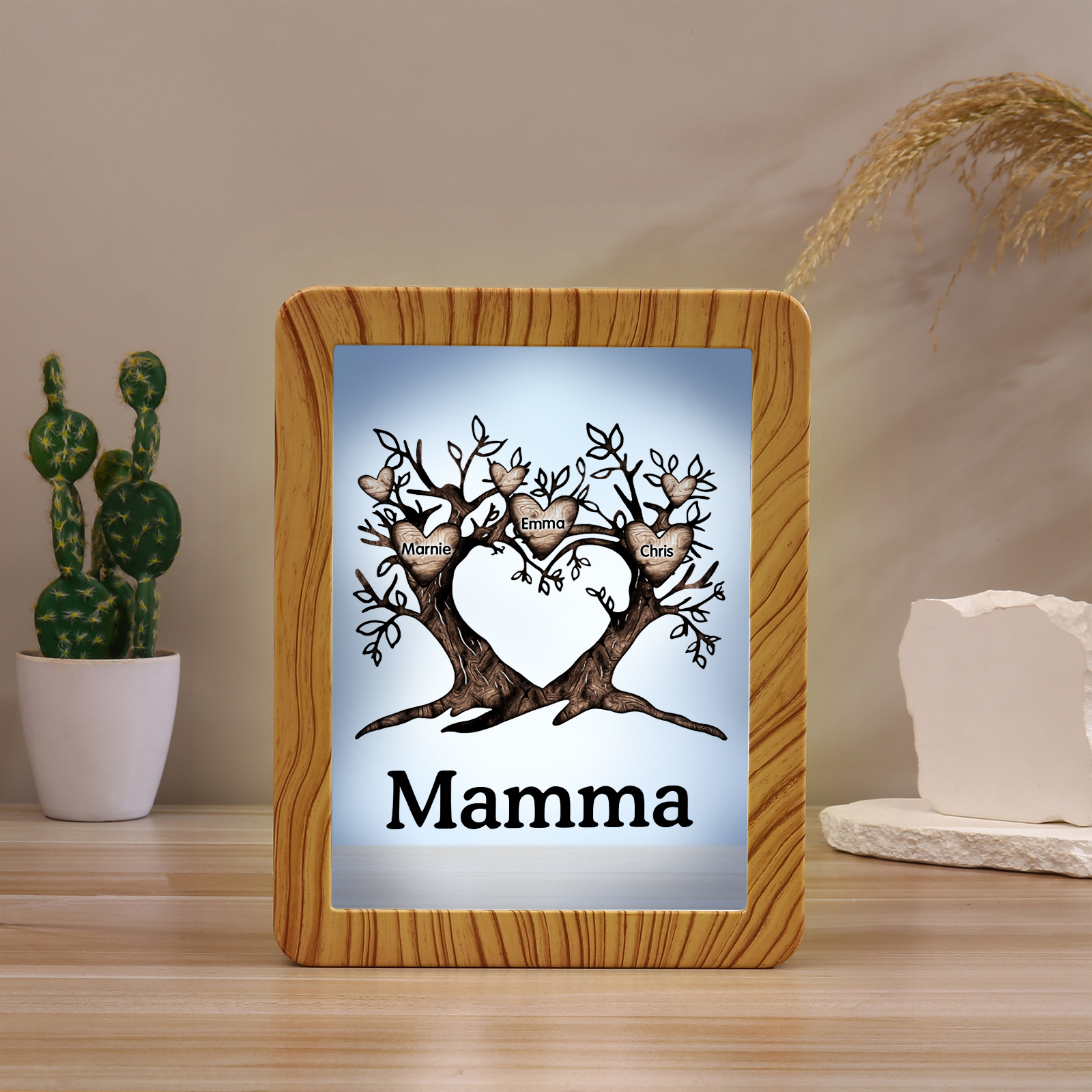 Cornice albero a cuore con LED luce a tre colori 3 nomi e 1 testo personalizzati anche usati come specchio regalo per mamma/nonna