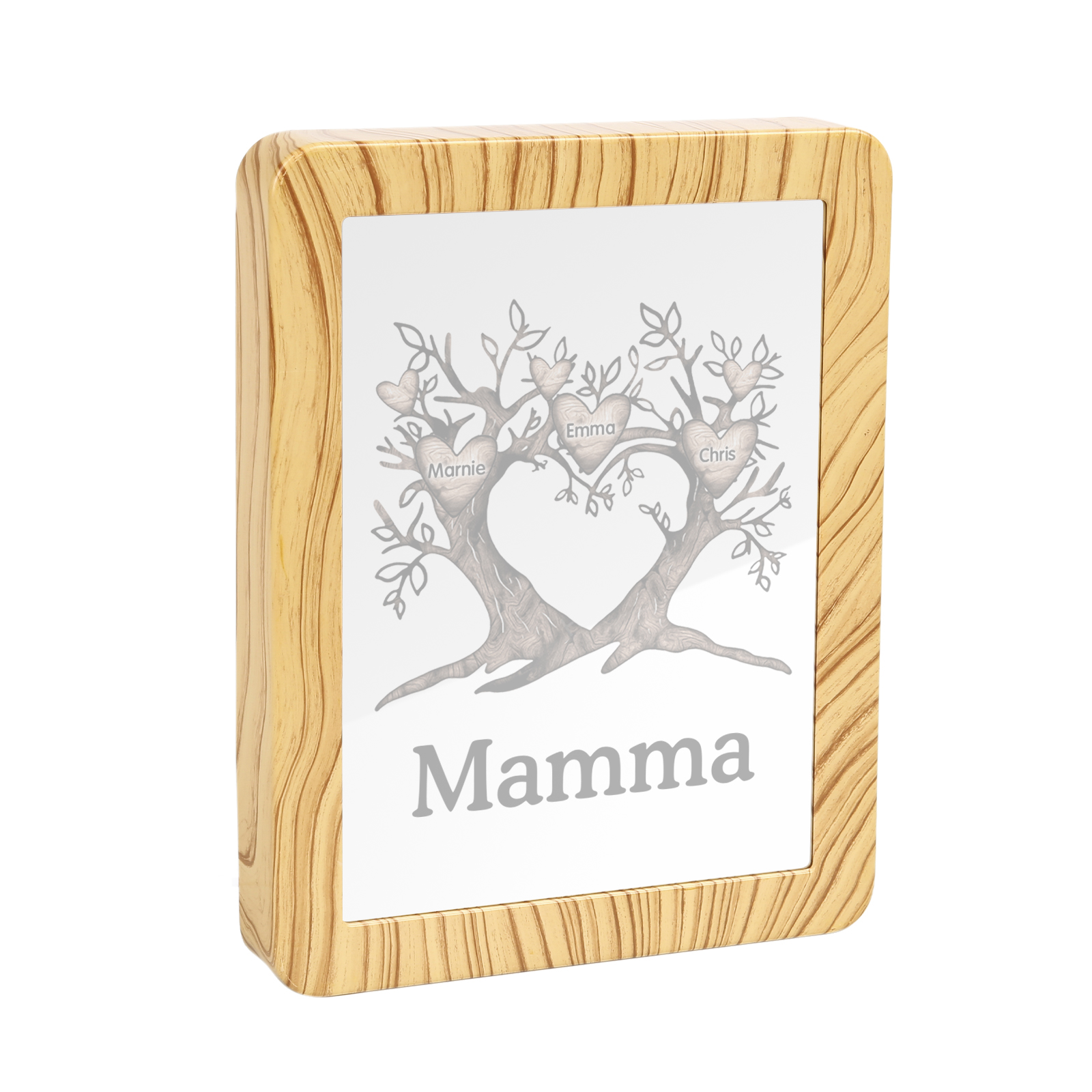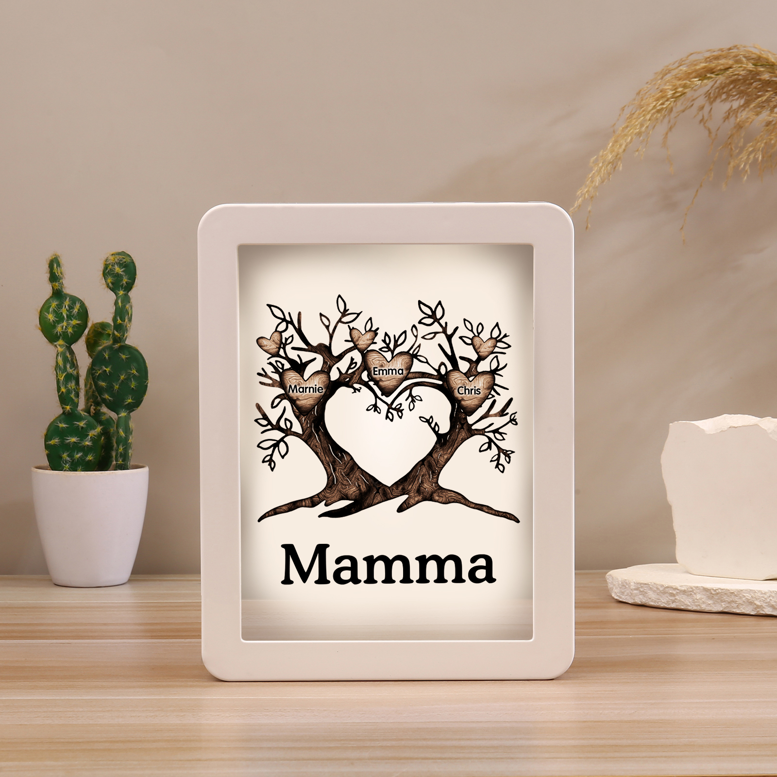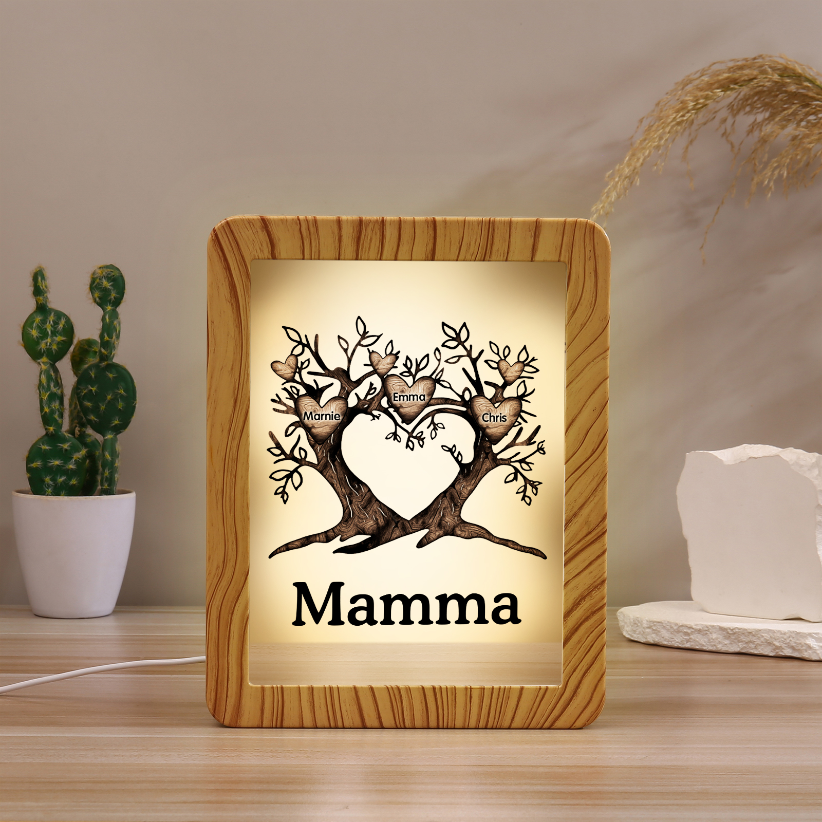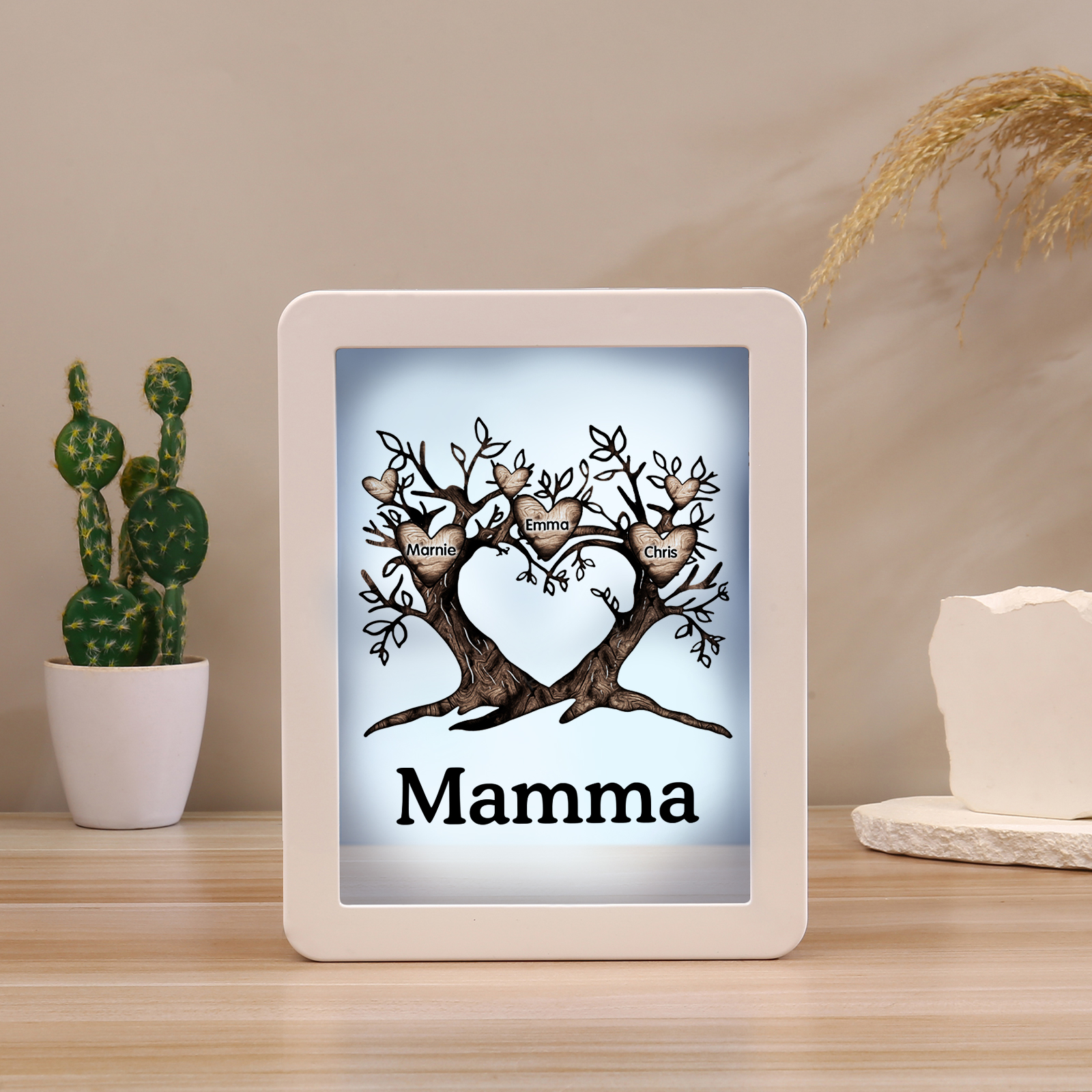 Cornice albero a cuore con LED luce a tre colori 3 nomi e 1 testo personalizzati anche usati come specchio regalo per mamma/nonna