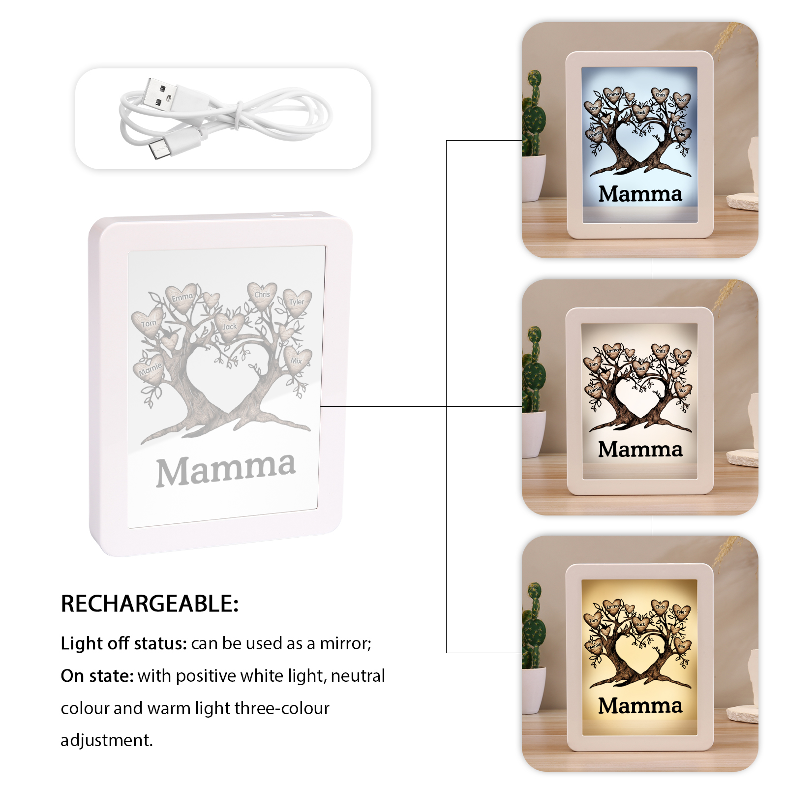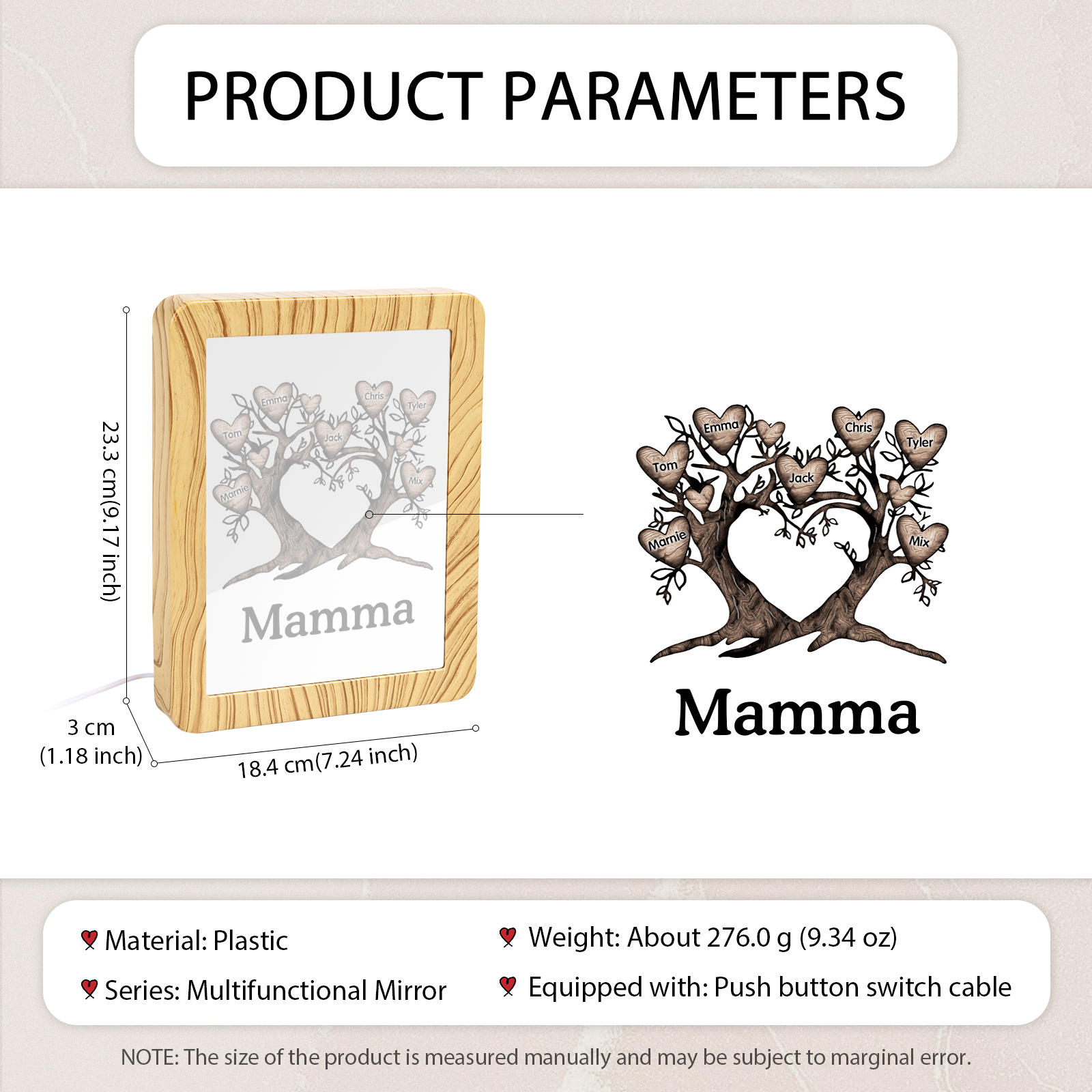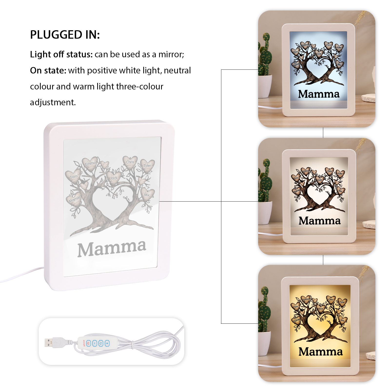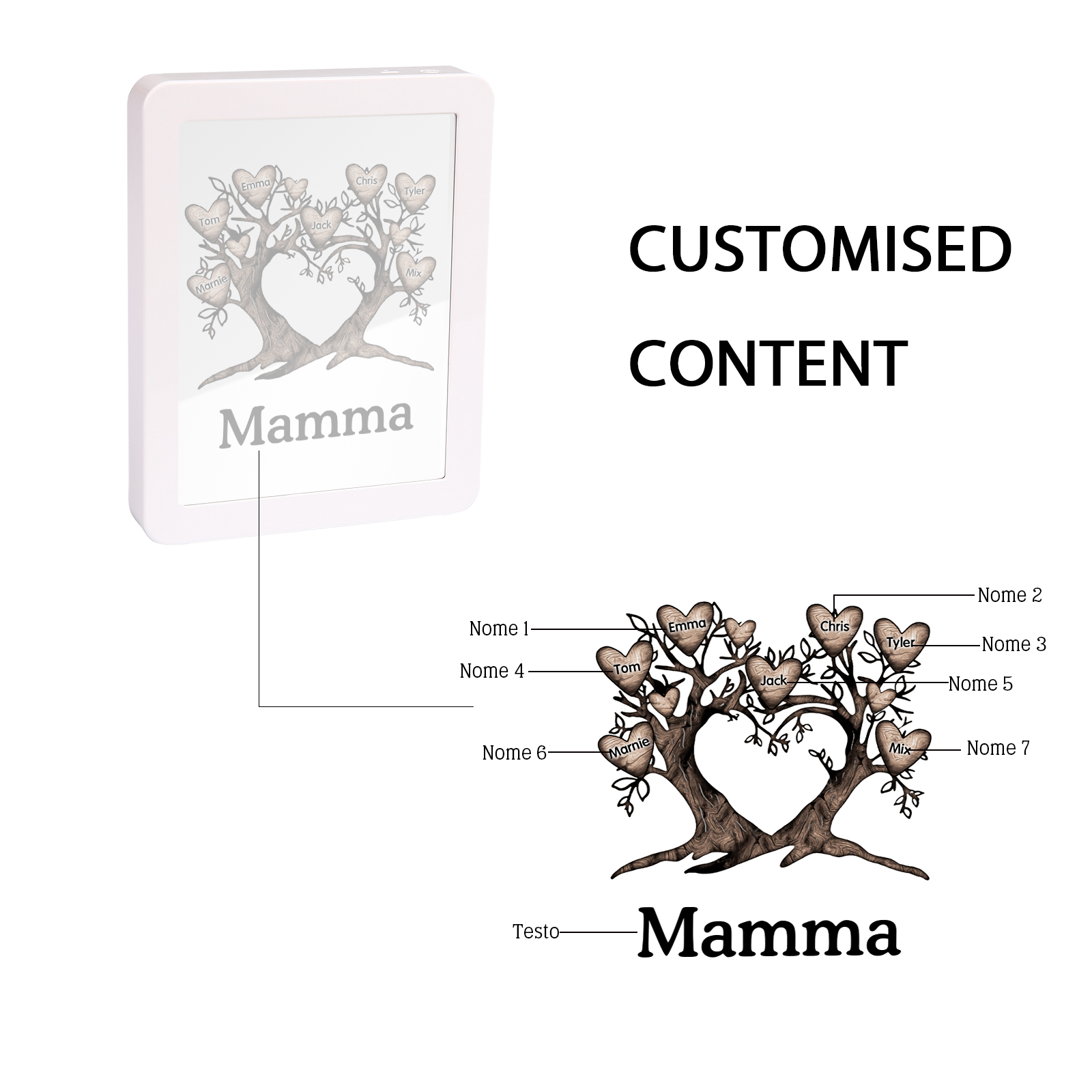 Cornice albero a cuore con LED luce a tre colori 7 nomi e 1 testo personalizzati anche usati come specchio regalo per mamma/nonna