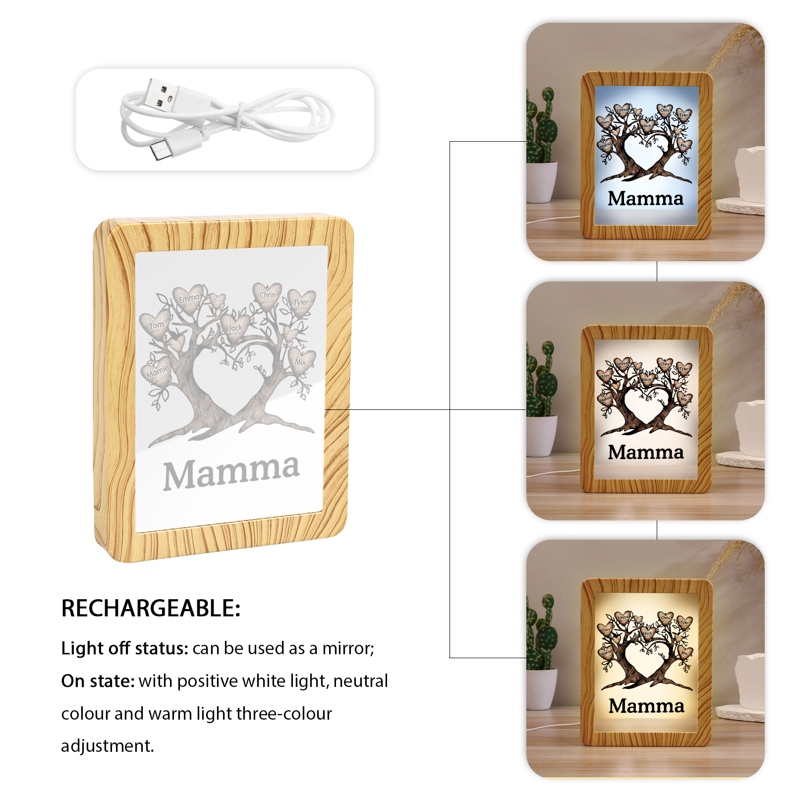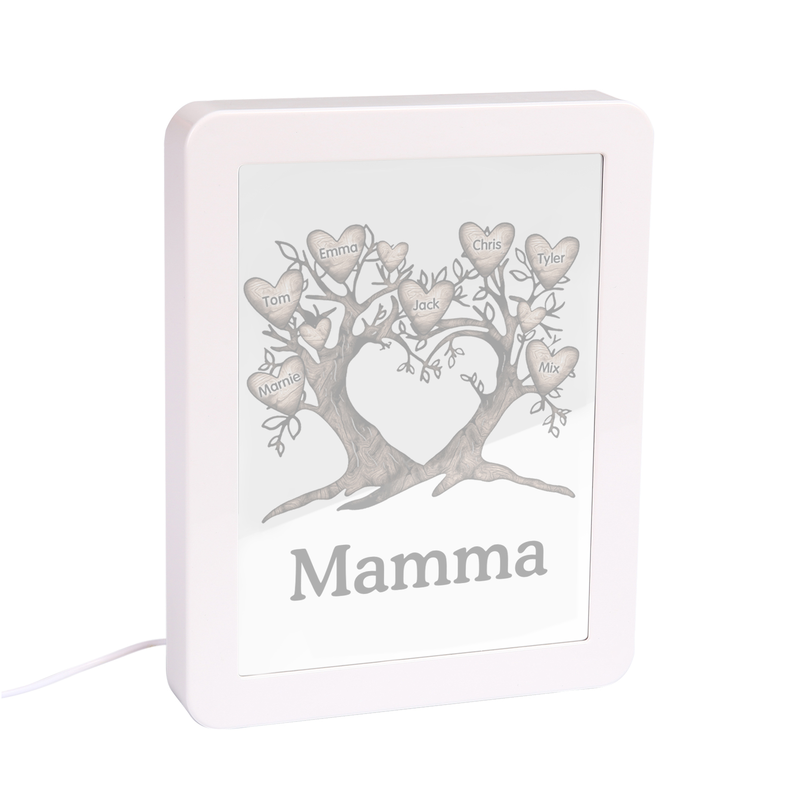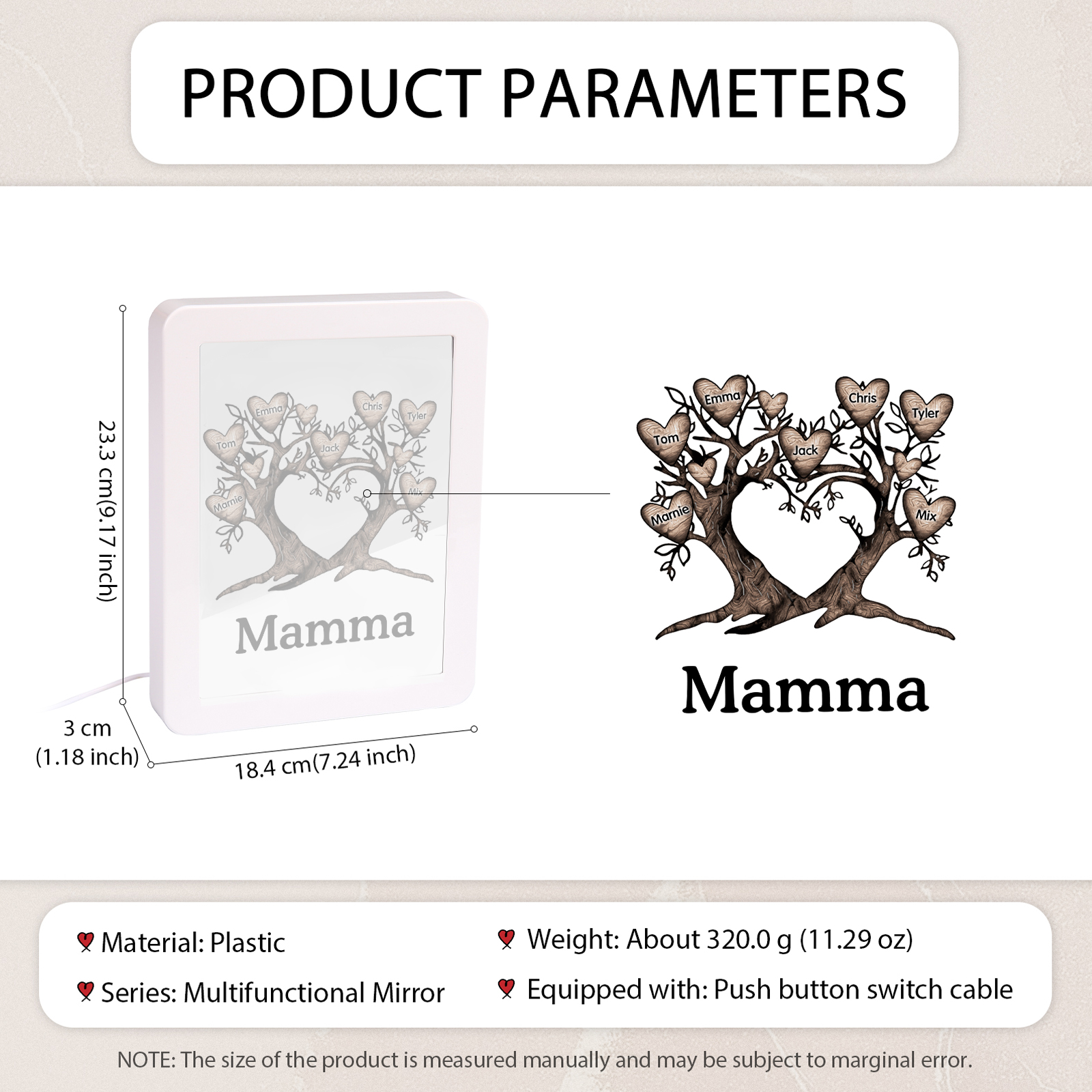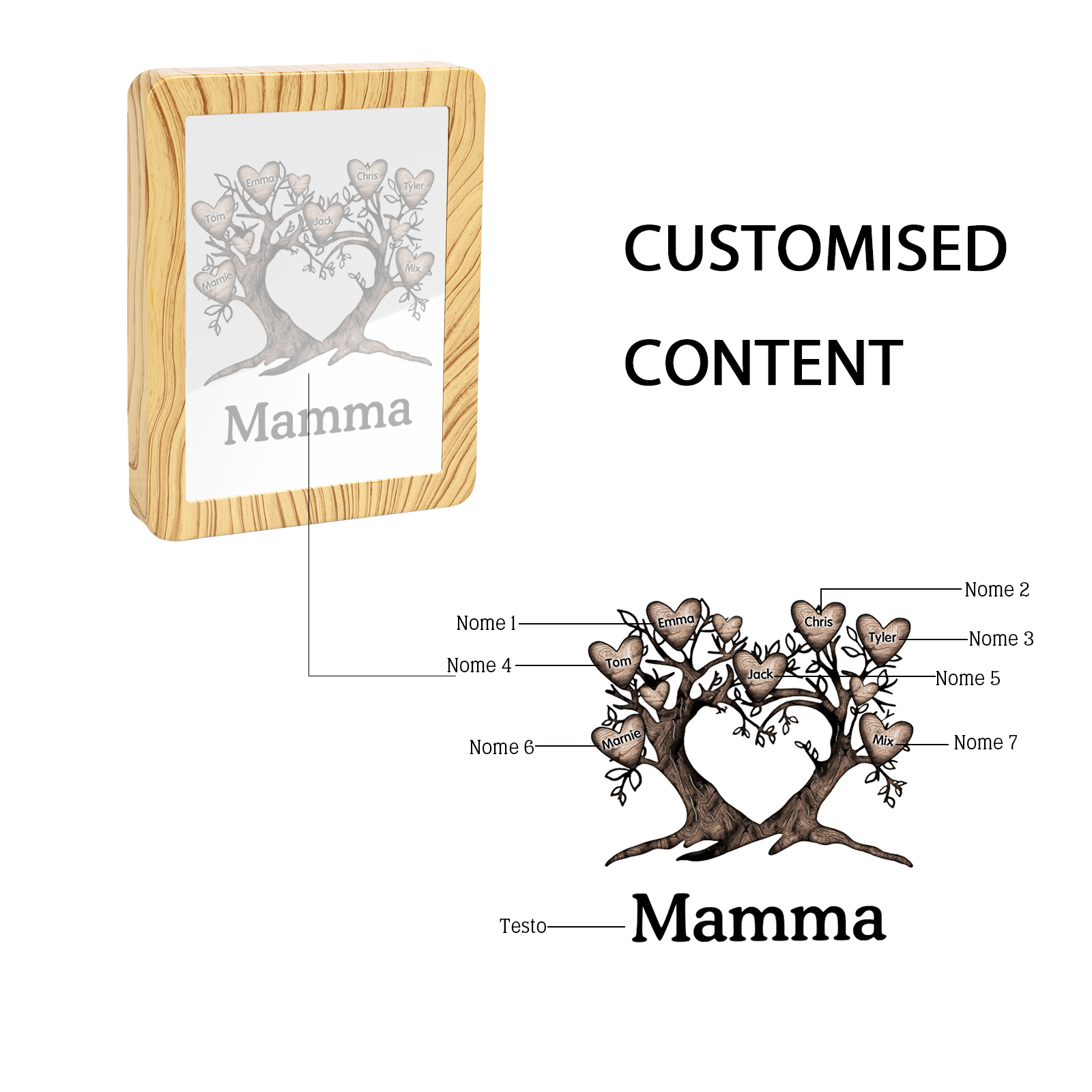 Cornice albero a cuore con LED luce a tre colori 7 nomi e 1 testo personalizzati anche usati come specchio regalo per mamma/nonna