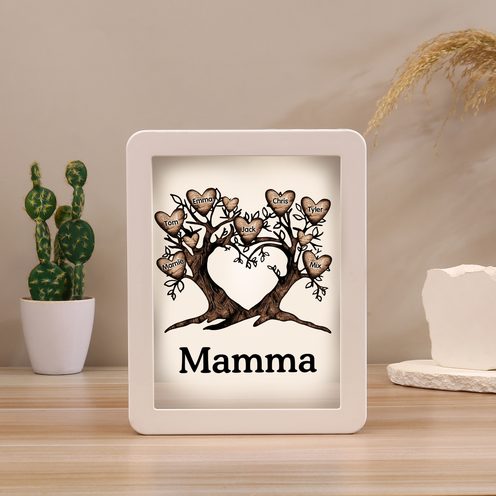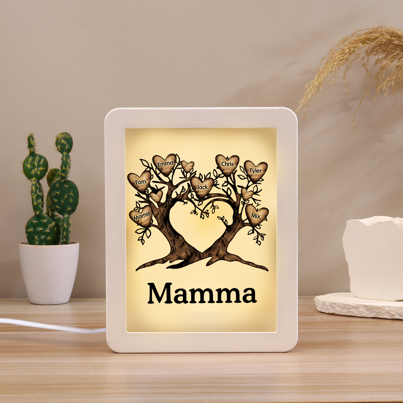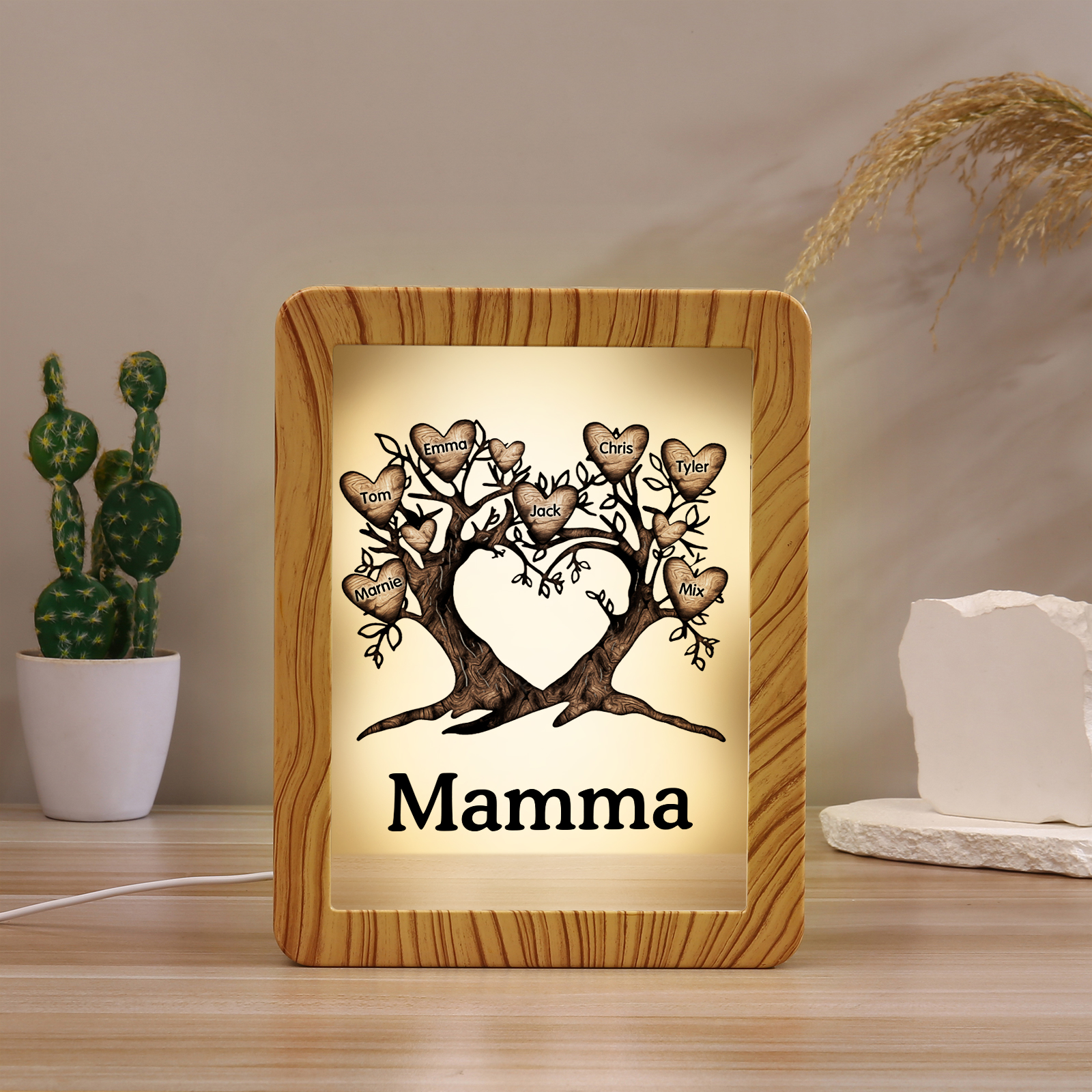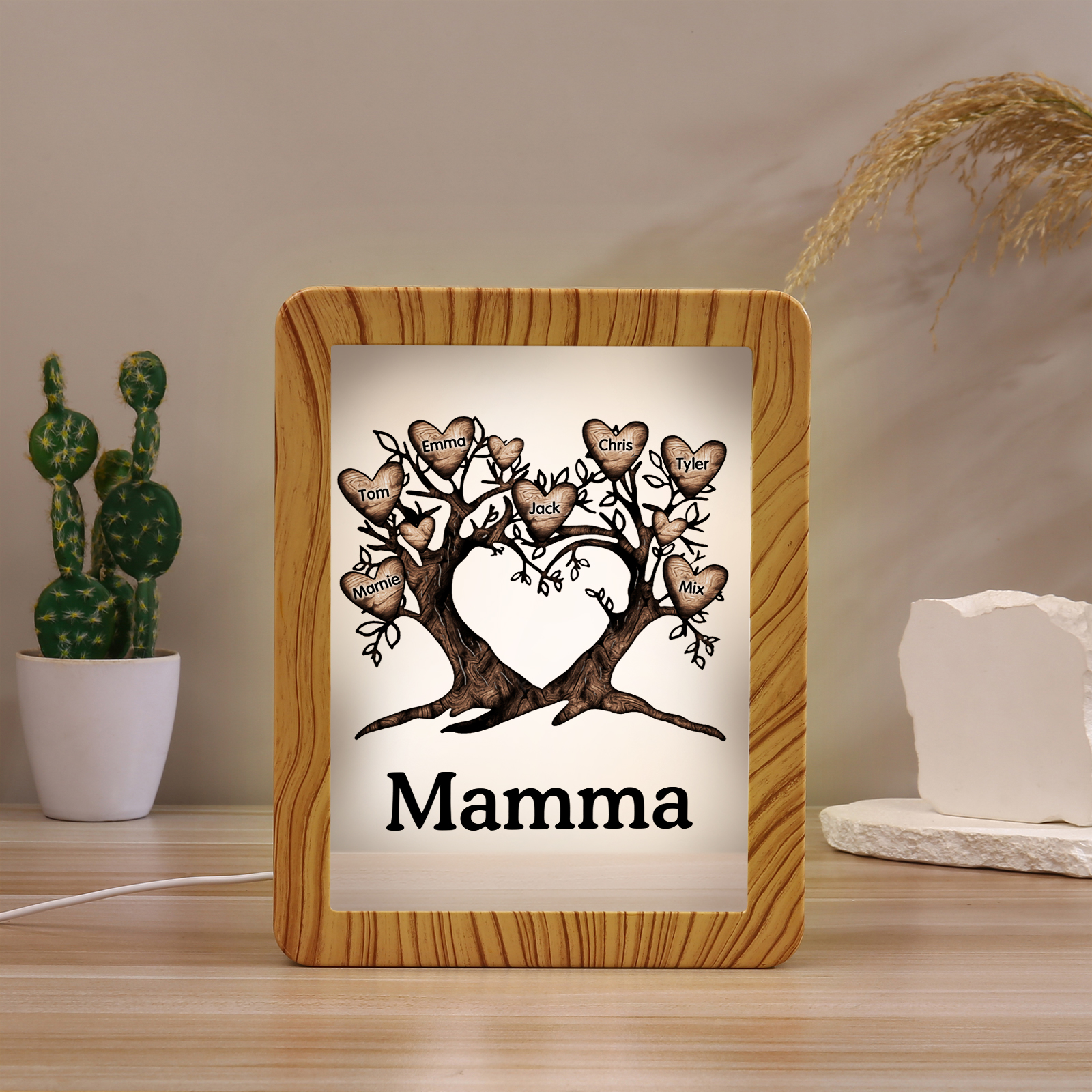 Cornice albero a cuore con LED luce a tre colori 7 nomi e 1 testo personalizzati anche usati come specchio regalo per mamma/nonna