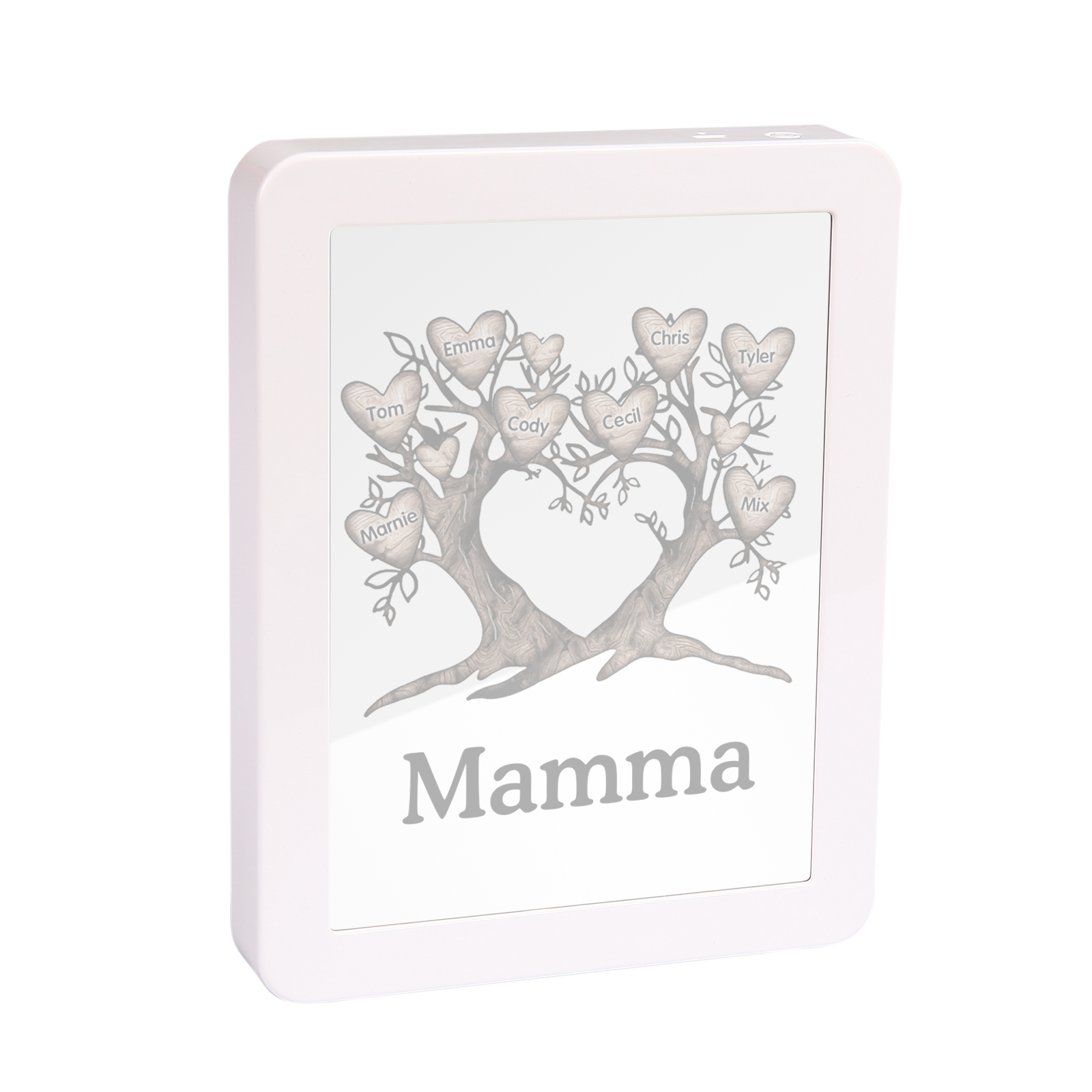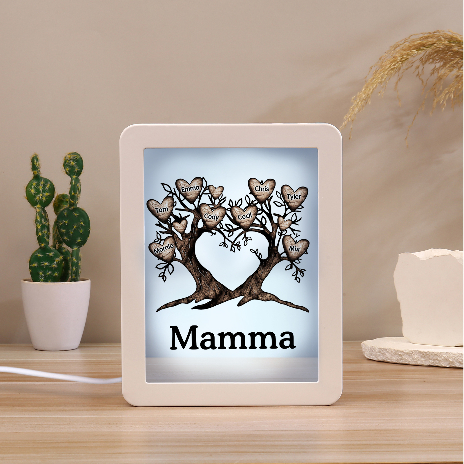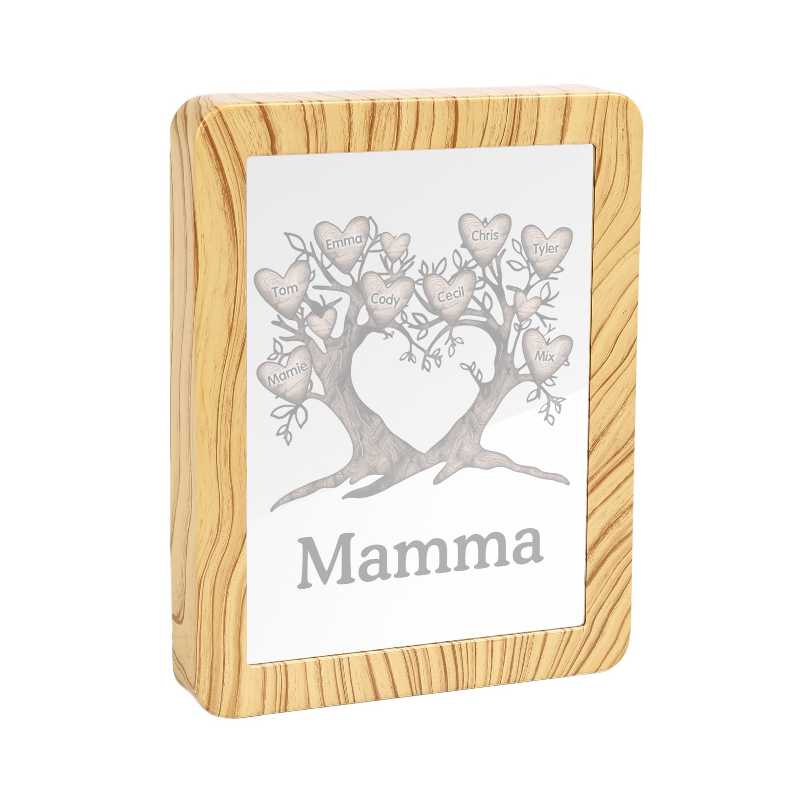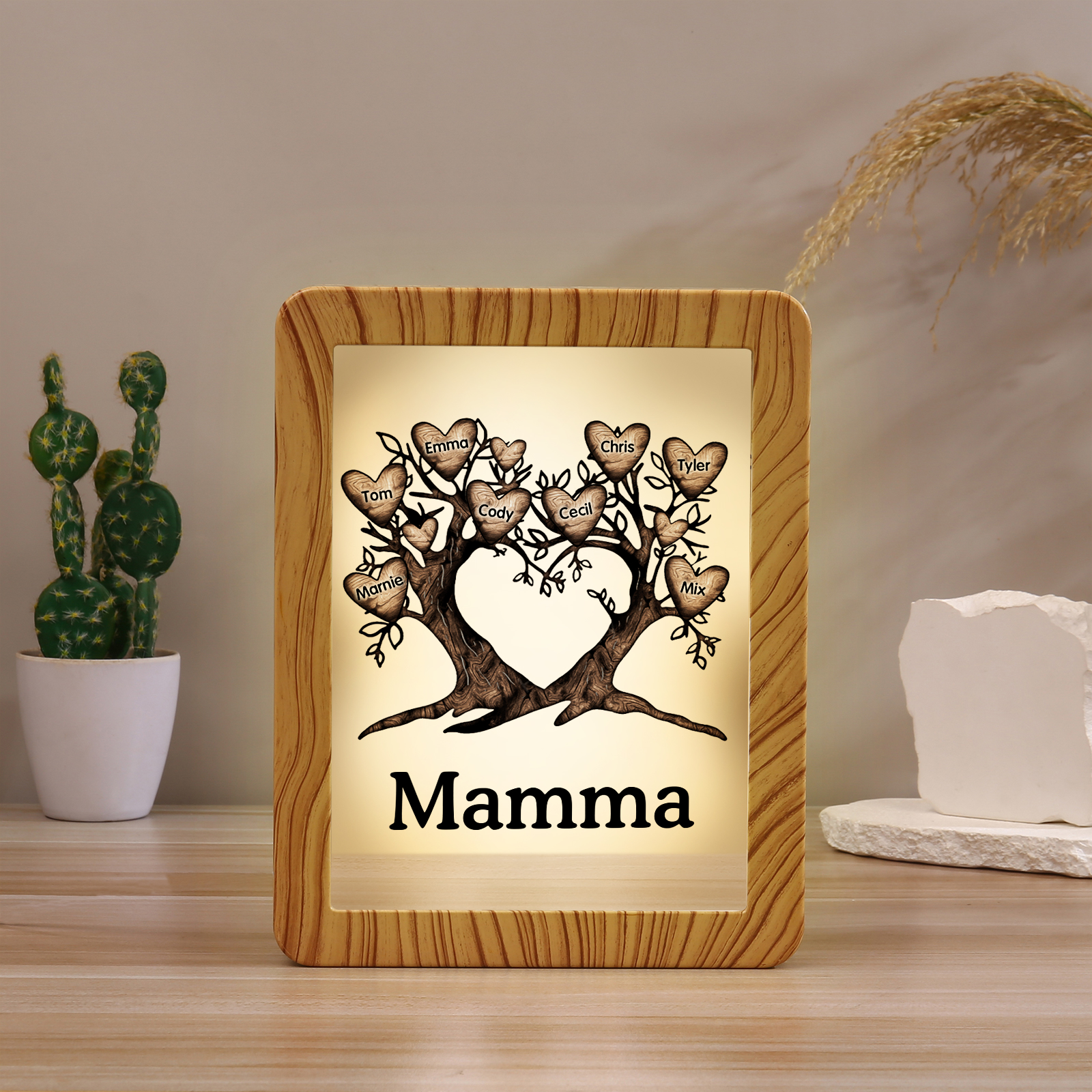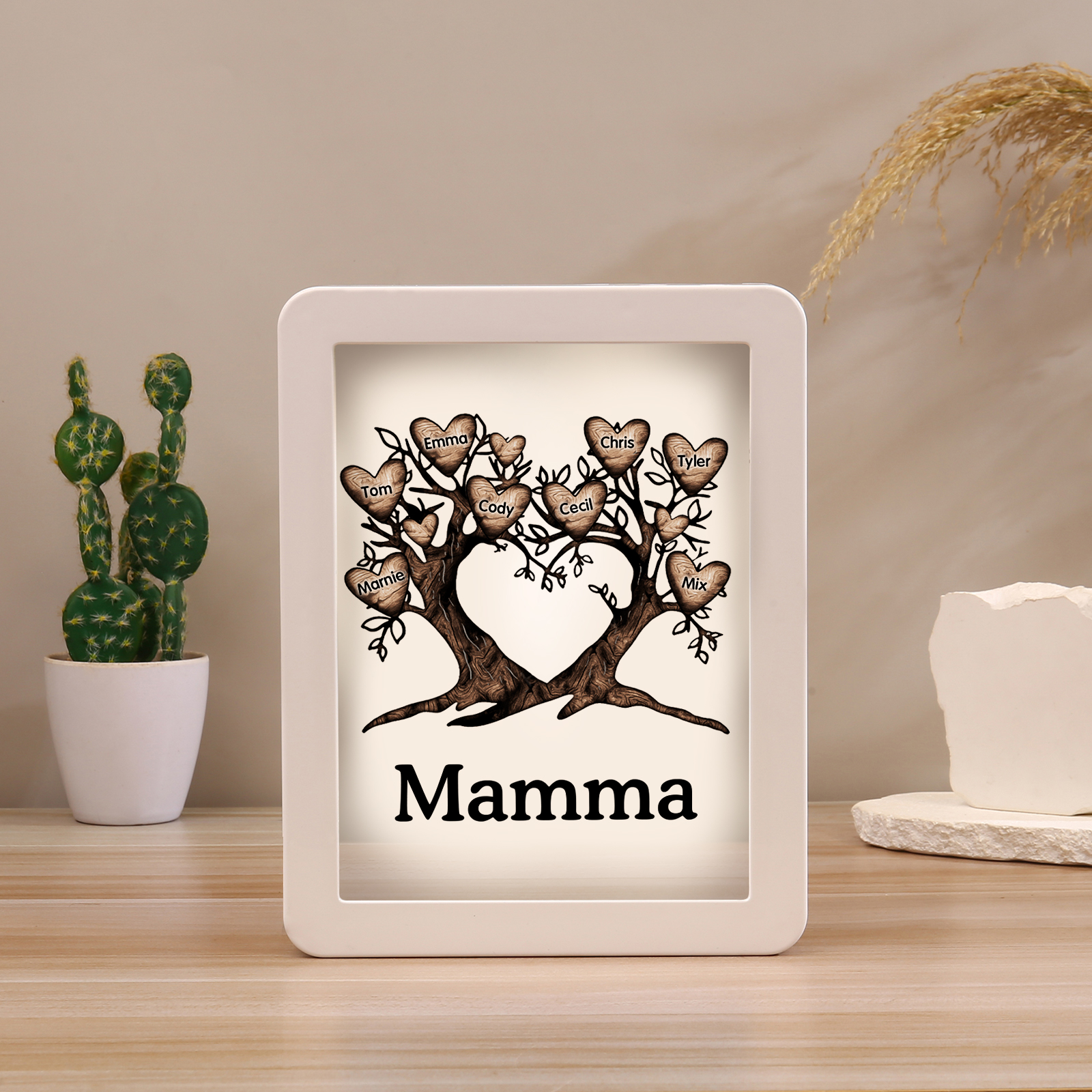 Cornice albero a cuore con LED luce a tre colori 8 nomi e 1 testo personalizzati anche usati come specchio regalo per mamma/nonna
