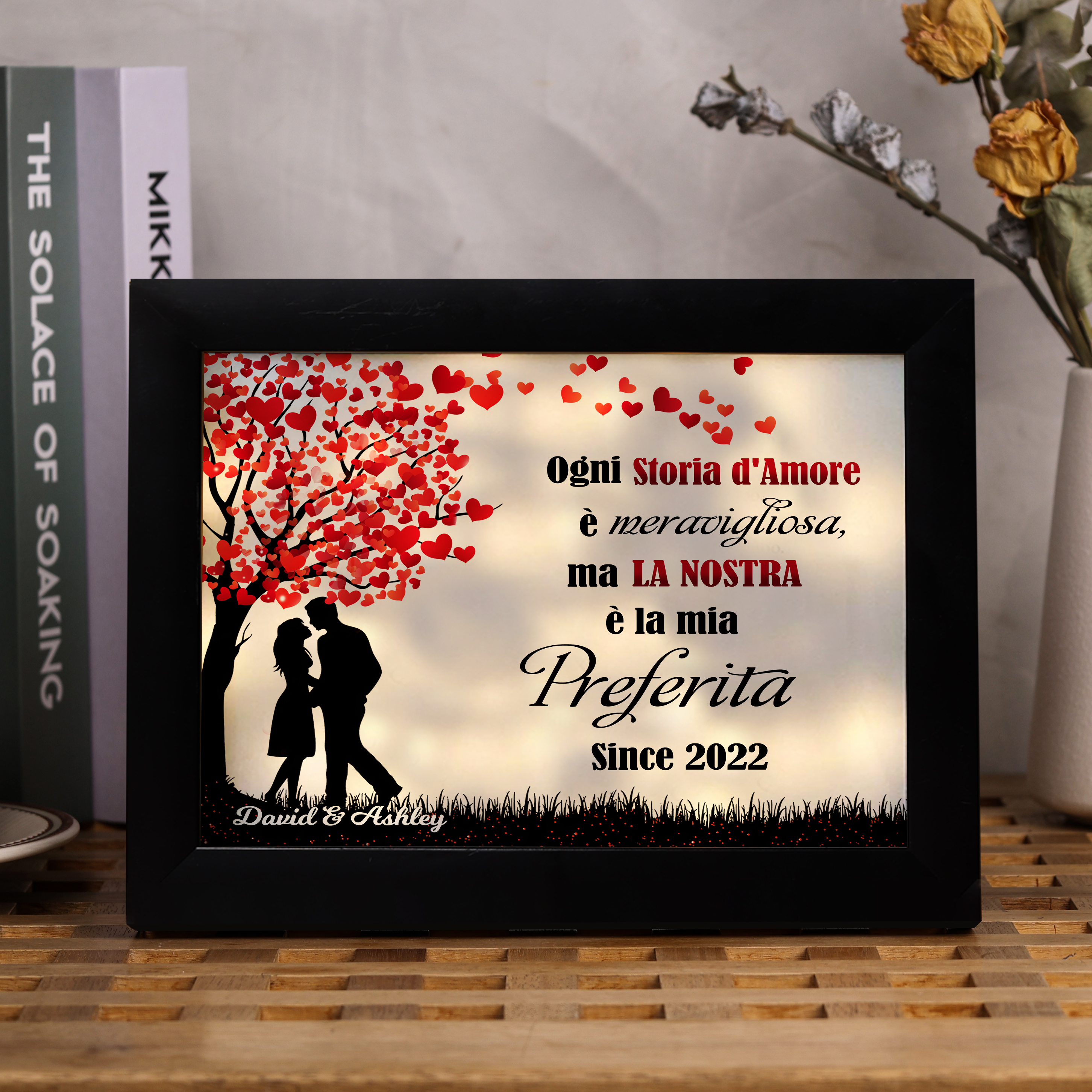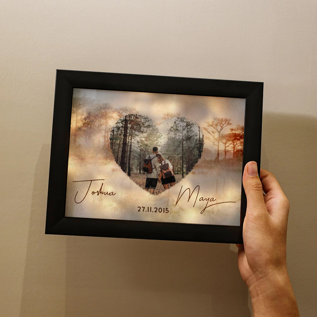 Cornice con luce LED 1 data 2 nomi e 1 foto personalizzati regalo per coppia