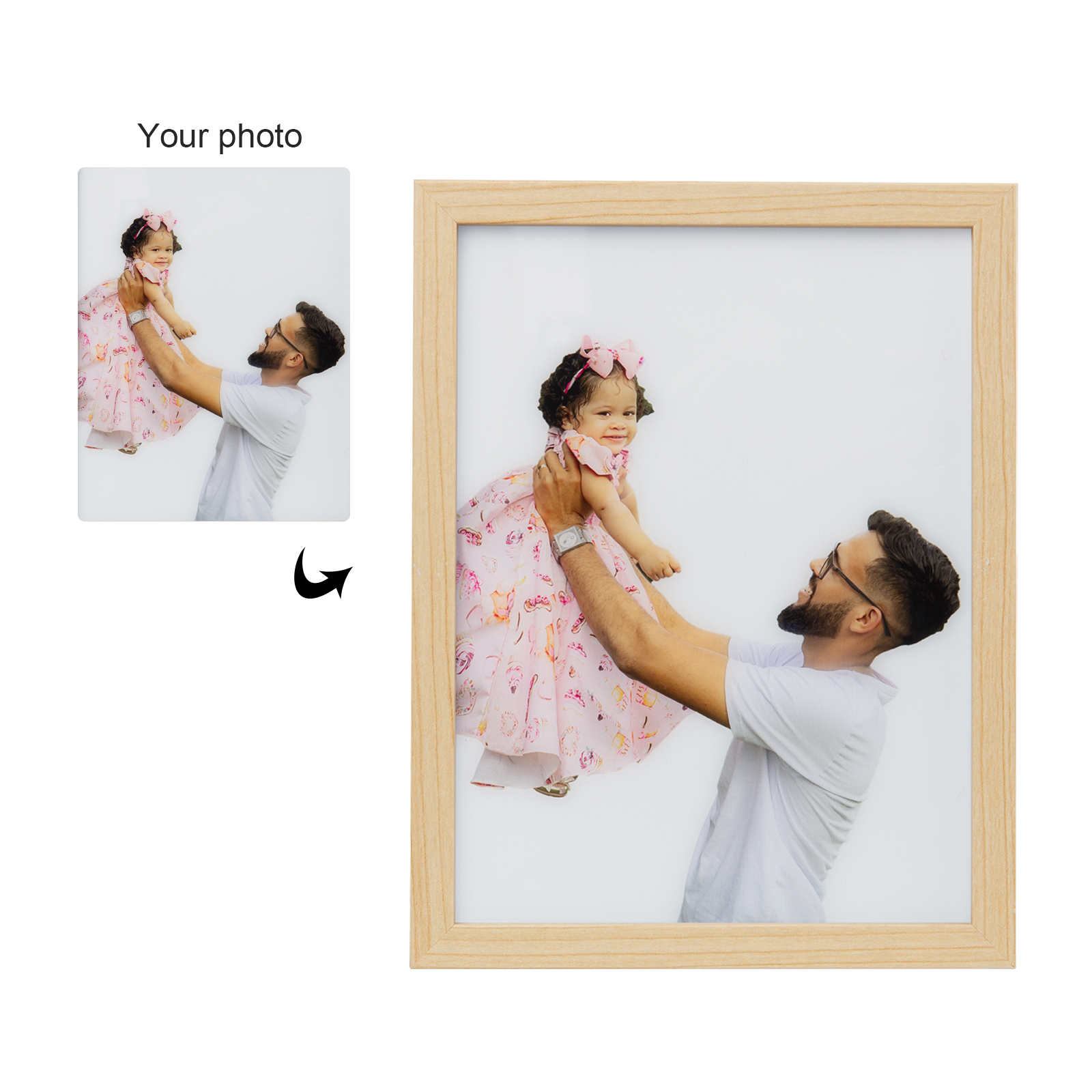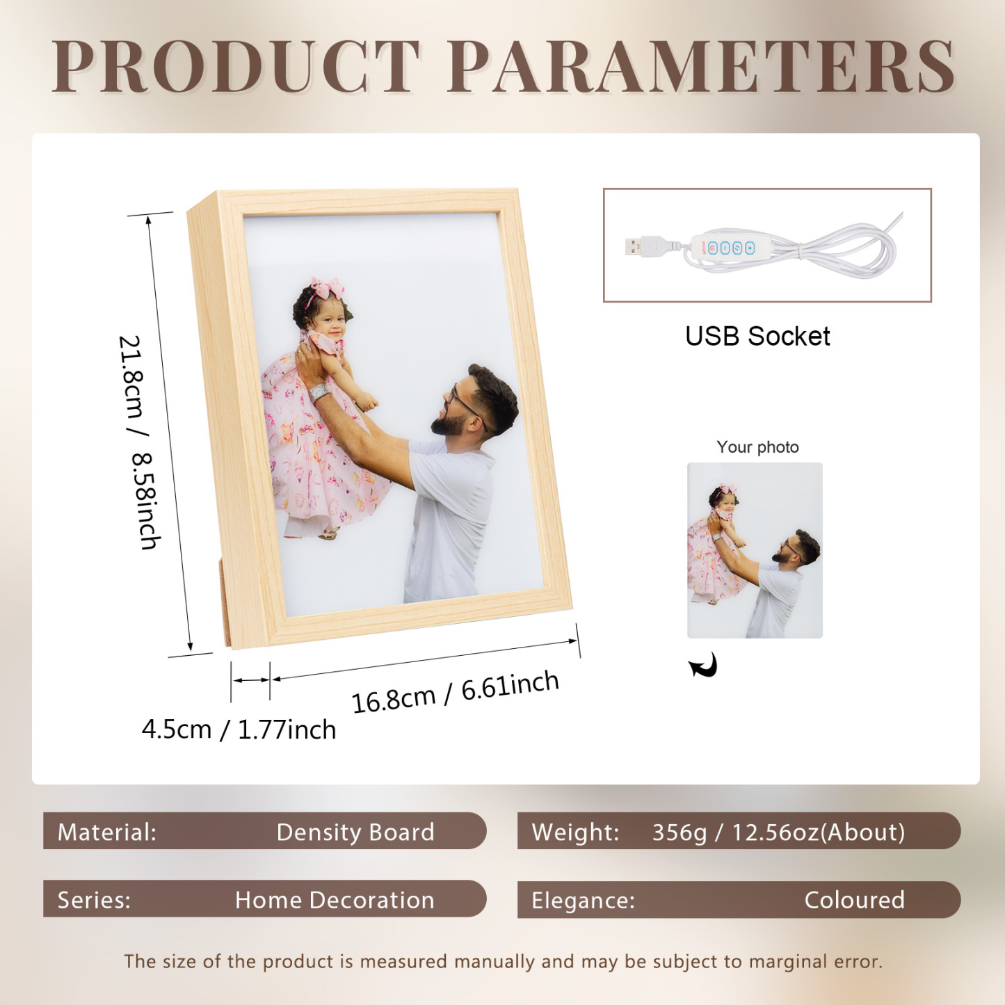 Cornice foto di legno con luce luminosa per notte memoria ricordare bella cosa