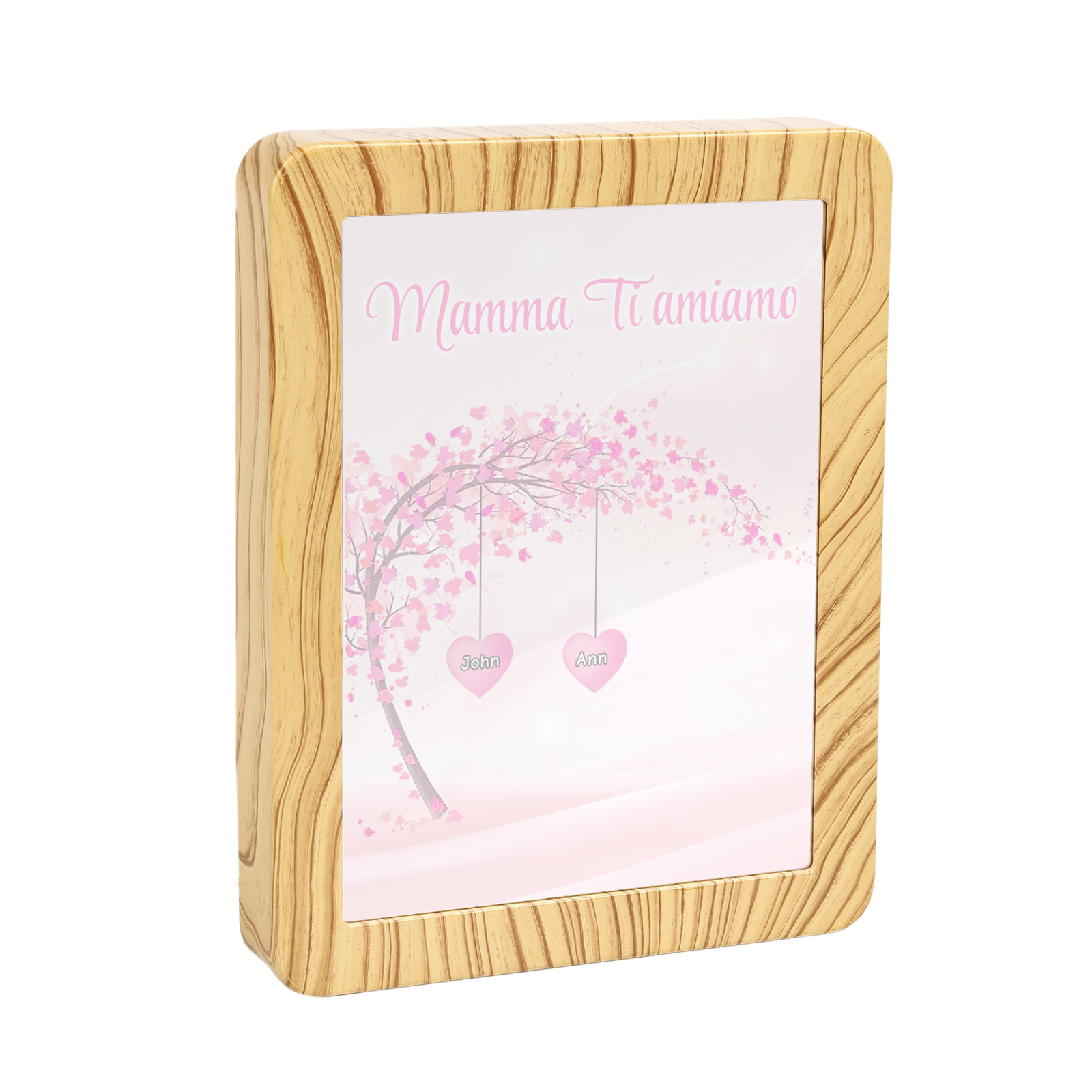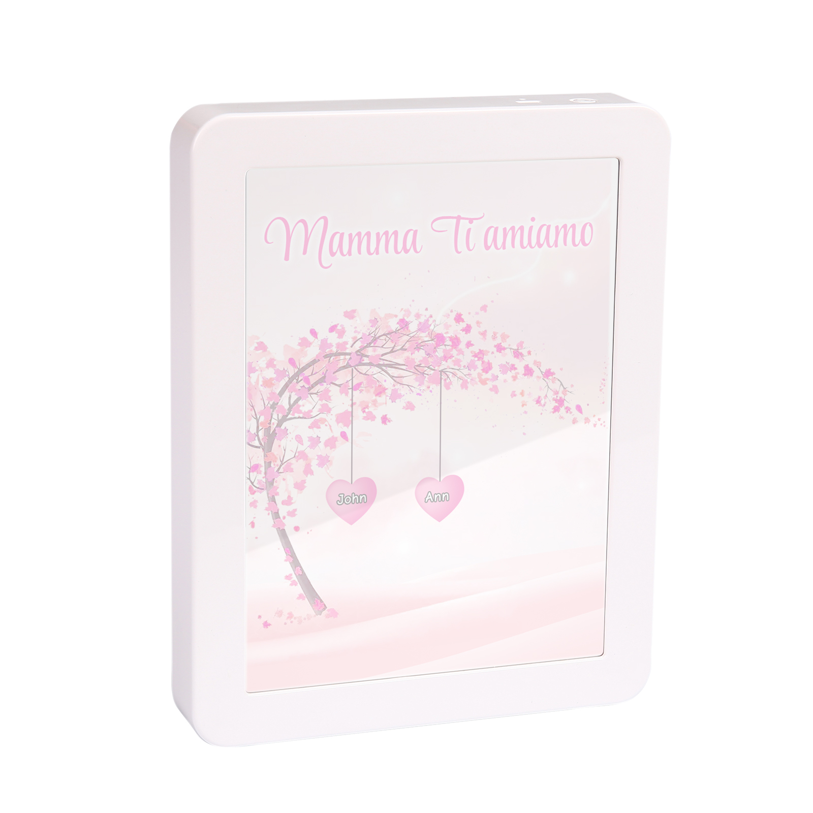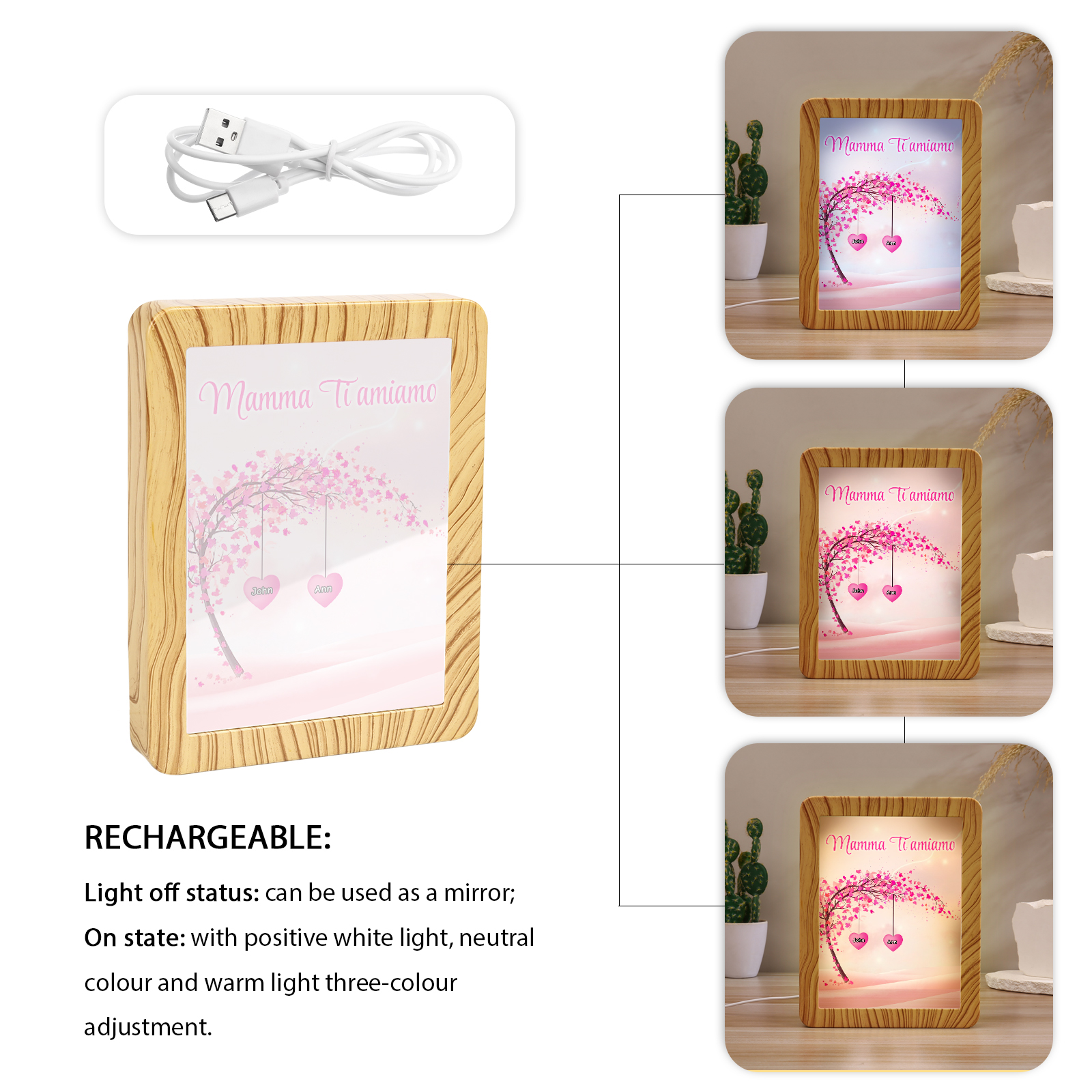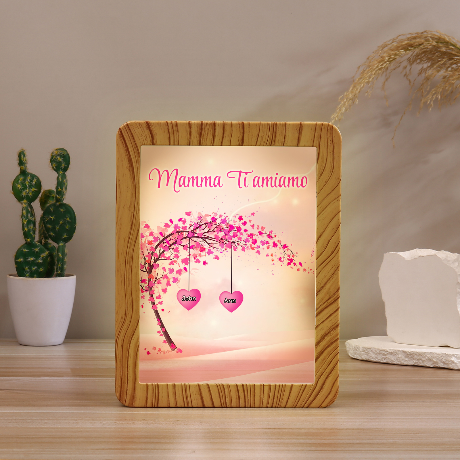 Cornice primavera albero rosa di cuore con LED luce a tre colori 2 nomi e 1 testo personalizzati anche usati come specchio regalo per mamma/nonna