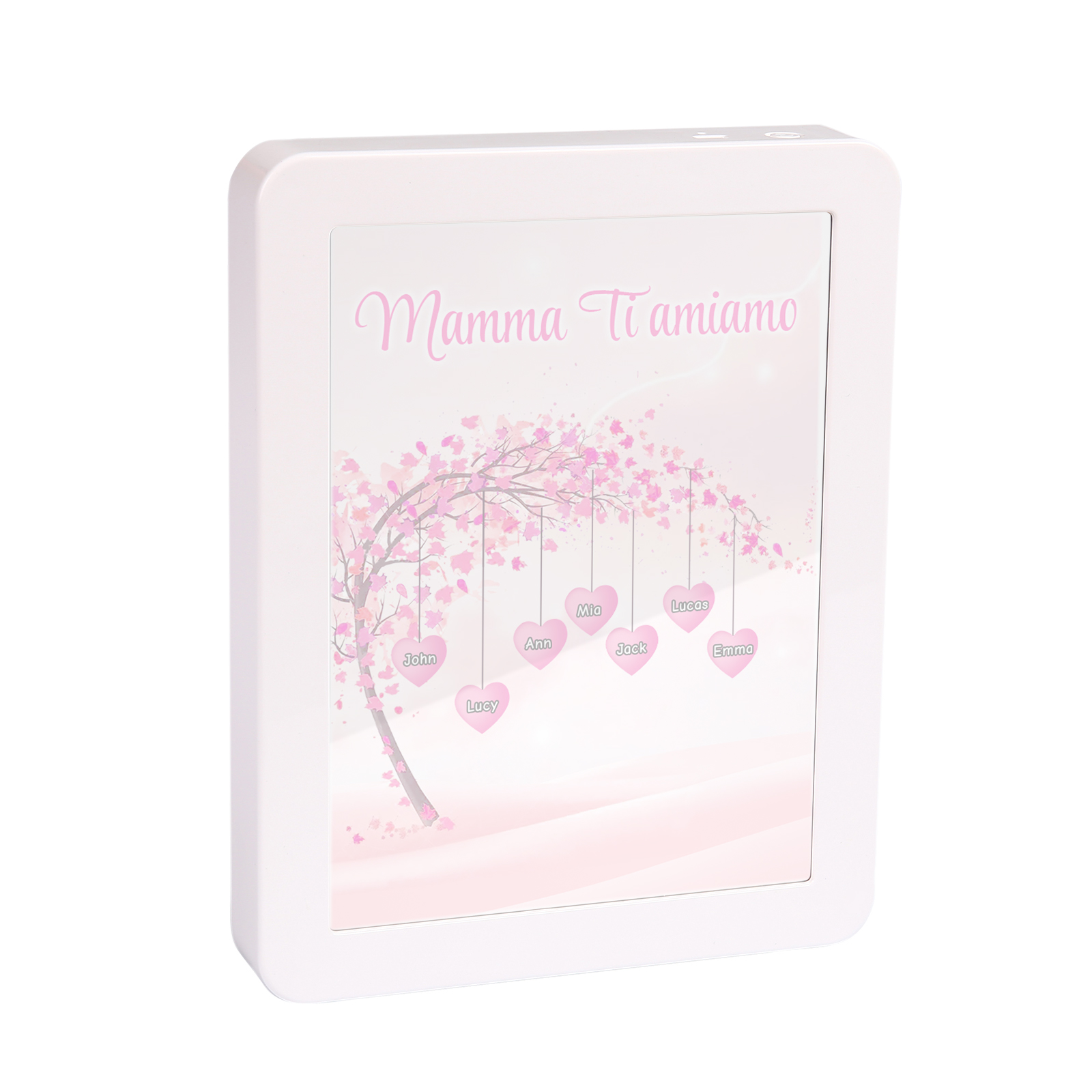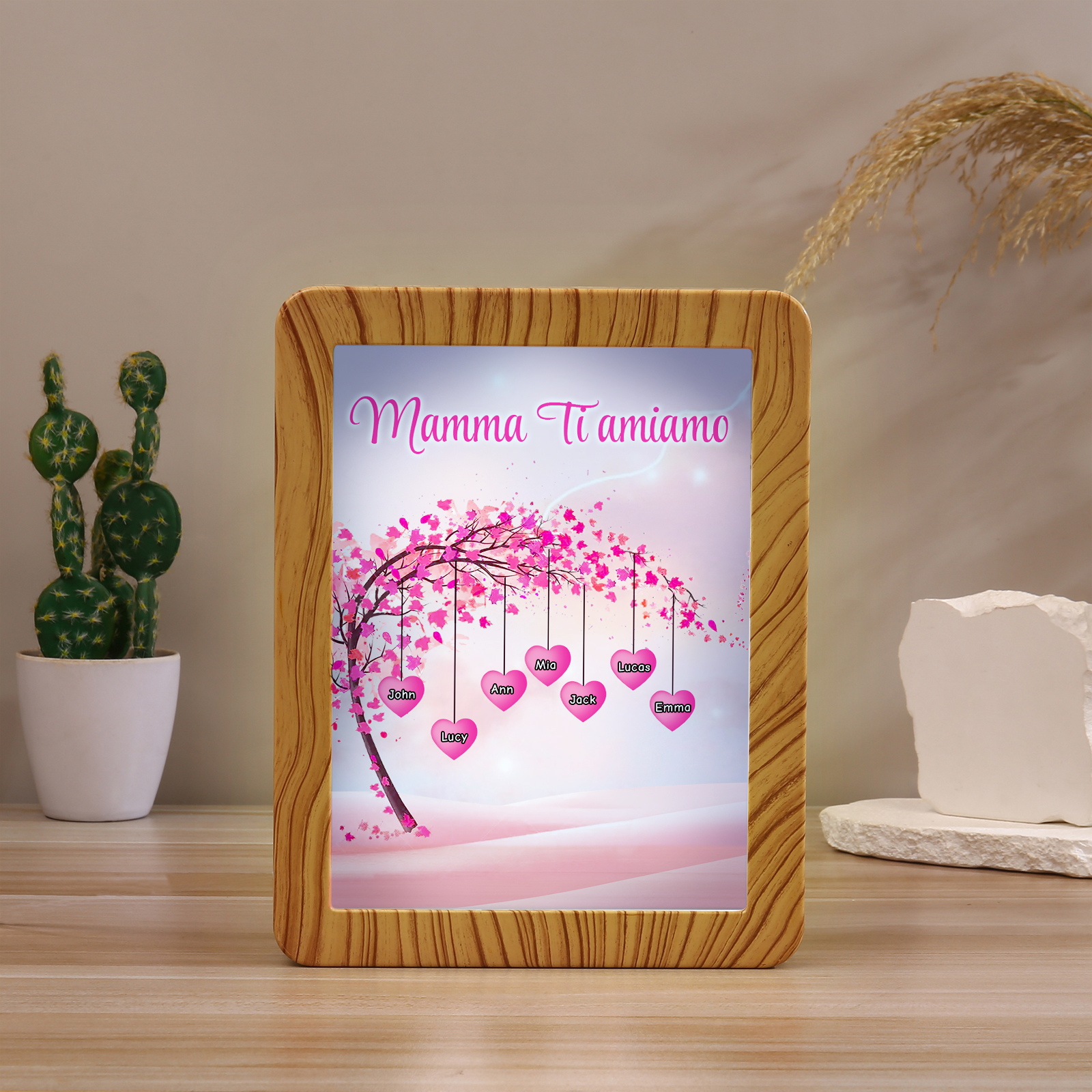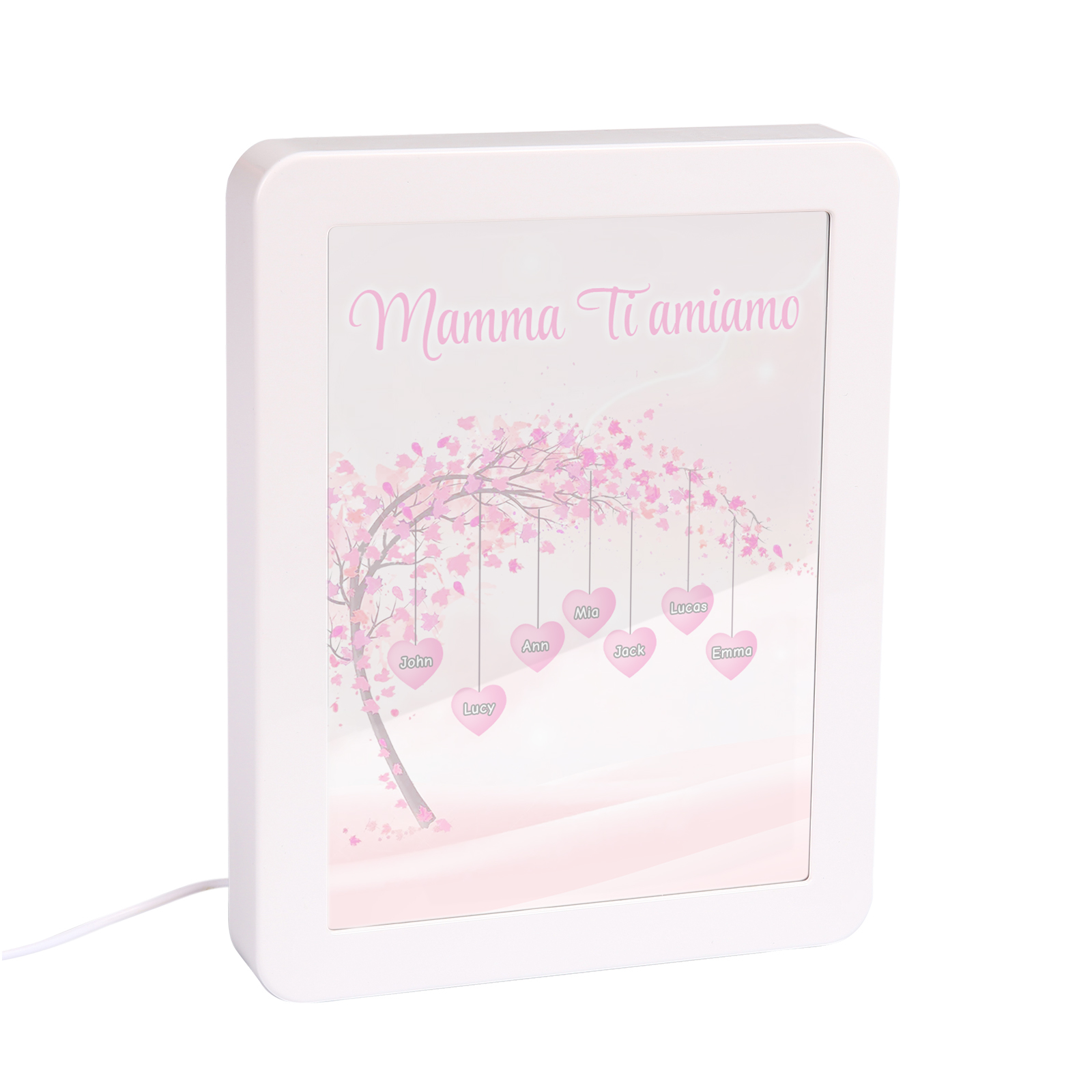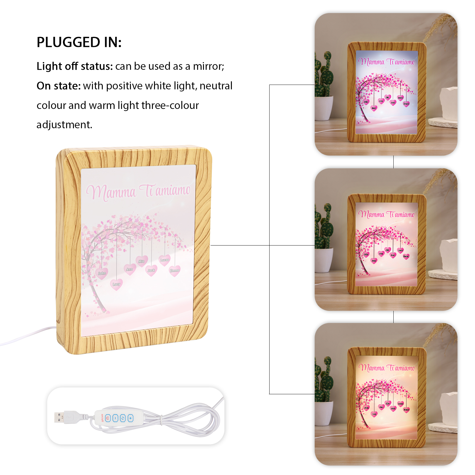 Cornice primavera albero rosa di cuore con LED luce a tre colori 7 nomi e 1 testo personalizzati anche usati come specchio regalo per mamma/nonna