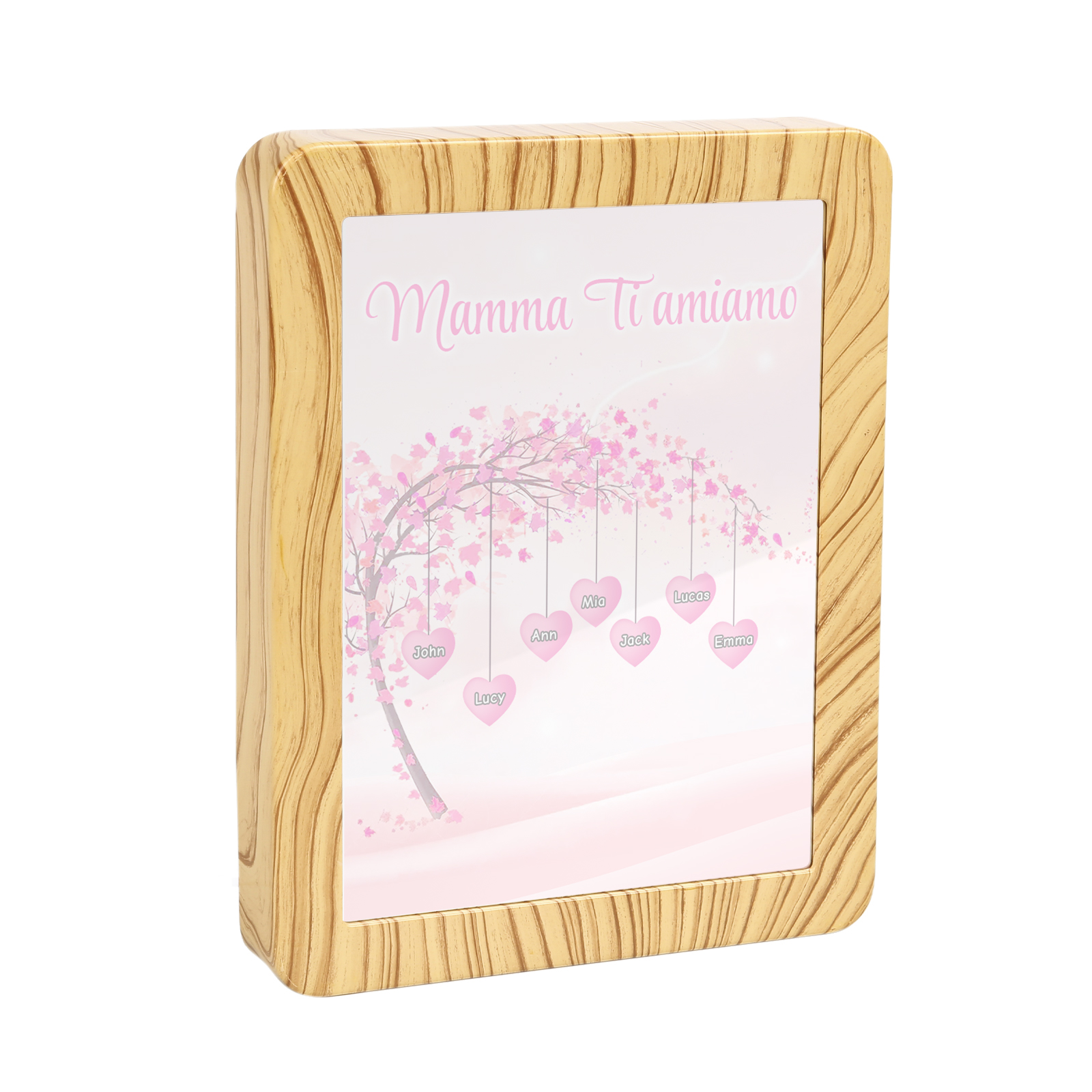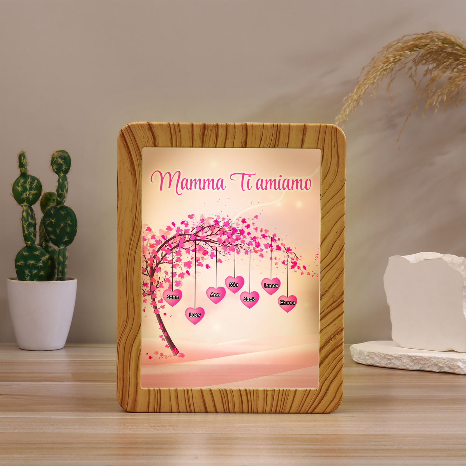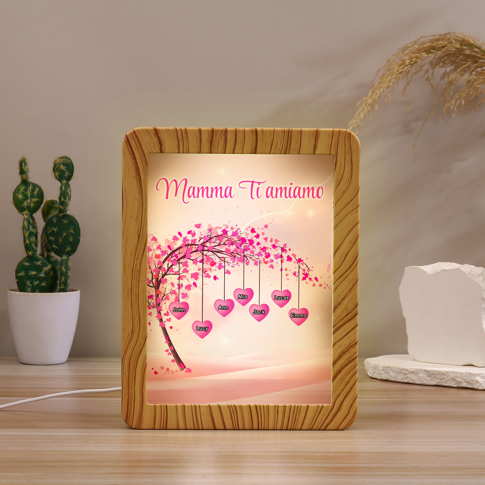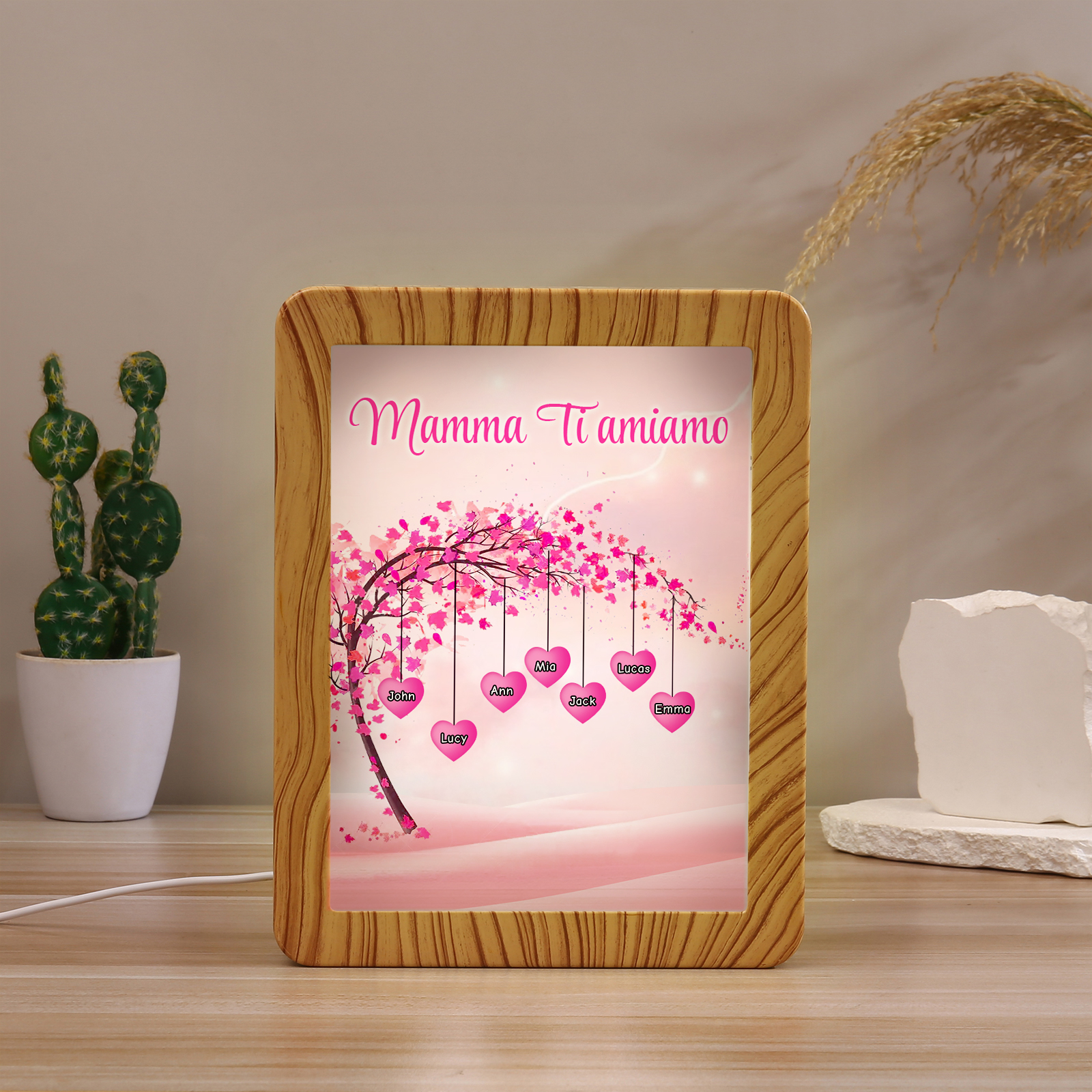 Cornice primavera albero rosa di cuore con LED luce a tre colori 7 nomi e 1 testo personalizzati anche usati come specchio regalo per mamma/nonna