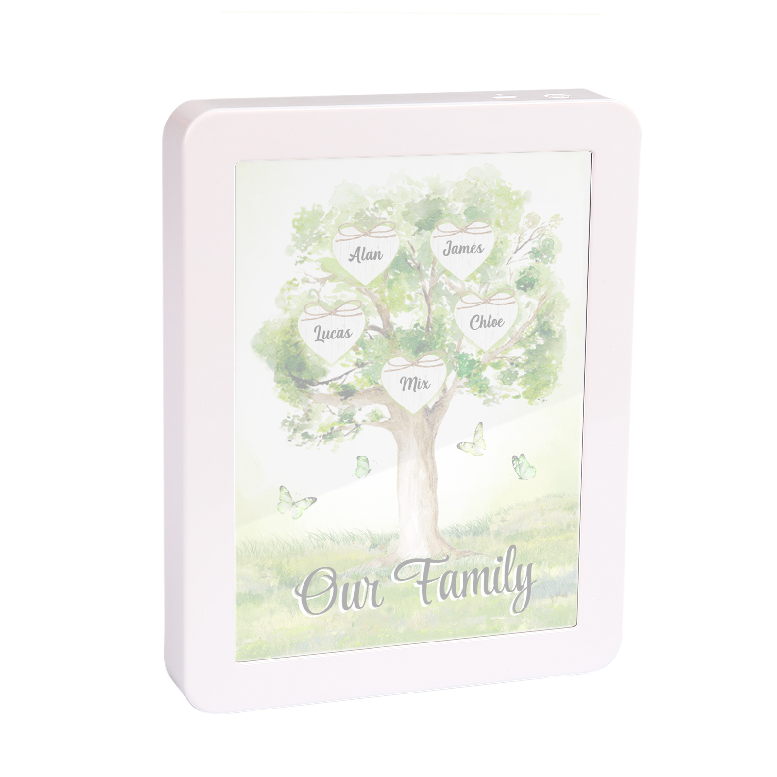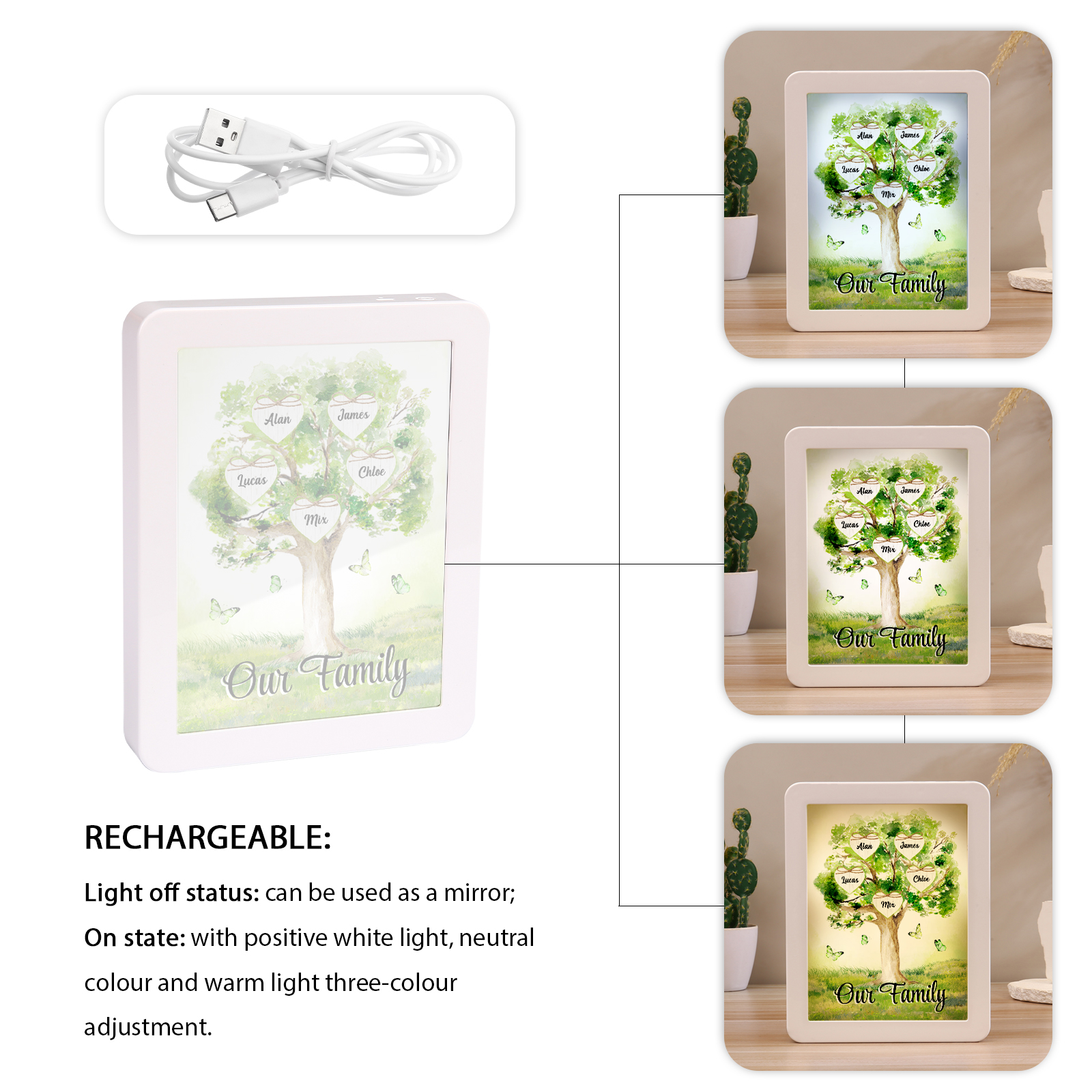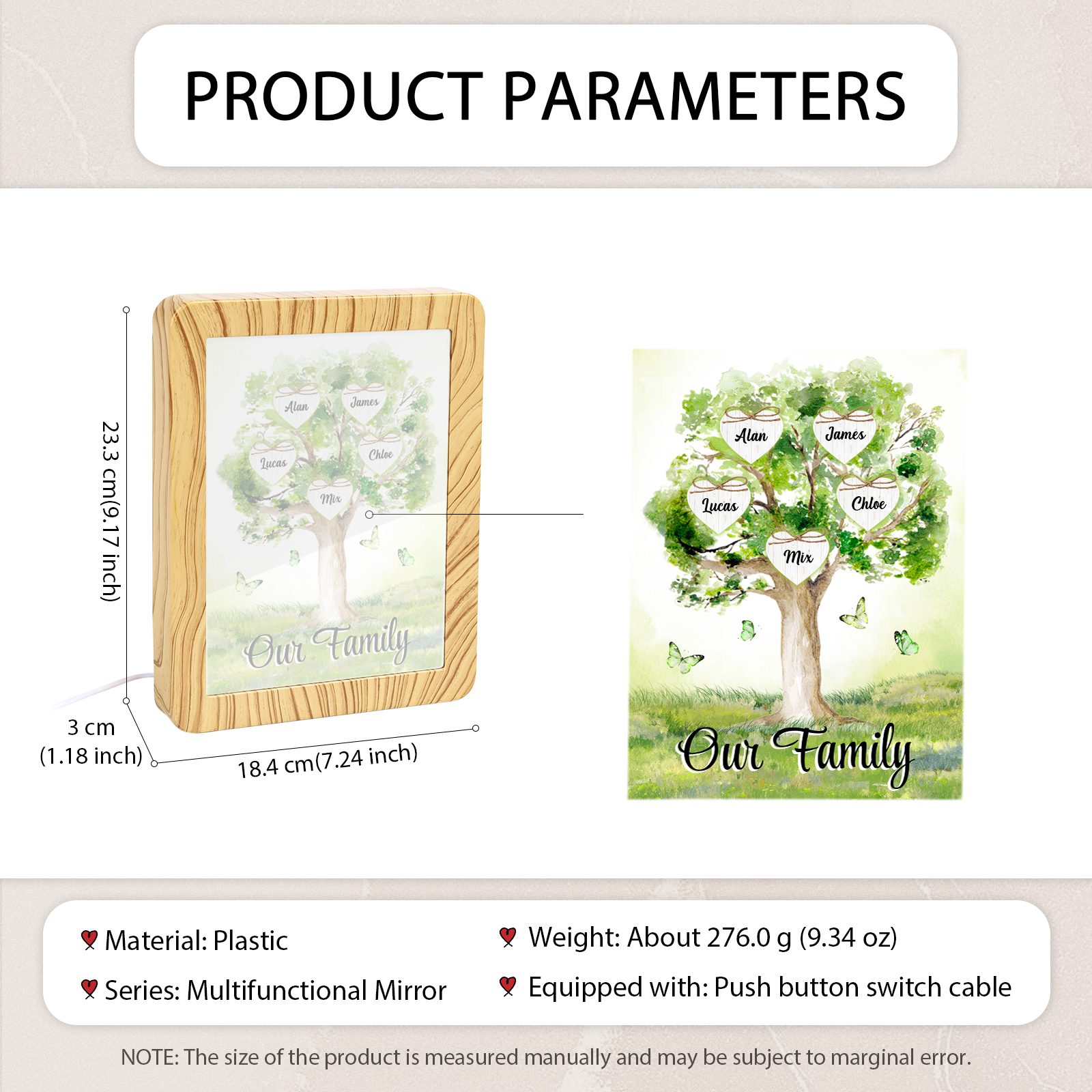 Cornice primavera albero verde di cuore con LED luce a tre colori 5 nomi e 1 testo personalizzati anche usato come specchio regalo per mamma/nonna
