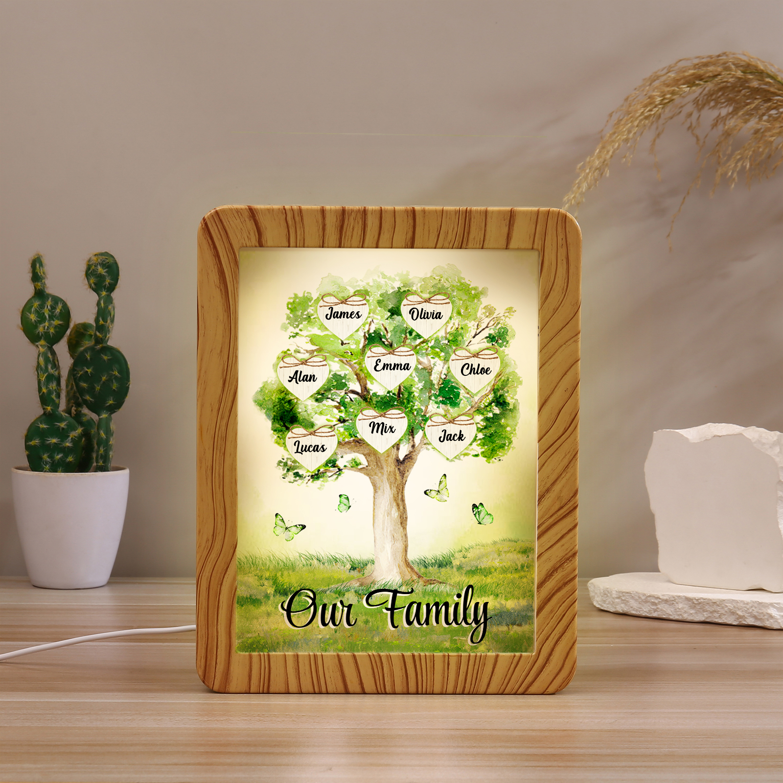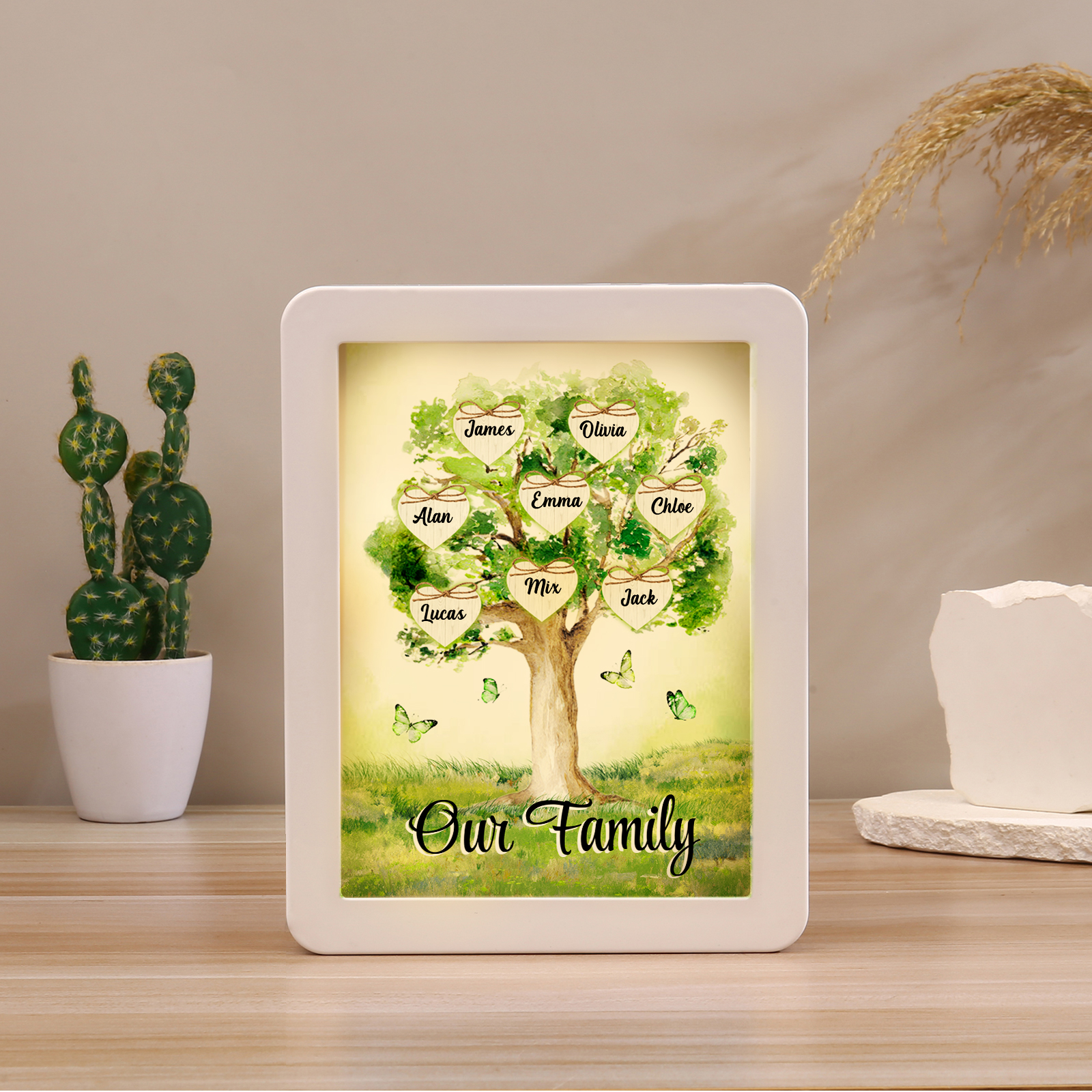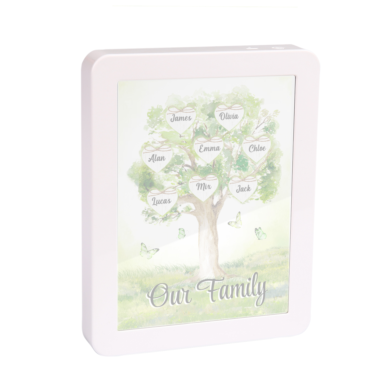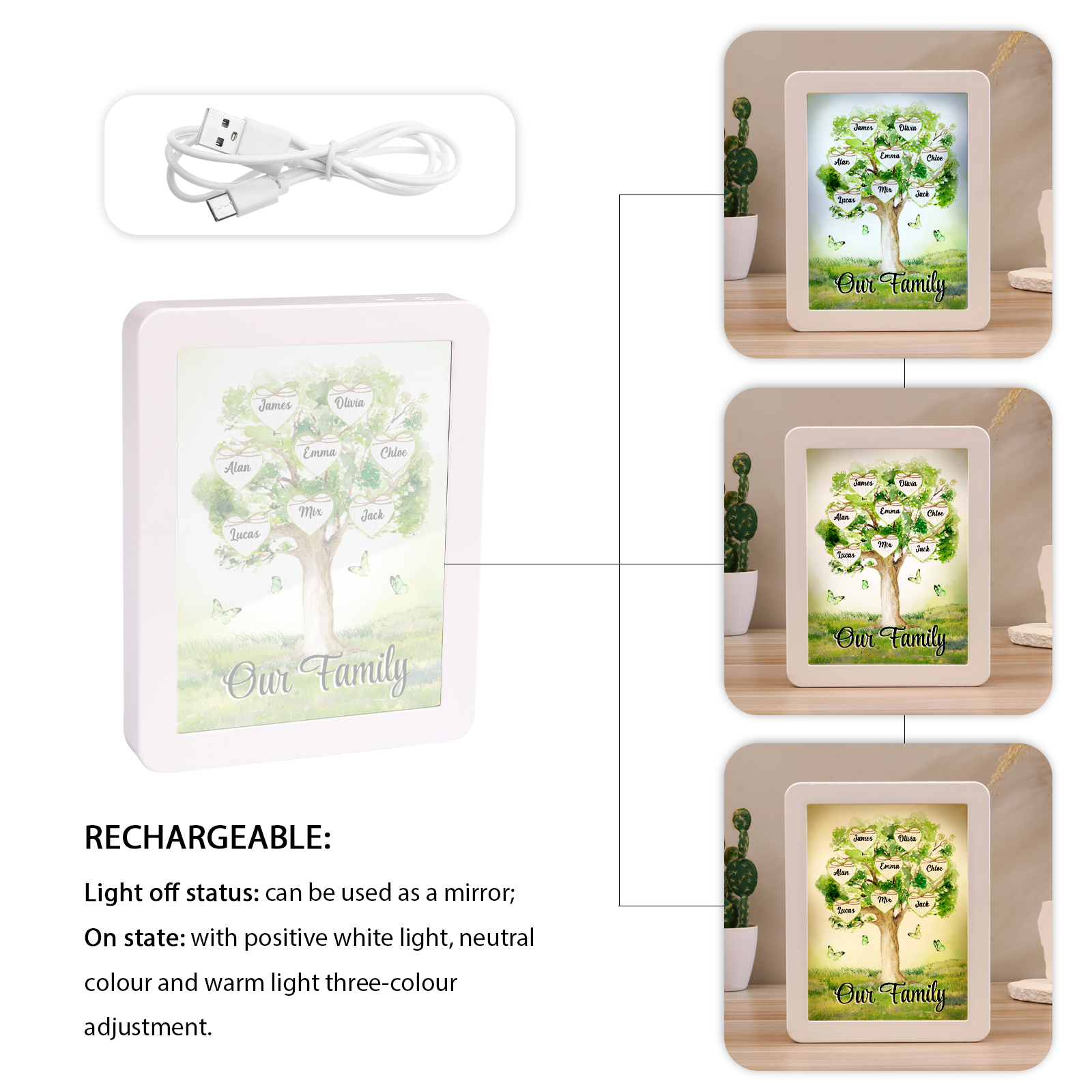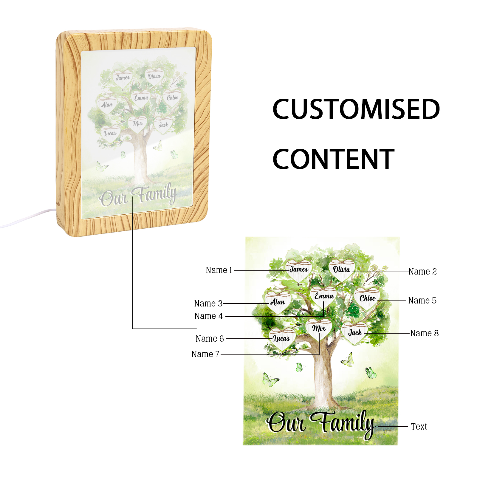 Cornice primavera albero verde di cuore con LED luce a tre colori 8 nomi e 1 testo personalizzati anche usato come specchio regalo per mamma/nonna