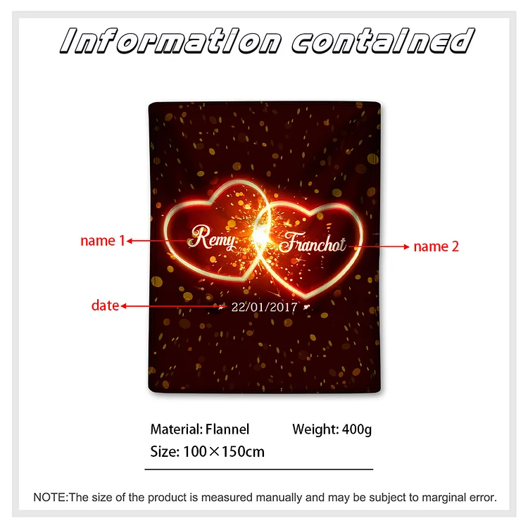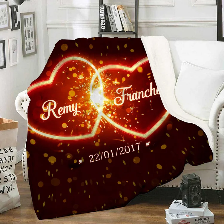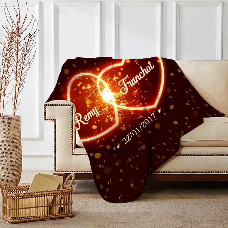 Cuore in fiamme coperta per coppia personalizzabili 2 nomi e 1 data A stile