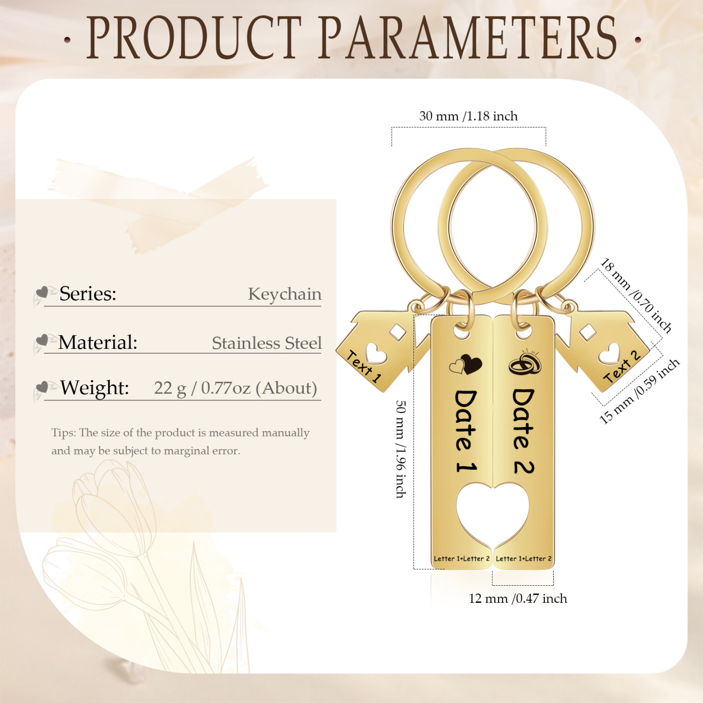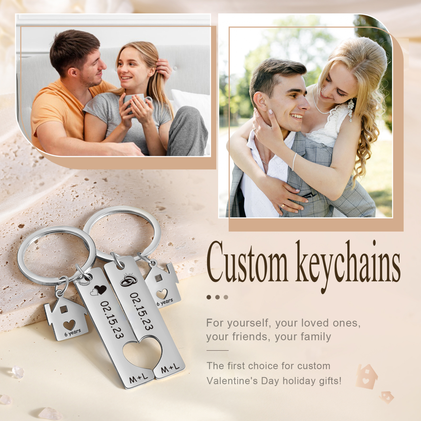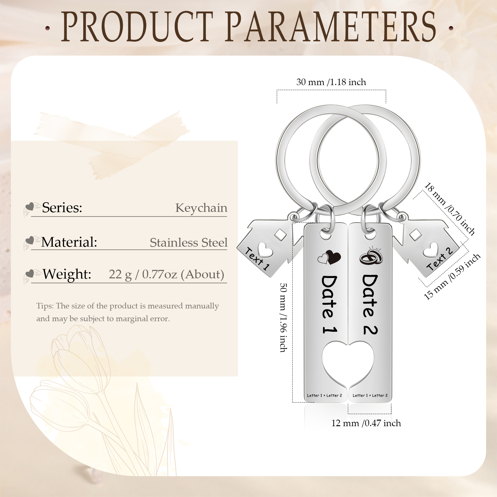 Anelli & Cuore Portachiavi Per Coppia 2 lettere e nomi & data personalizzabili