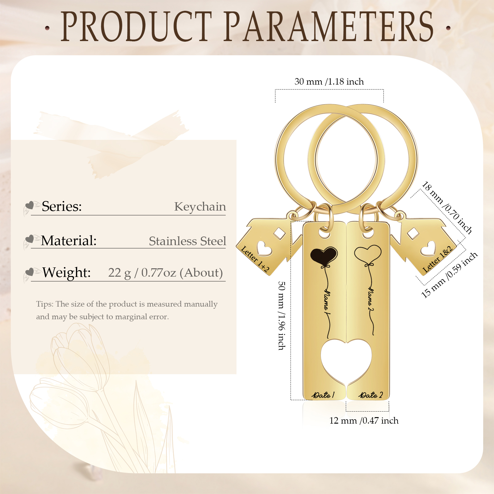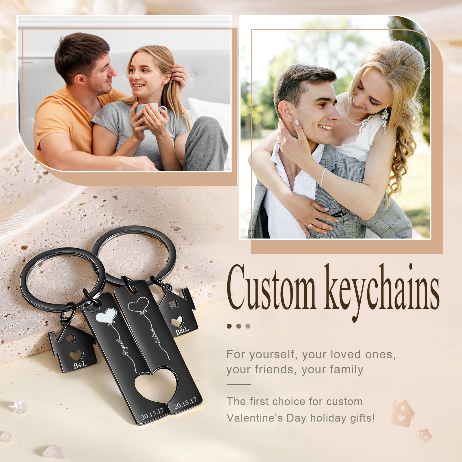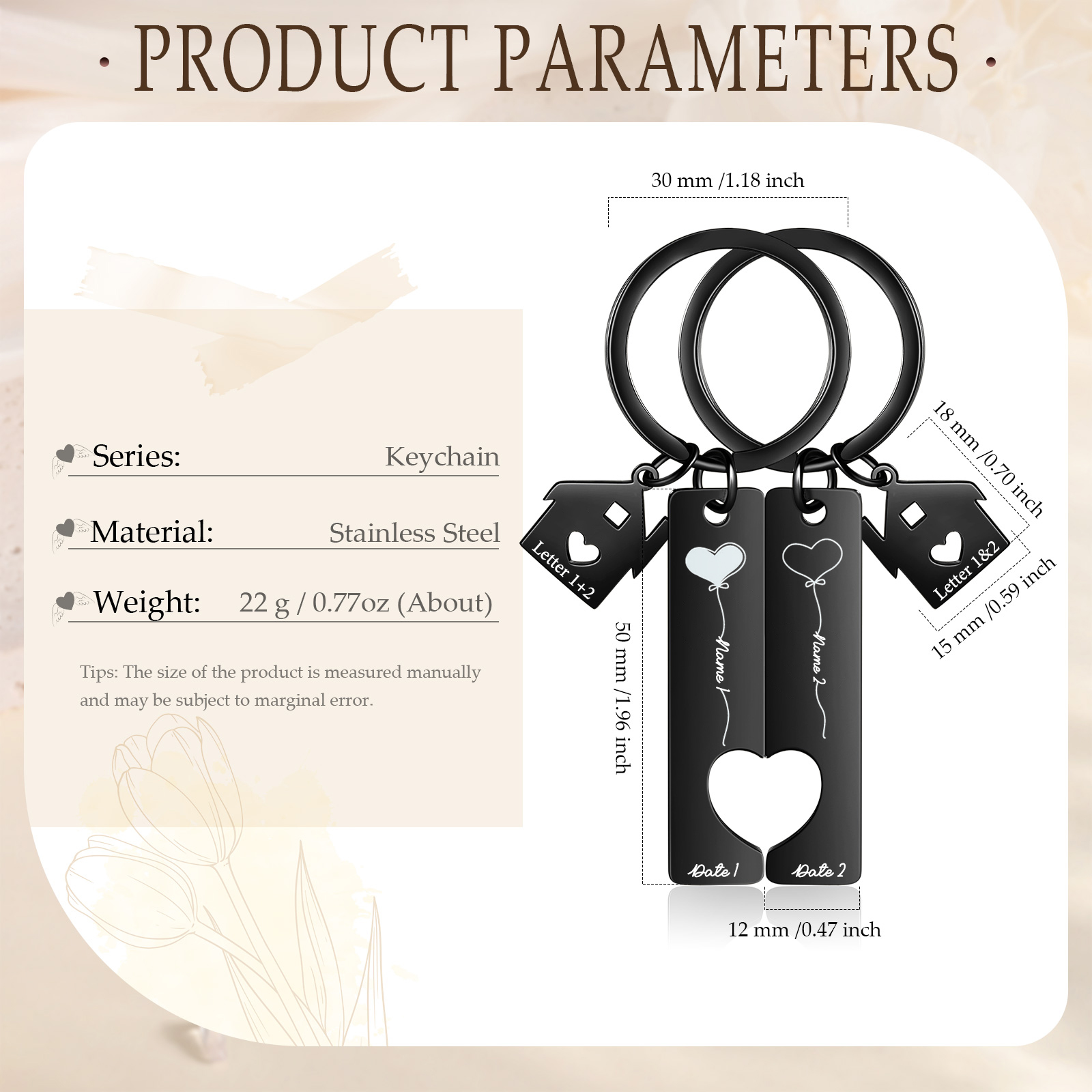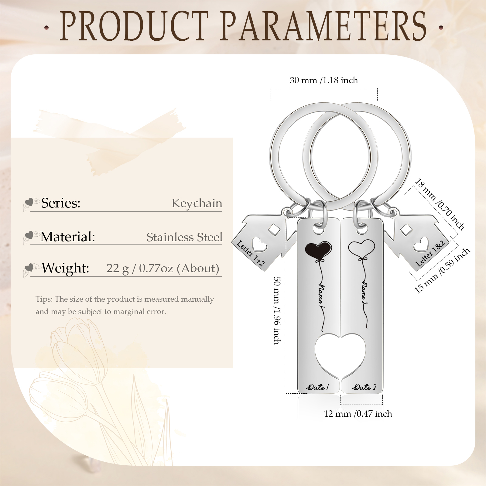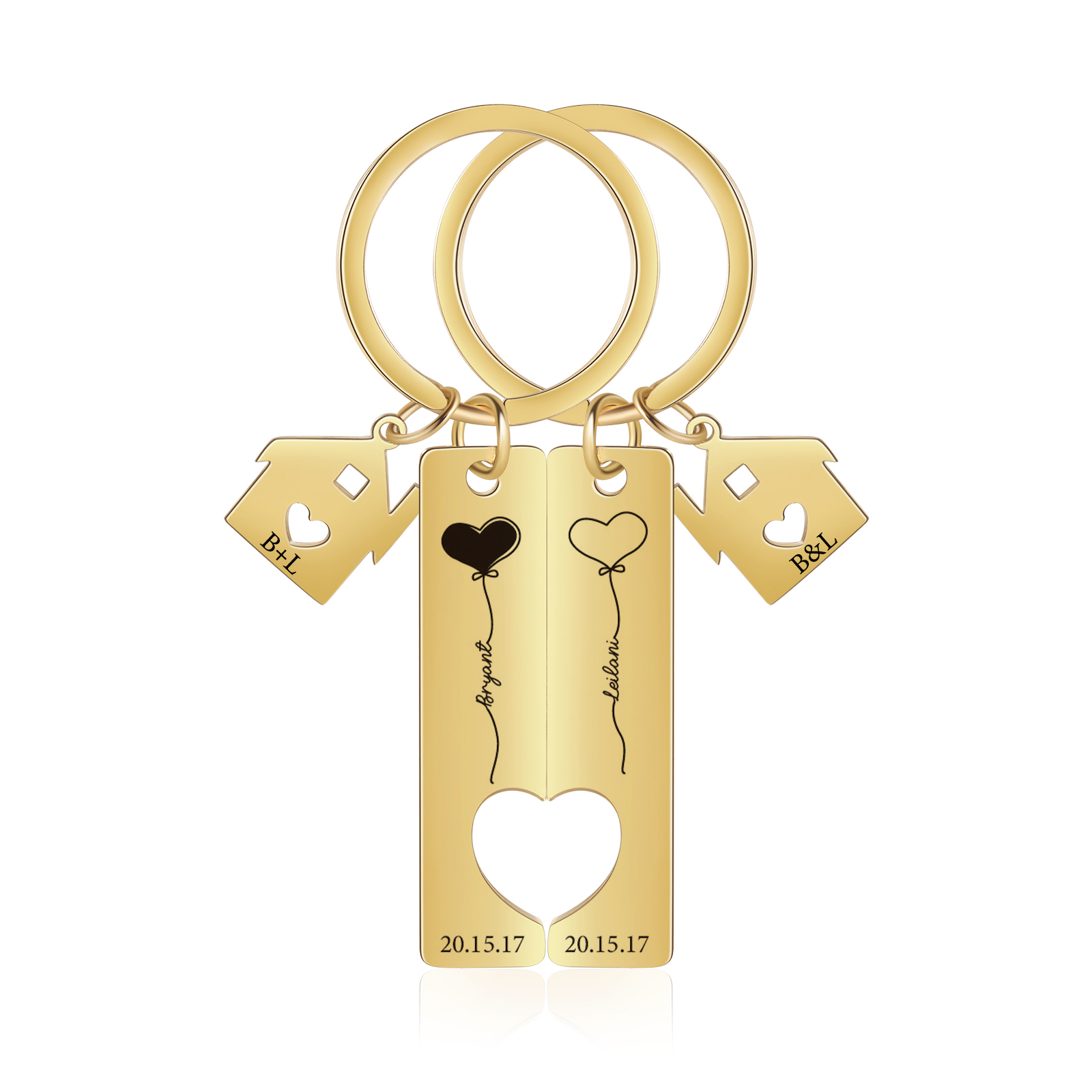 Palloncini del Cuore Portachiavi Per Coppia 2 nomi & data personalizzabili