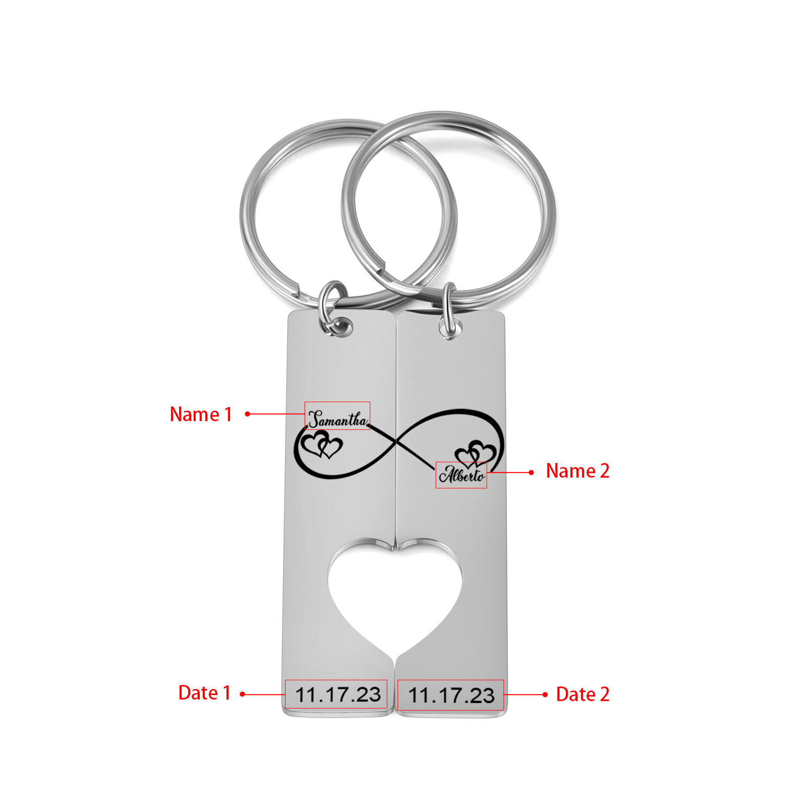 Cuore in portachiavi abbinati 2 nomi e 2 date Personalizzato incisione infinito