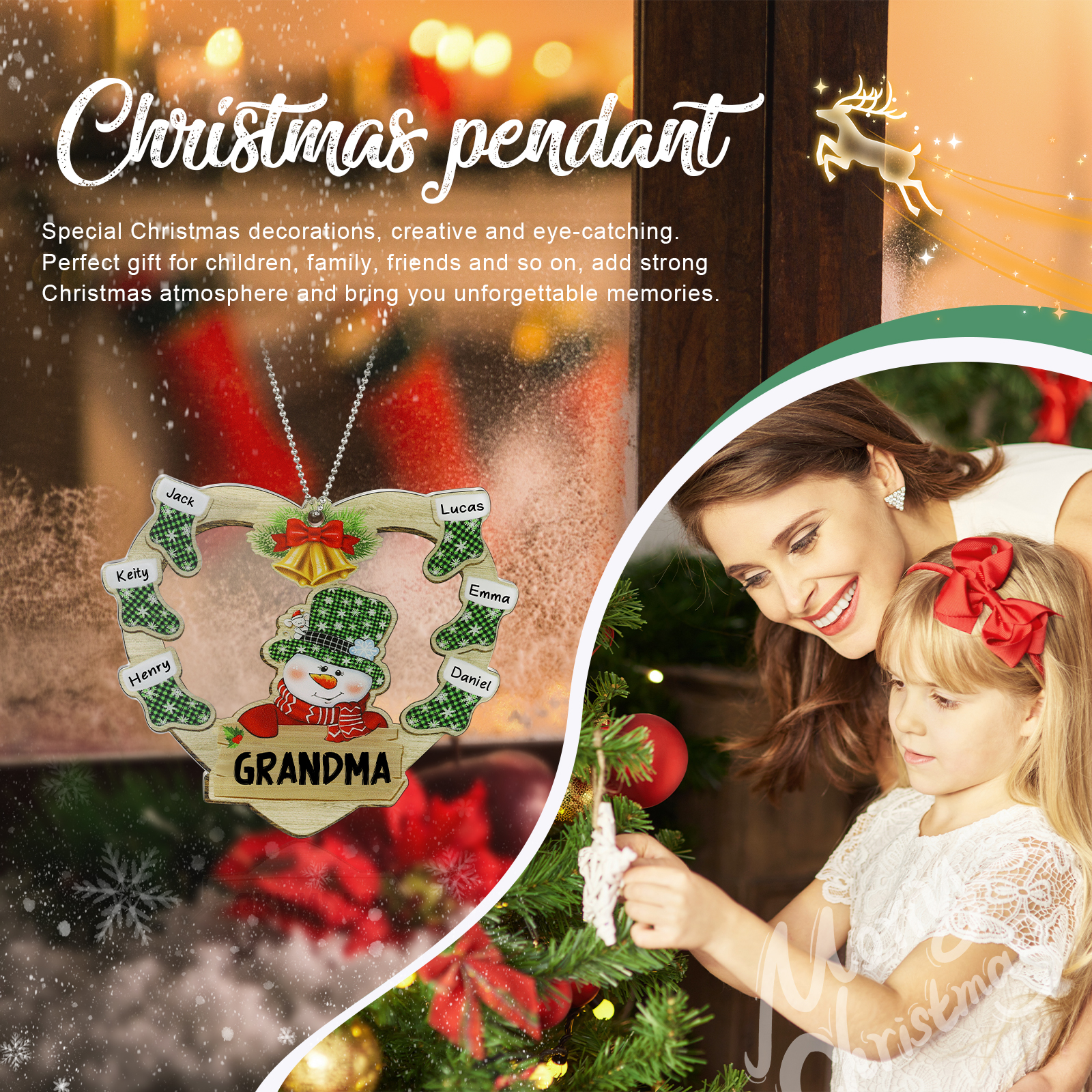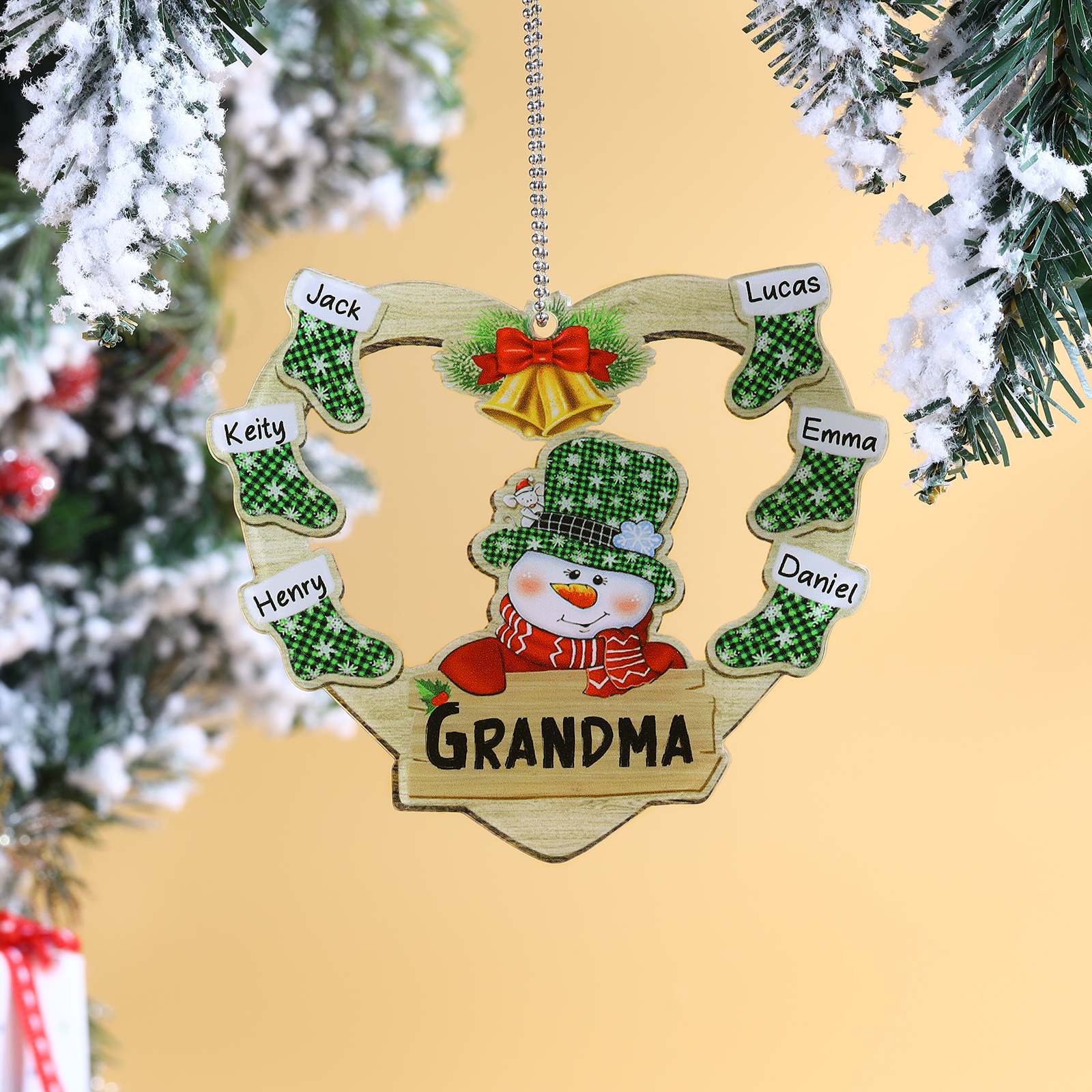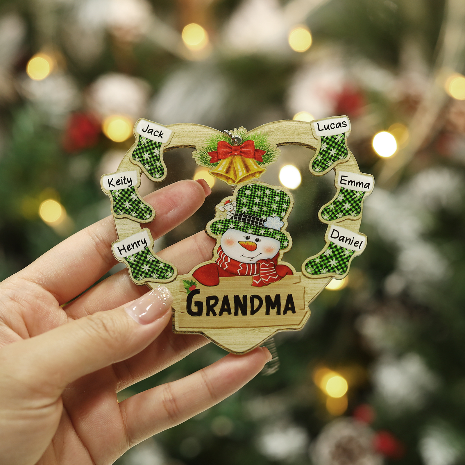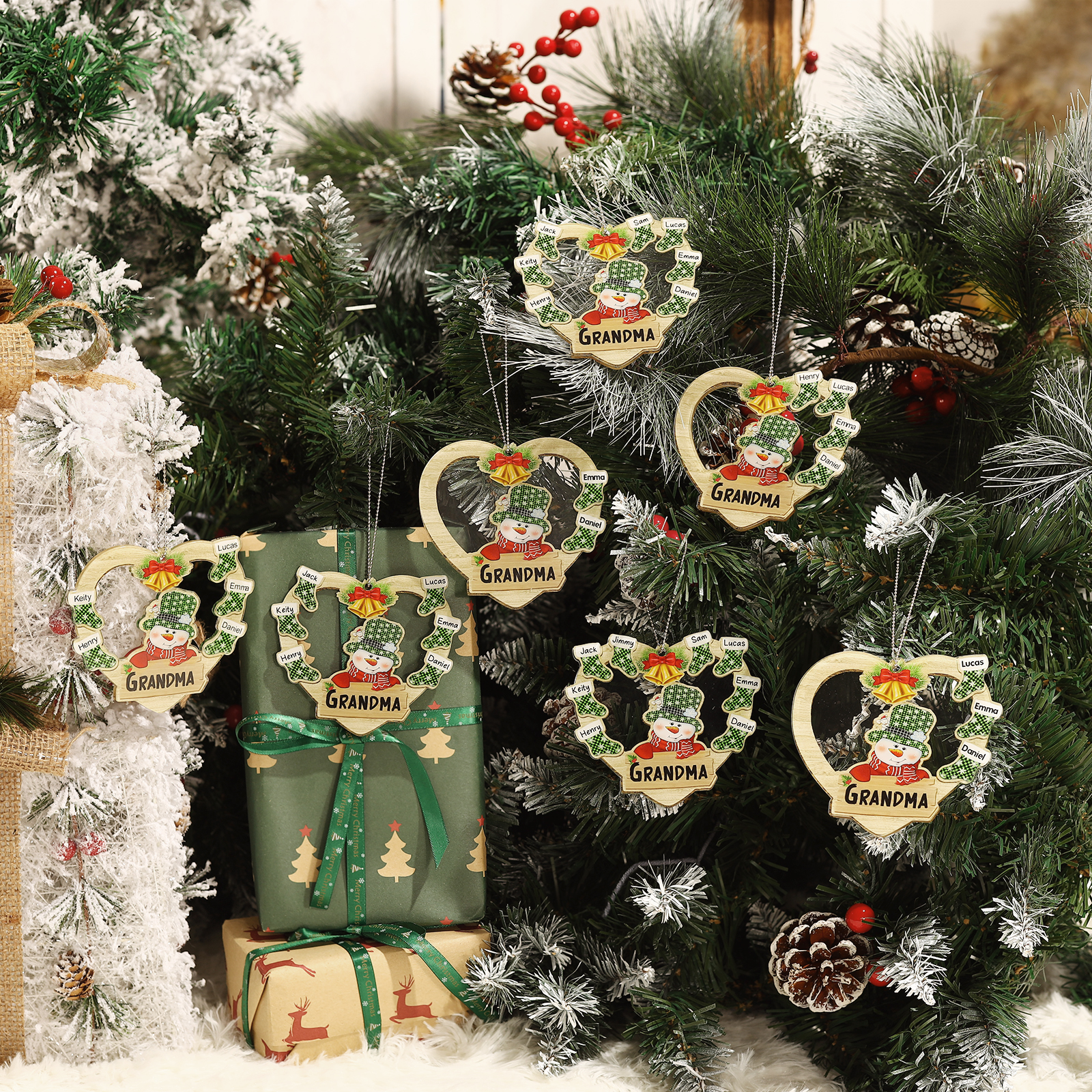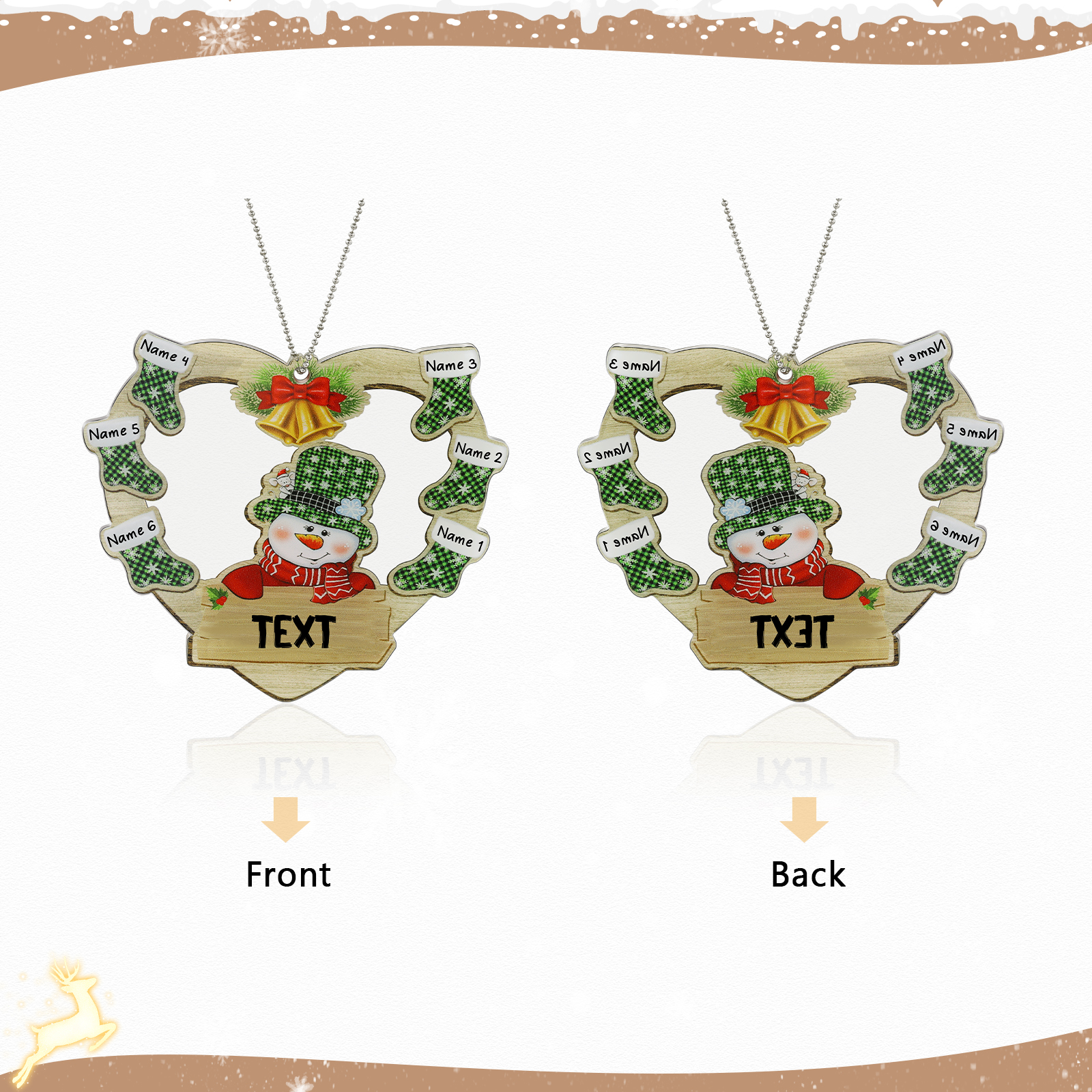 Cuore & Pupazzo di neve-Decorazione di legno natalizia 6 nomi personalizzabili