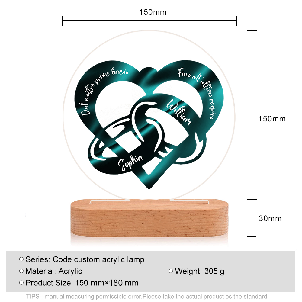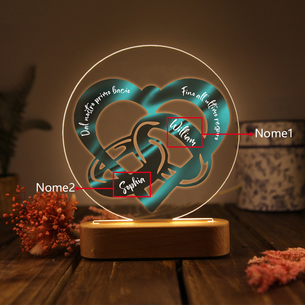 Dal nostro primo bacio Lampada anelli per coppia con foto a cuore personalizzabile